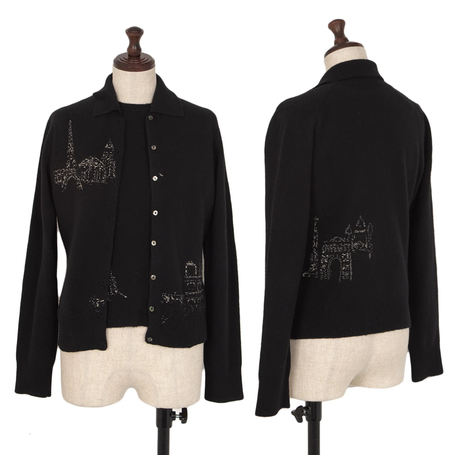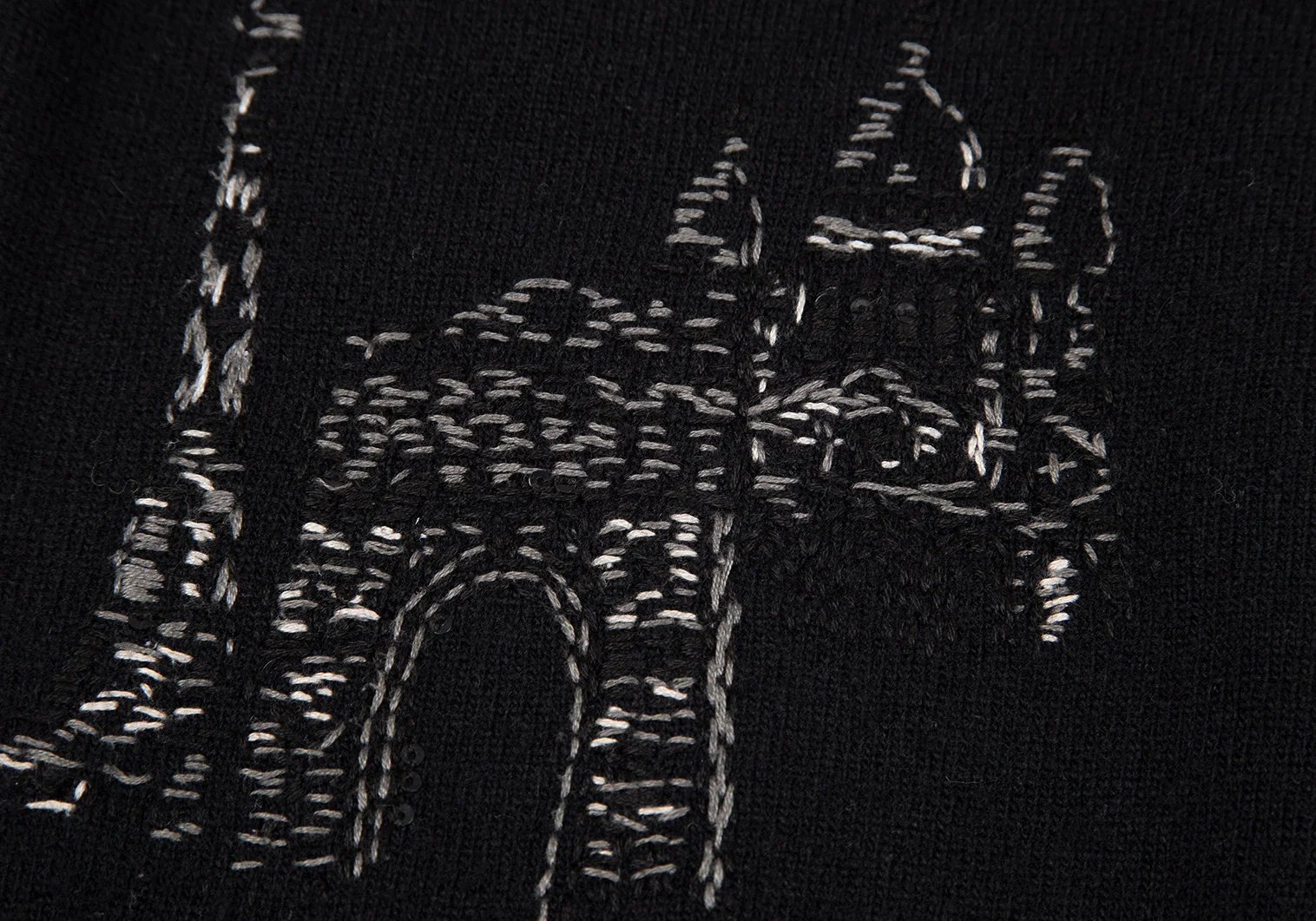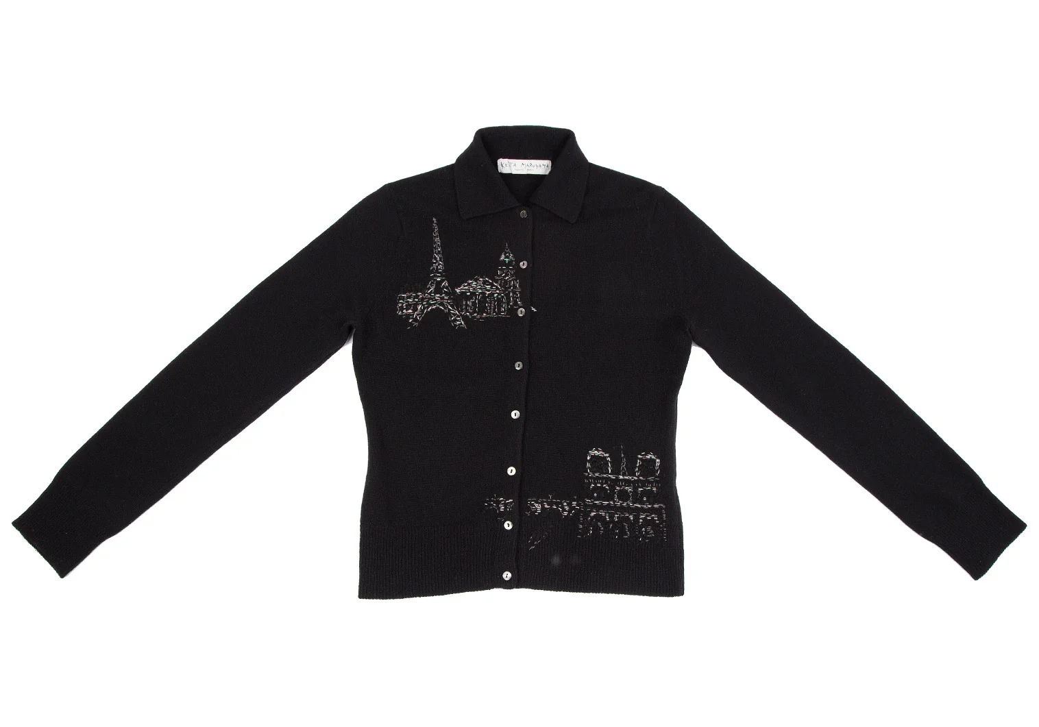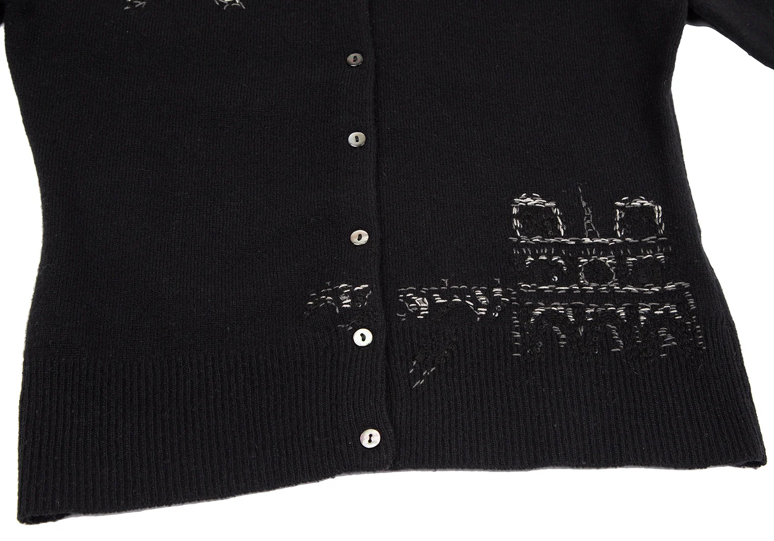 ケイタマルヤマKEITA MARUYAMA エッフェル塔ステッチ刺繍ニットカーディガン 黒1