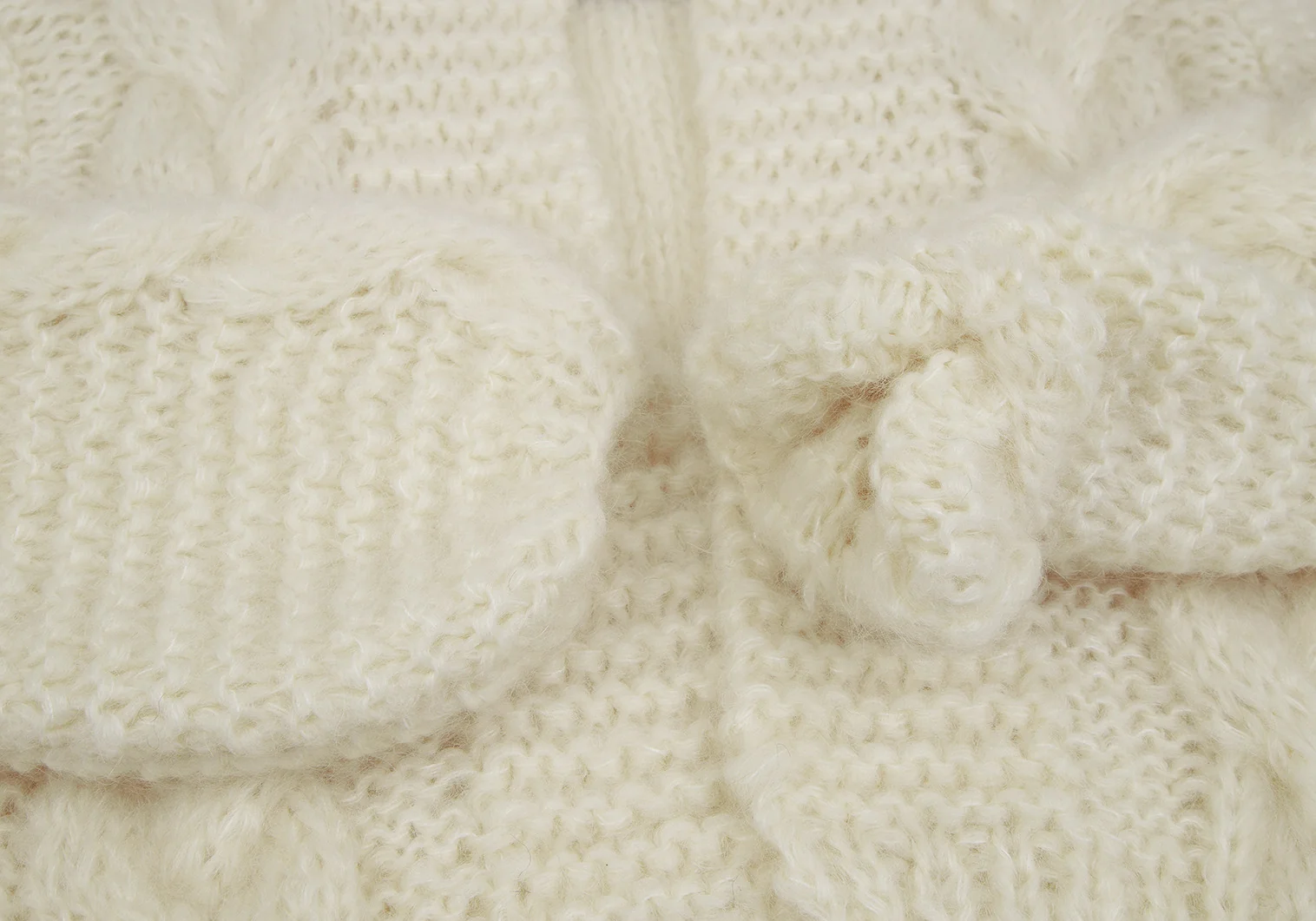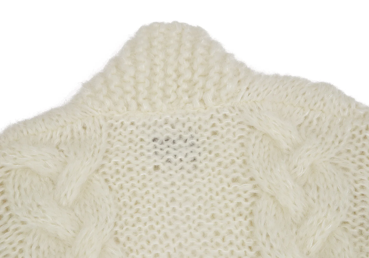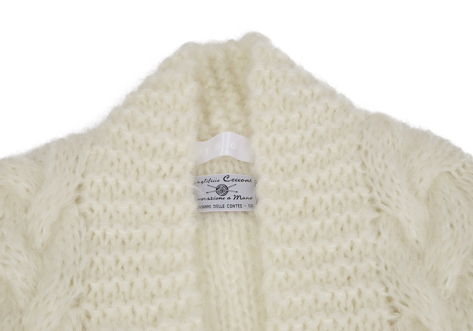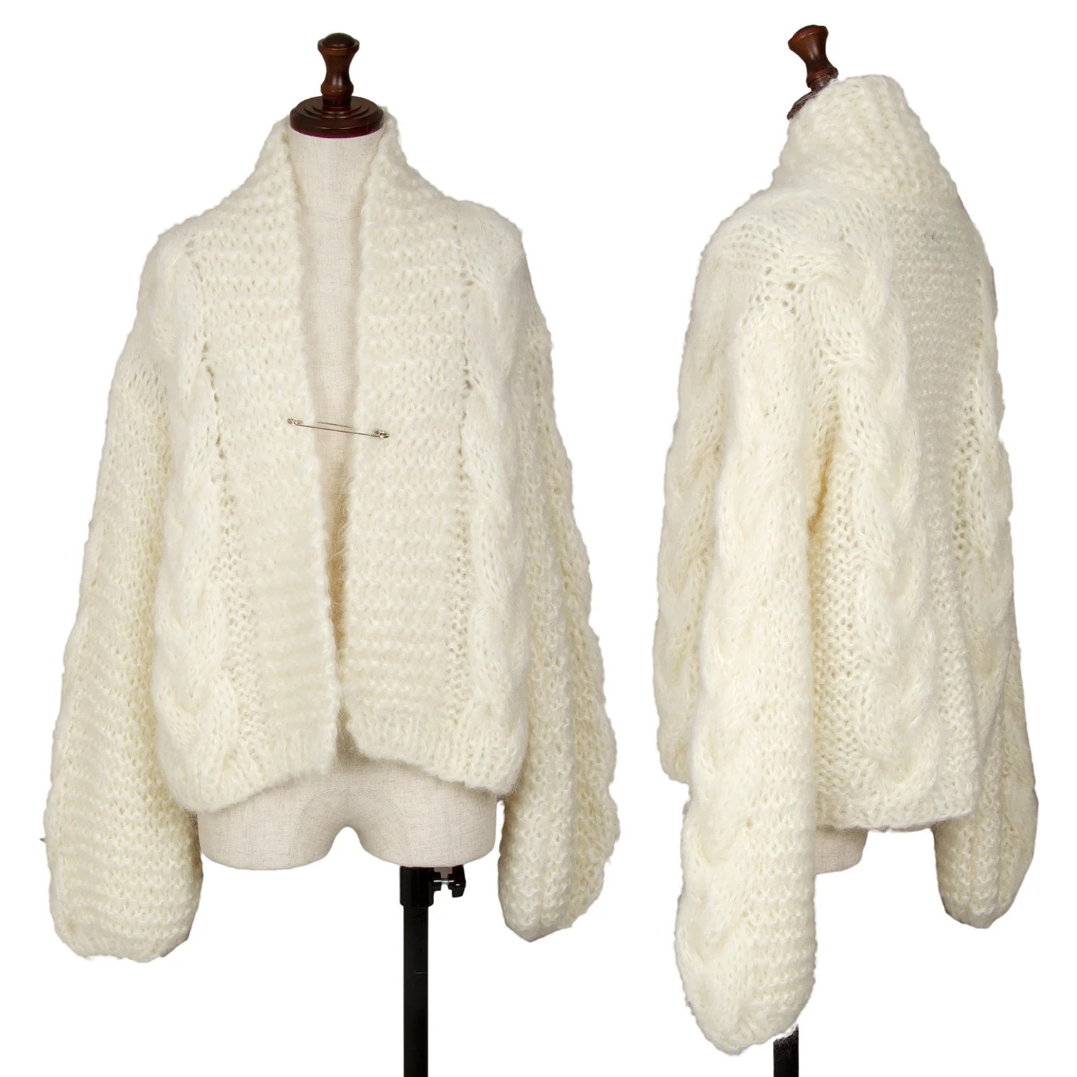 タオtao モヘヤナイロン縄柄手編ニットカーディガン 白F