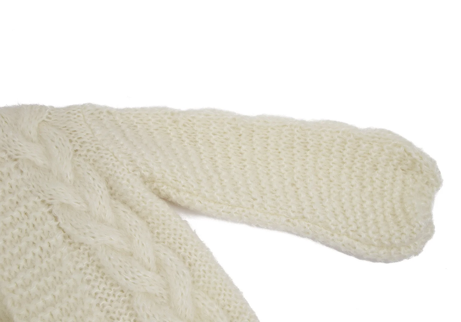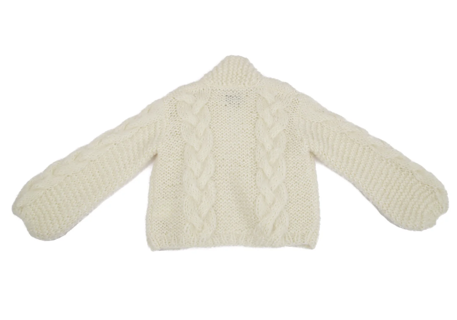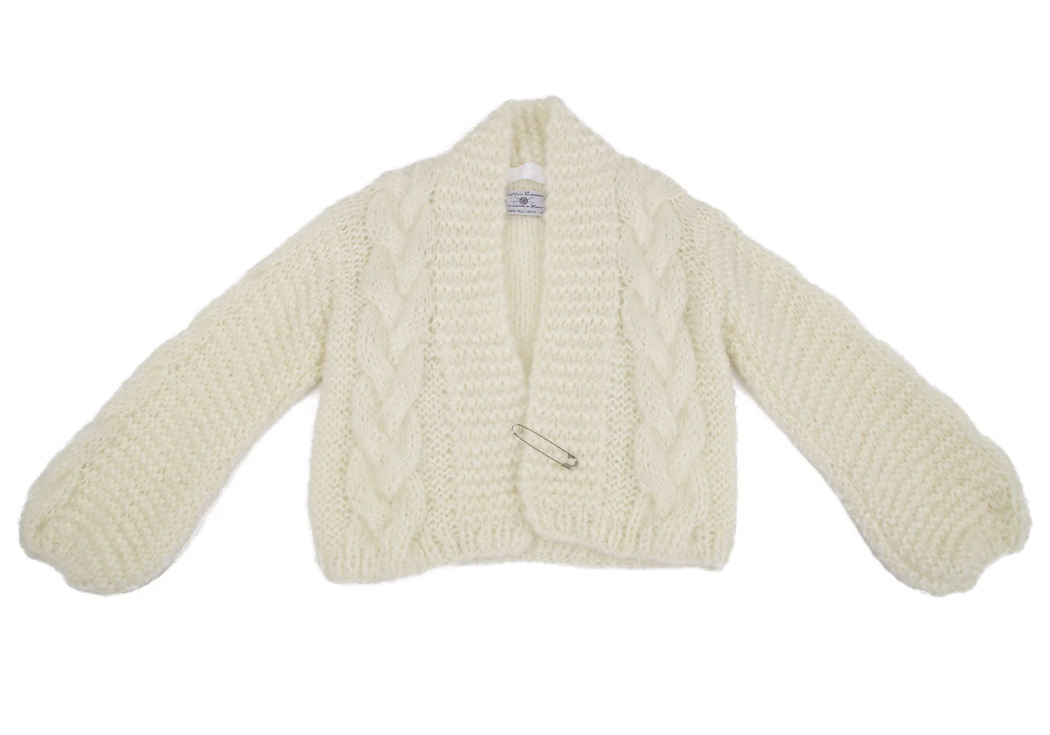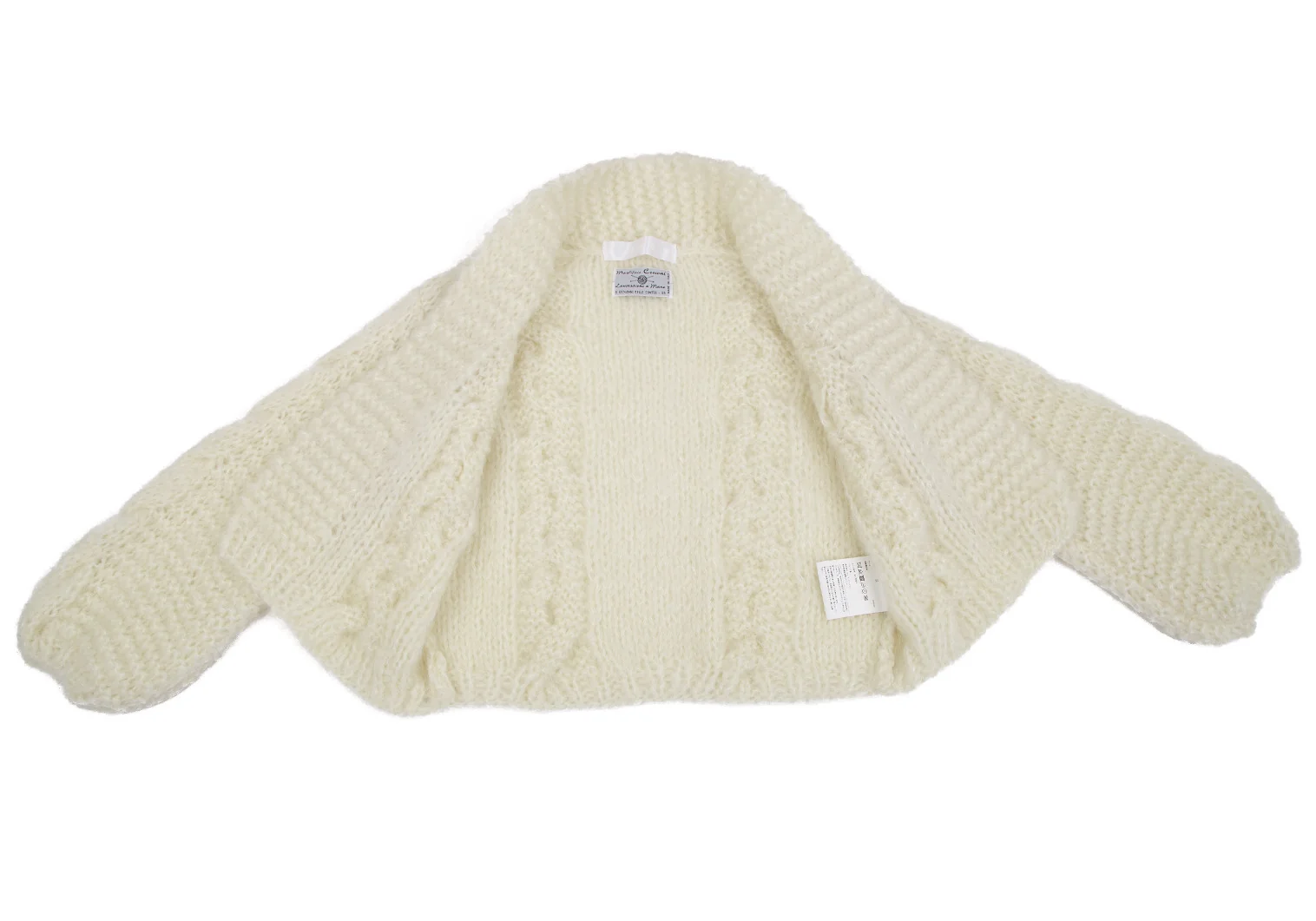 タオtao モヘヤナイロン縄柄手編ニットカーディガン 白F
