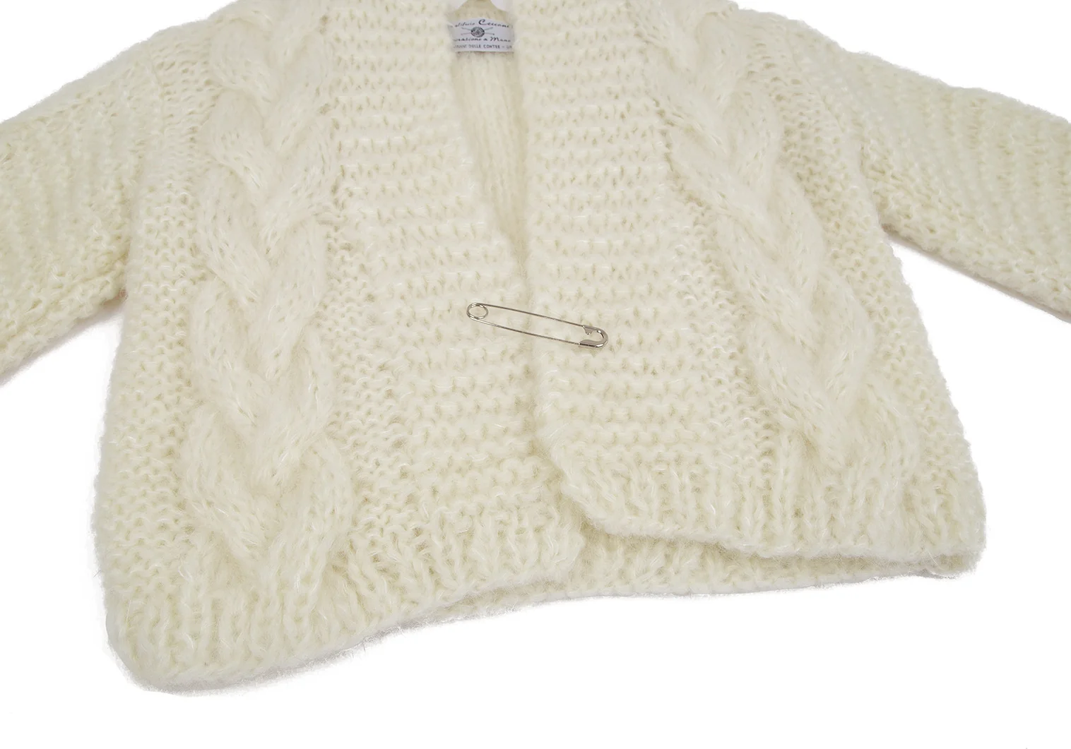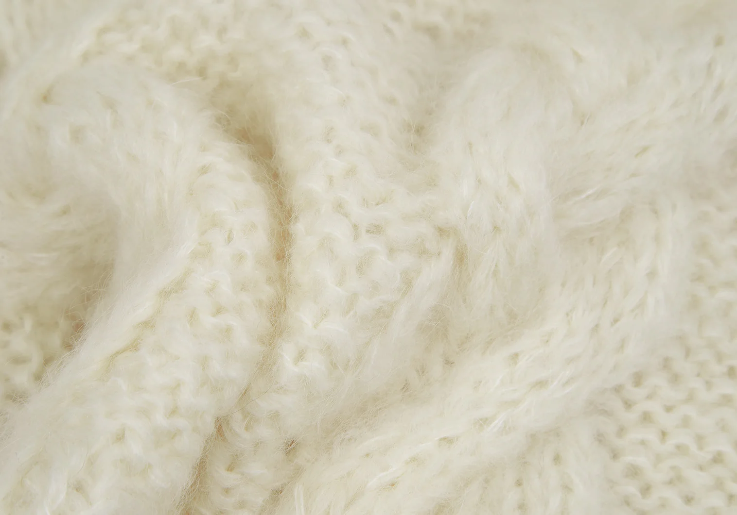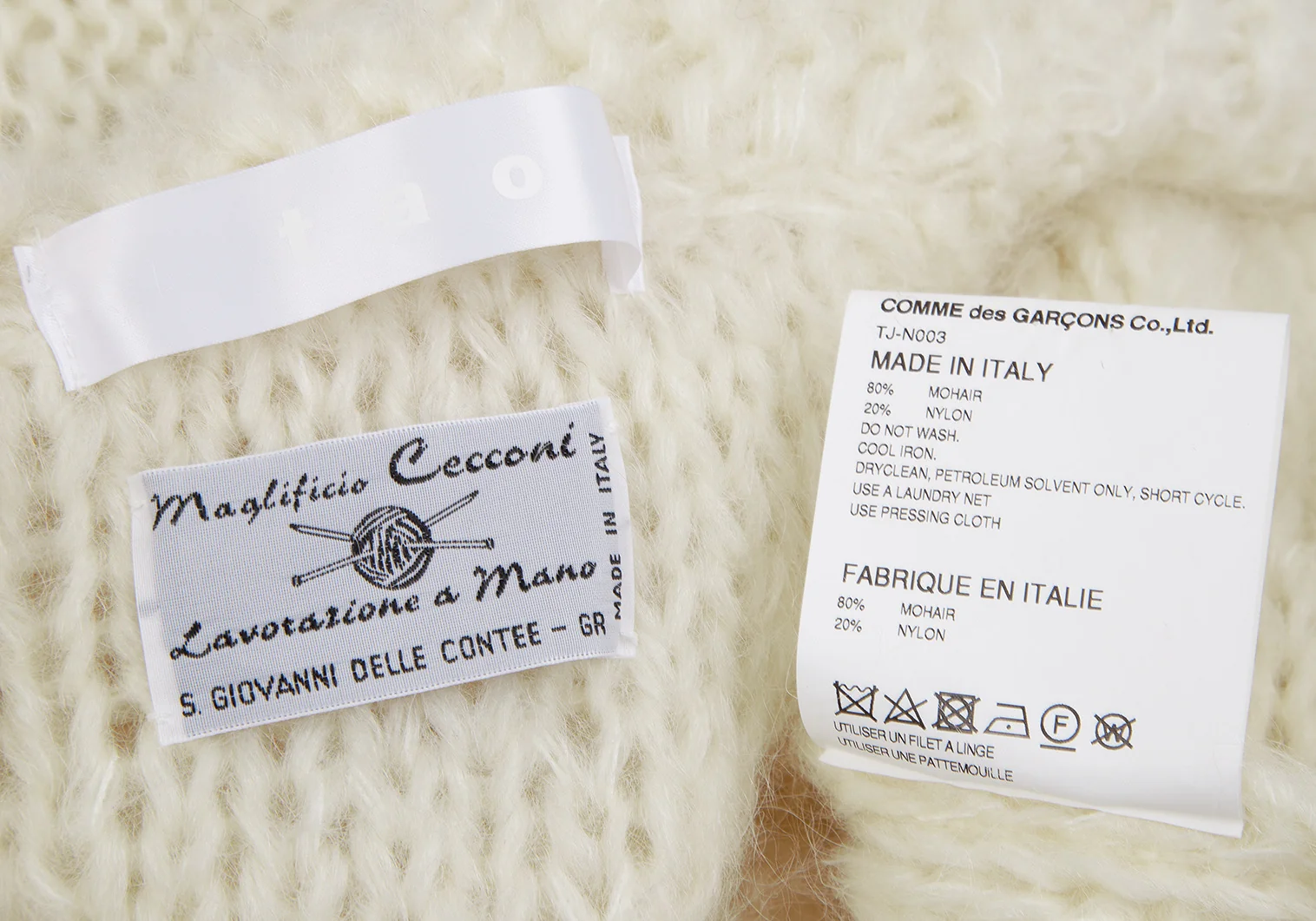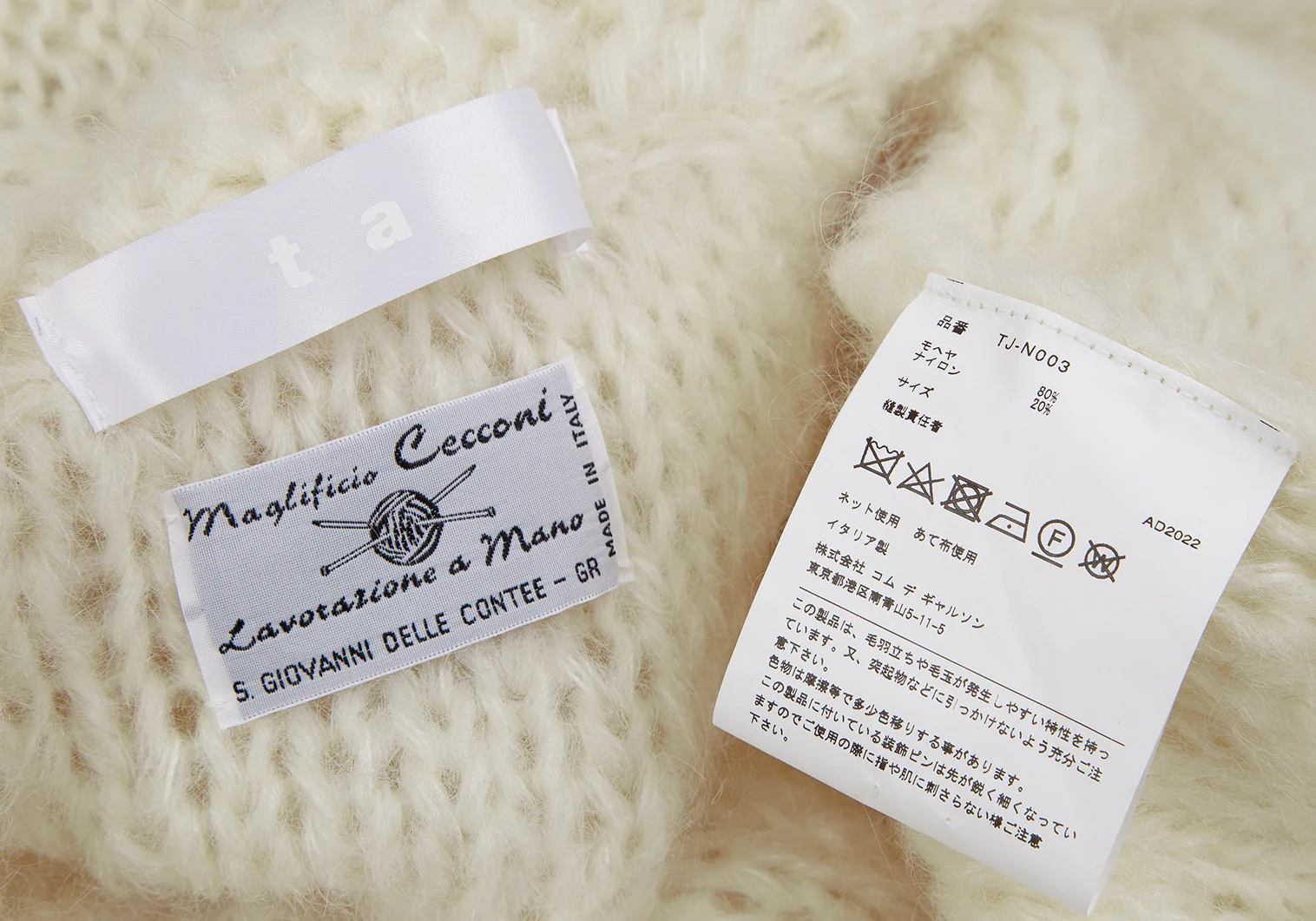 タオtao モヘヤナイロン縄柄手編ニットカーディガン 白F