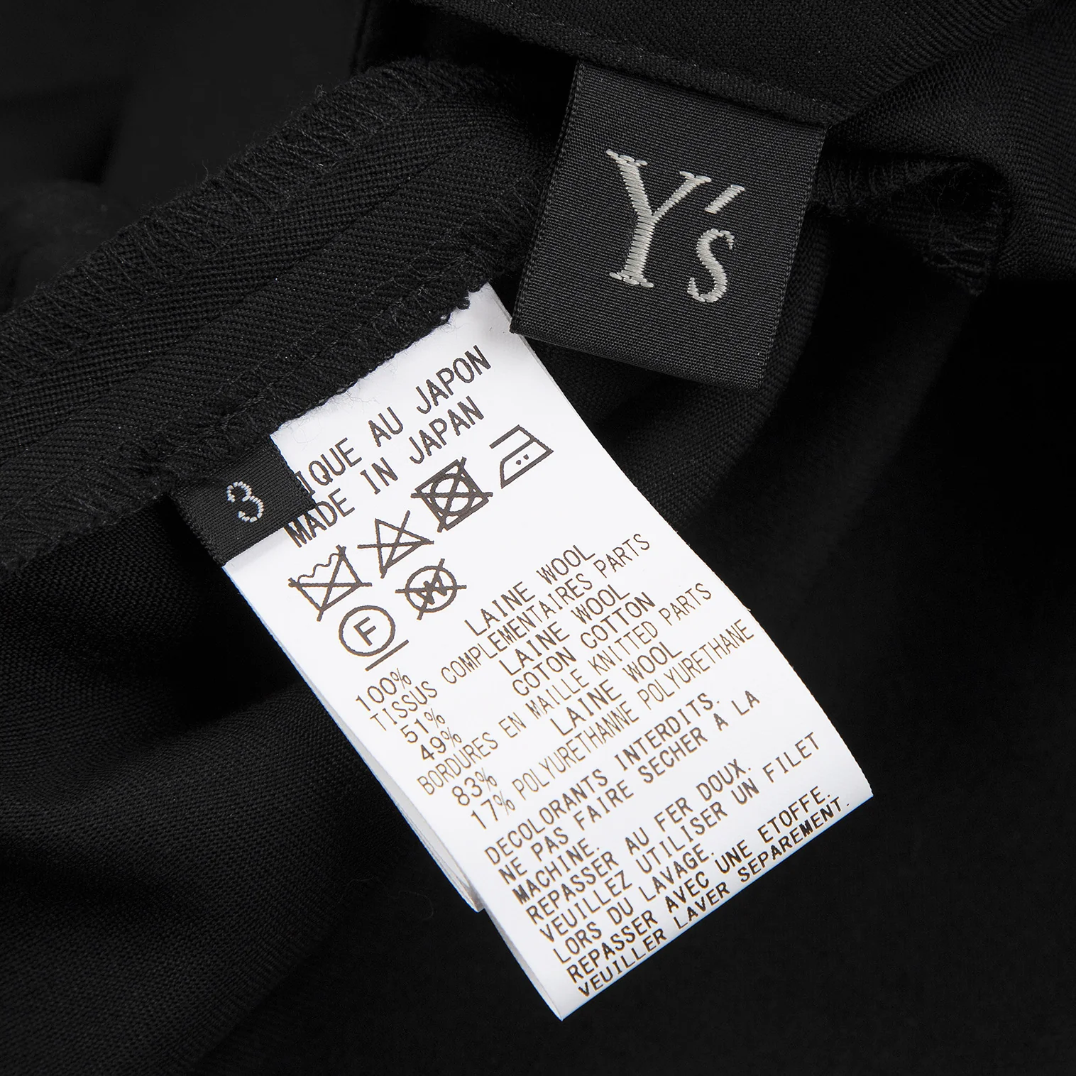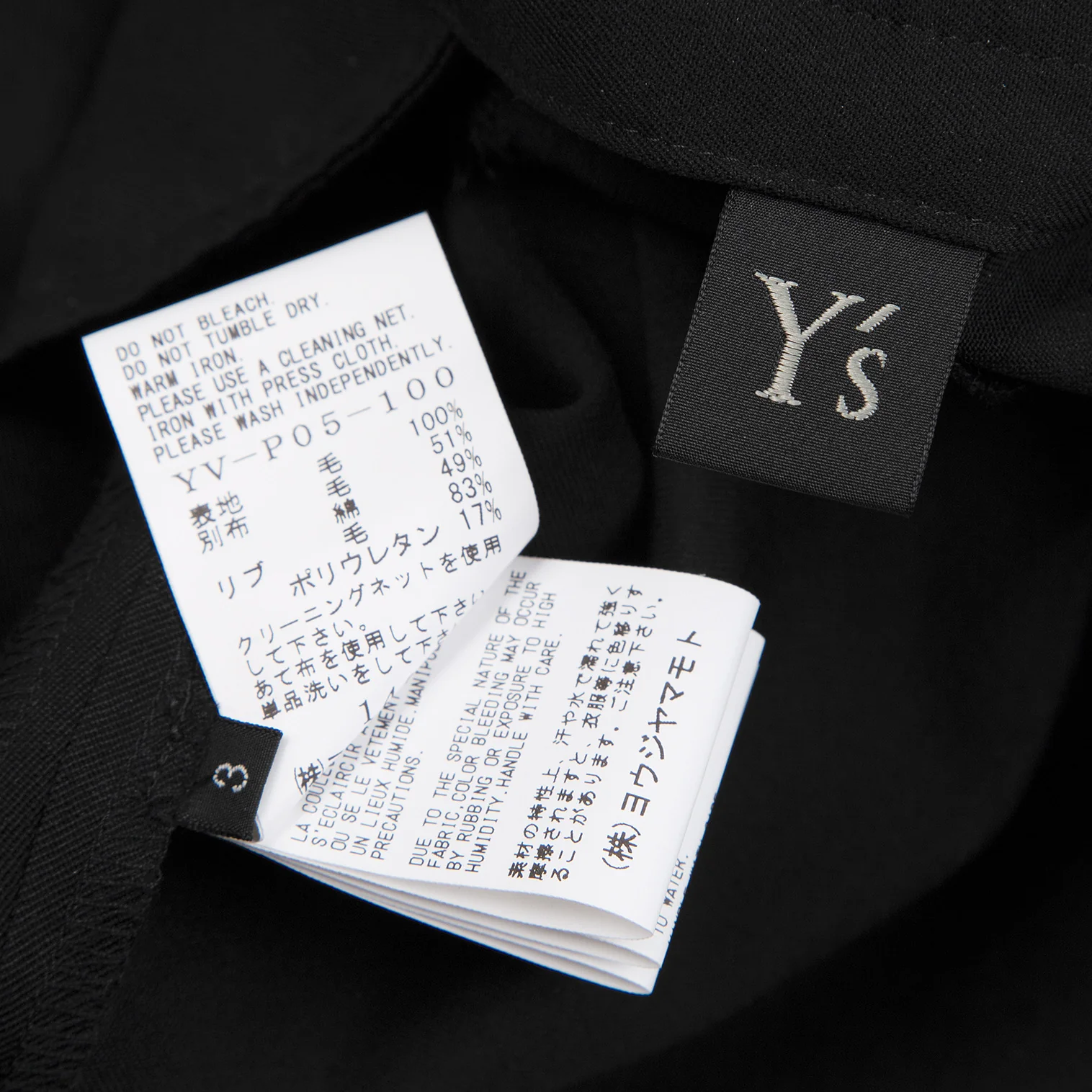ワイズY's ポケットタブデザインリブ切替ウールギャバパンツ 黒3