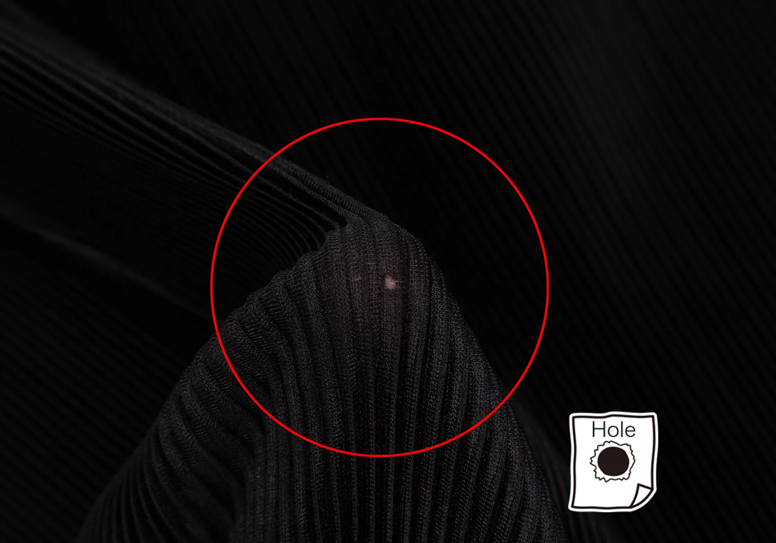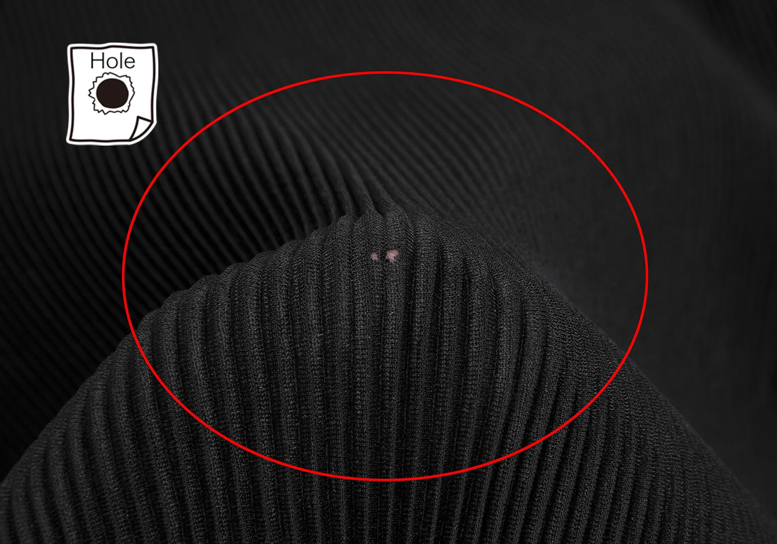 若干の透け感があります。前身頃裾・後身頃裾に穴あきがあります(写真参照)。その他目立ったシミ、汚れ、ほつれ等ない状態です。クリーニング済み