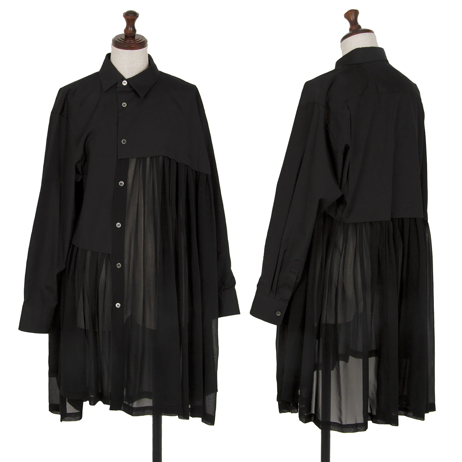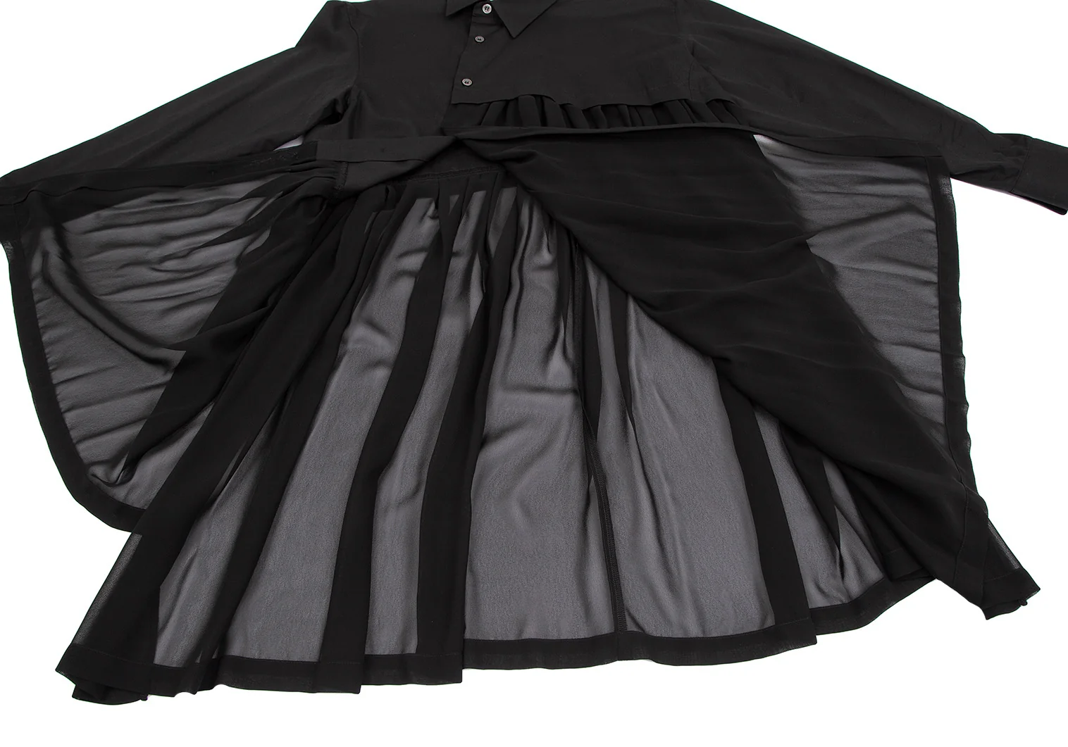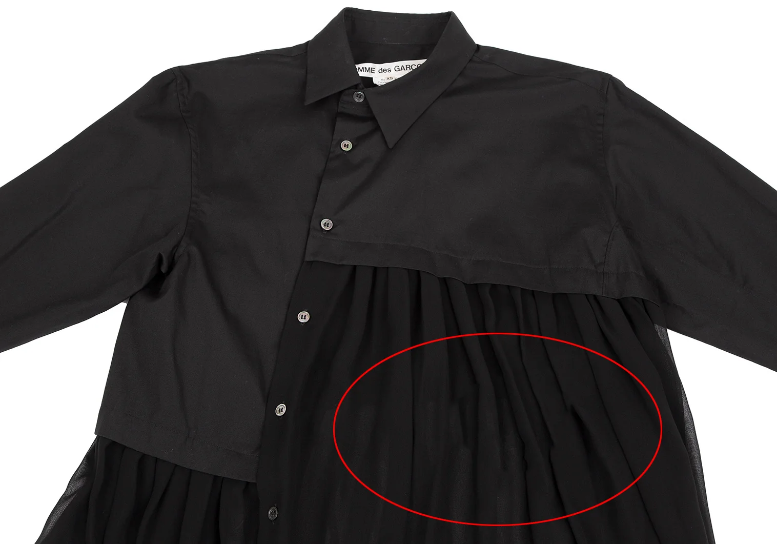 コムデギャルソンCOMME des GARCONS シフォン切替アシンメトリーコットンシャツ 黒XS