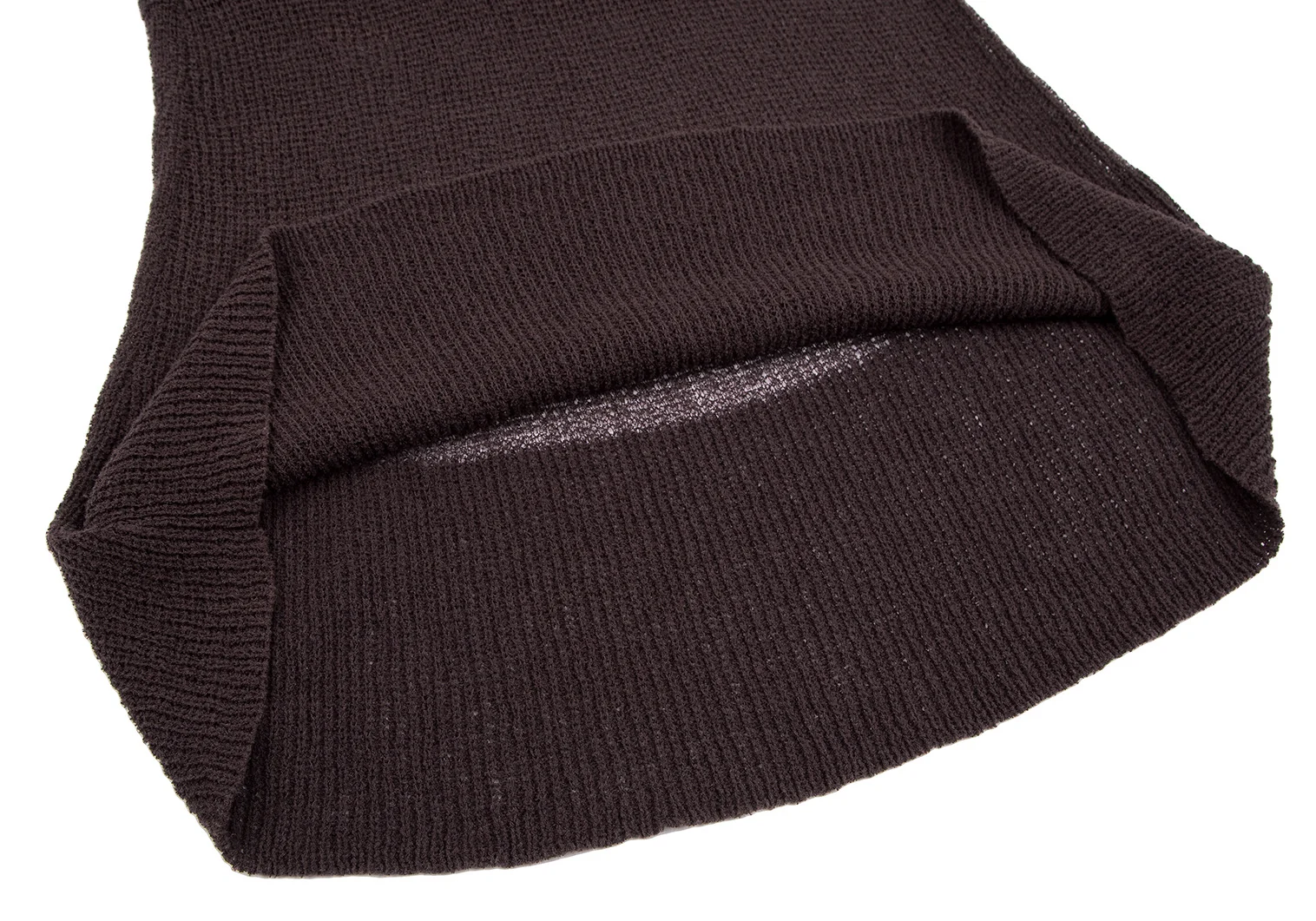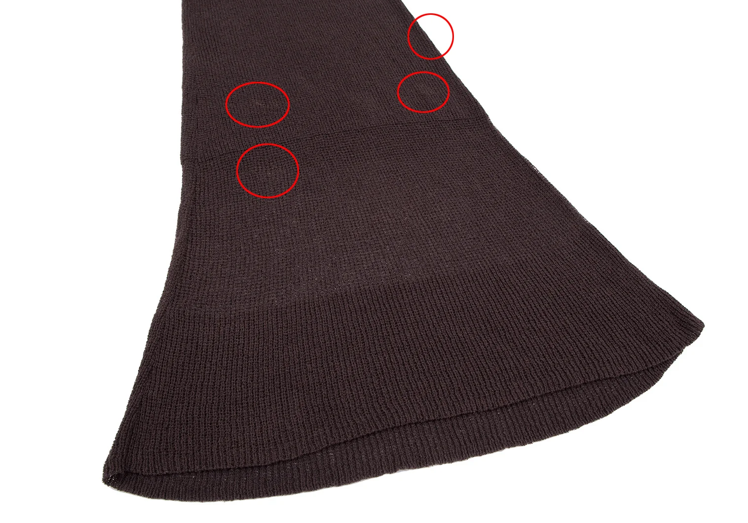 透け感があります。着用感・前身頃に変色、左サイドに引っ掛けがあります。(写真参照)その他目立ったシミ、汚れ、ほつれ等はありません。クリーニング済み