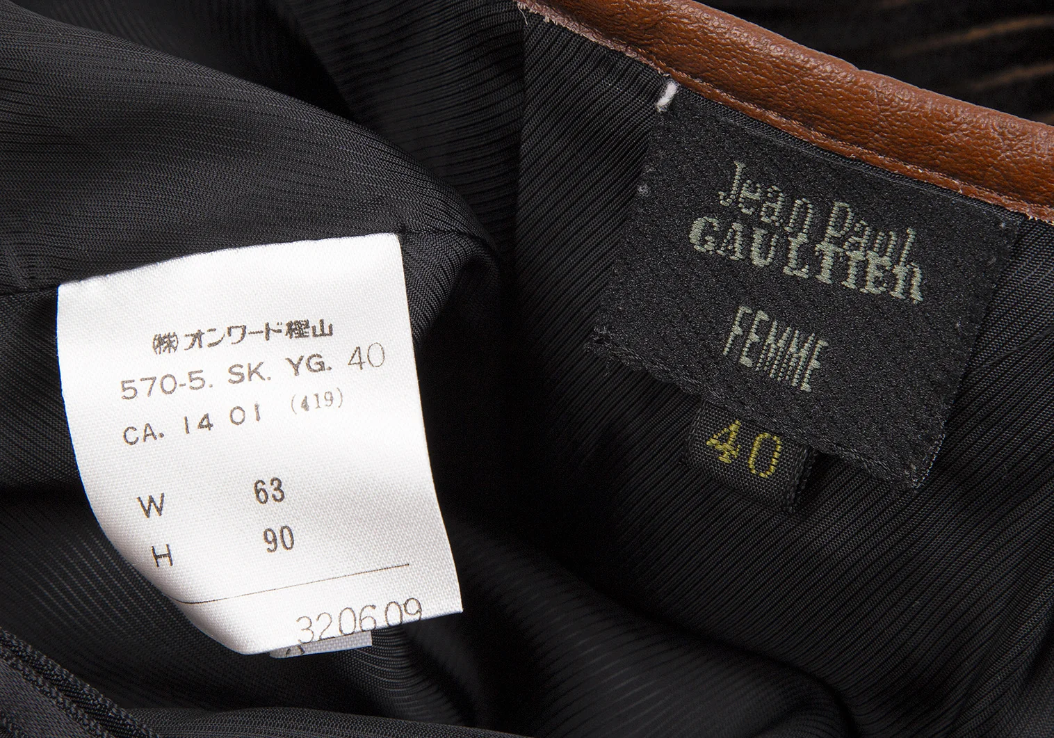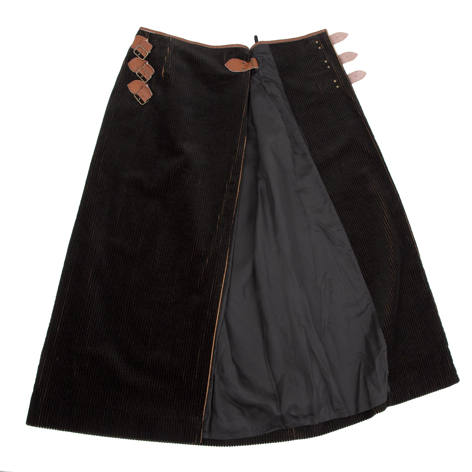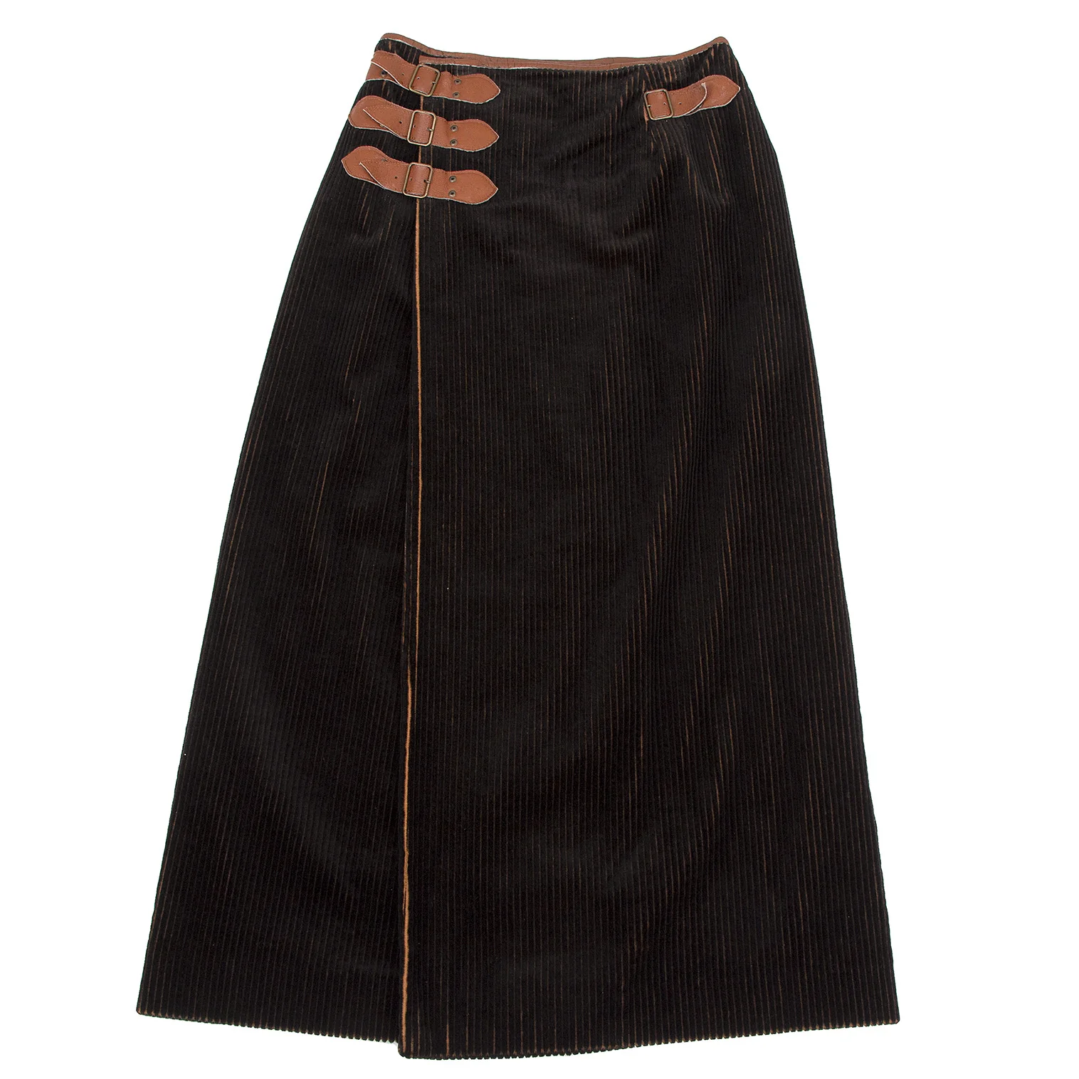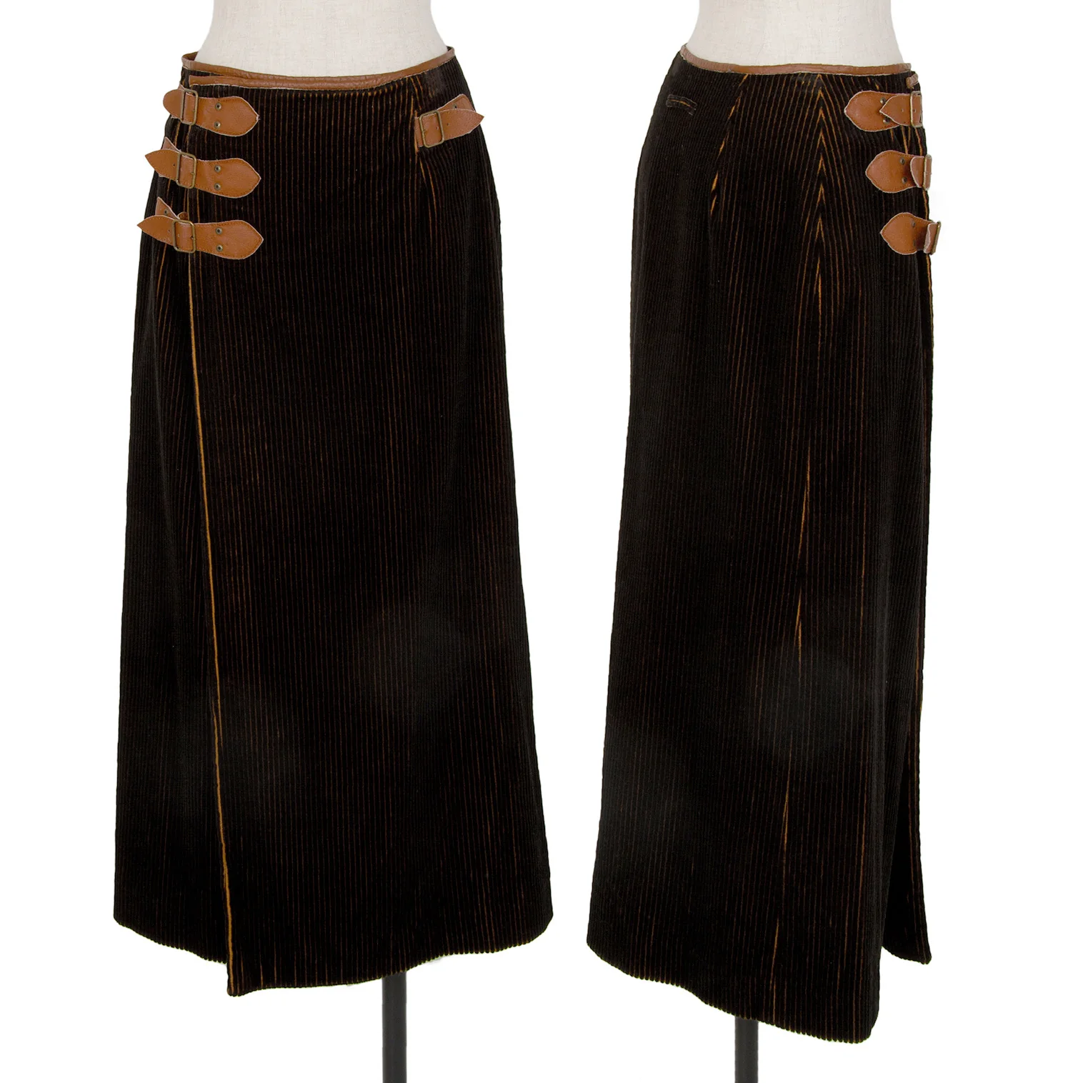 ジャンポールゴルチエ ファムJean Paul GAULTIER FEMME バイカラーコーデュロイラップスカート 黒茶40
