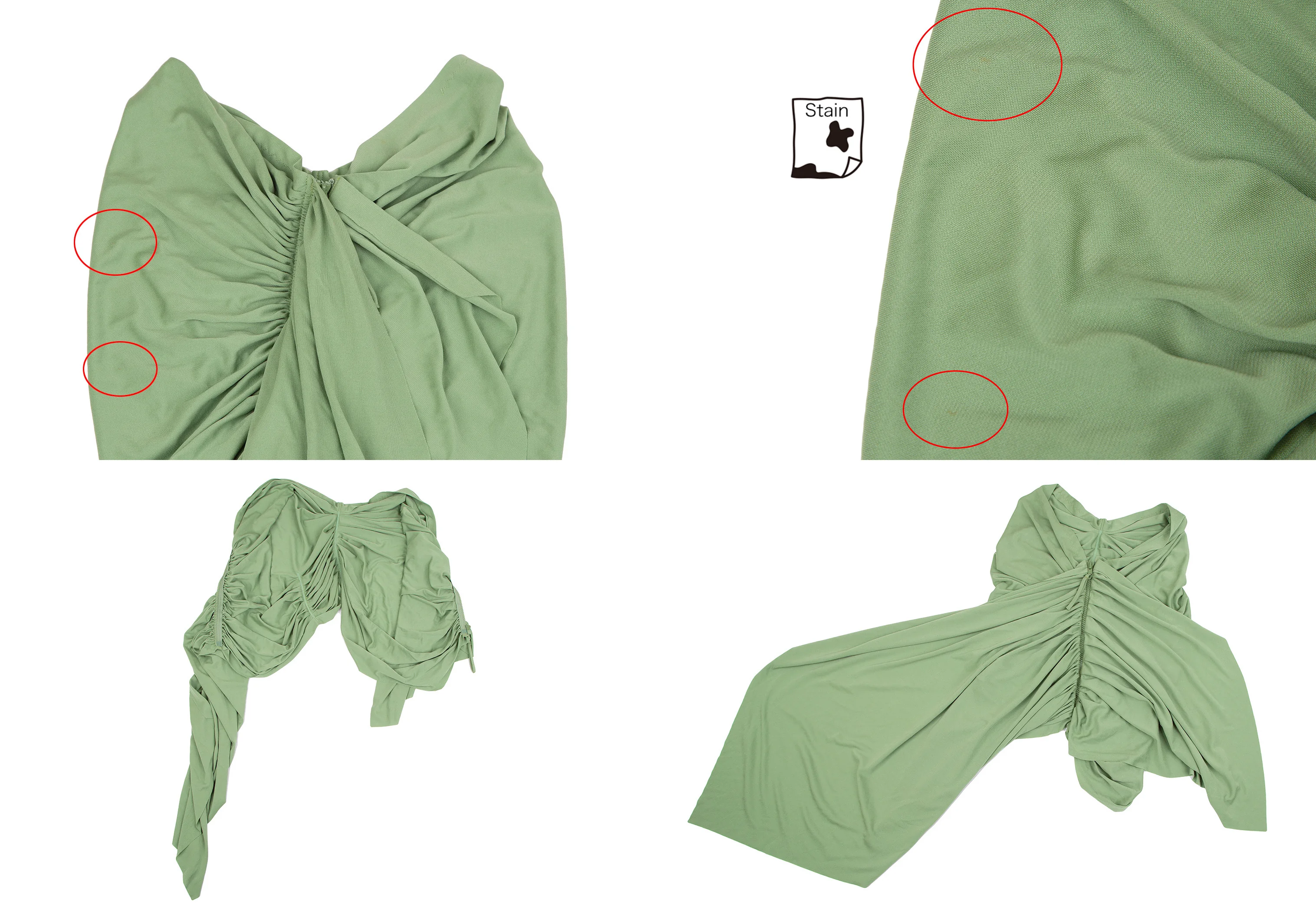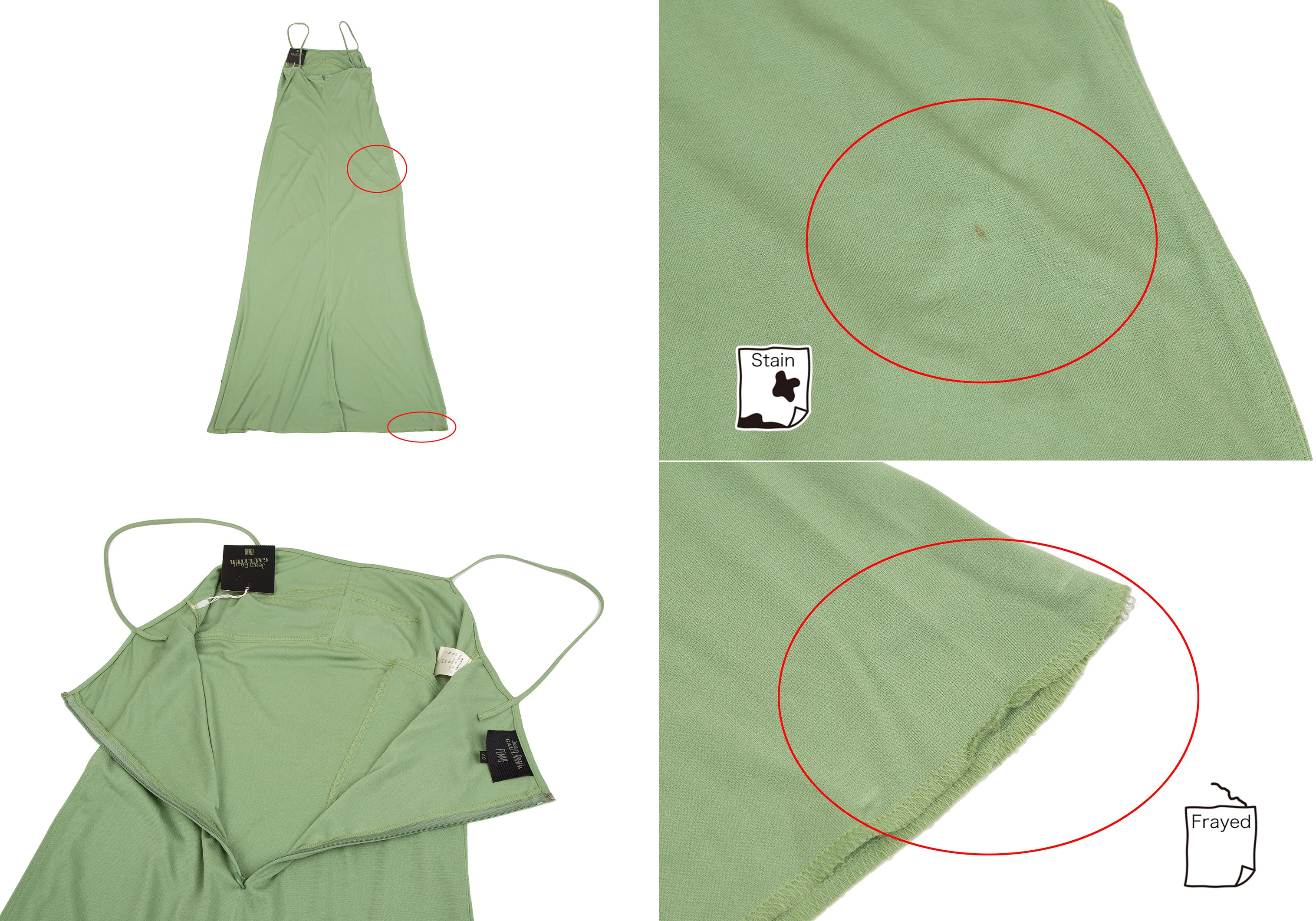 ワンピース・コルセットのセットのお品になります。ワンピース:前身頃・前裾に薄シミ、後身頃にシミ、後ろ裾ロック縫い部分にほつれがあります。コルセット:前身頃・後ろ身頃・後ろ裾に薄シミがあります(写真参照)。その他目立った汚れ、ほつれ等ない状態です。クリーニング済み