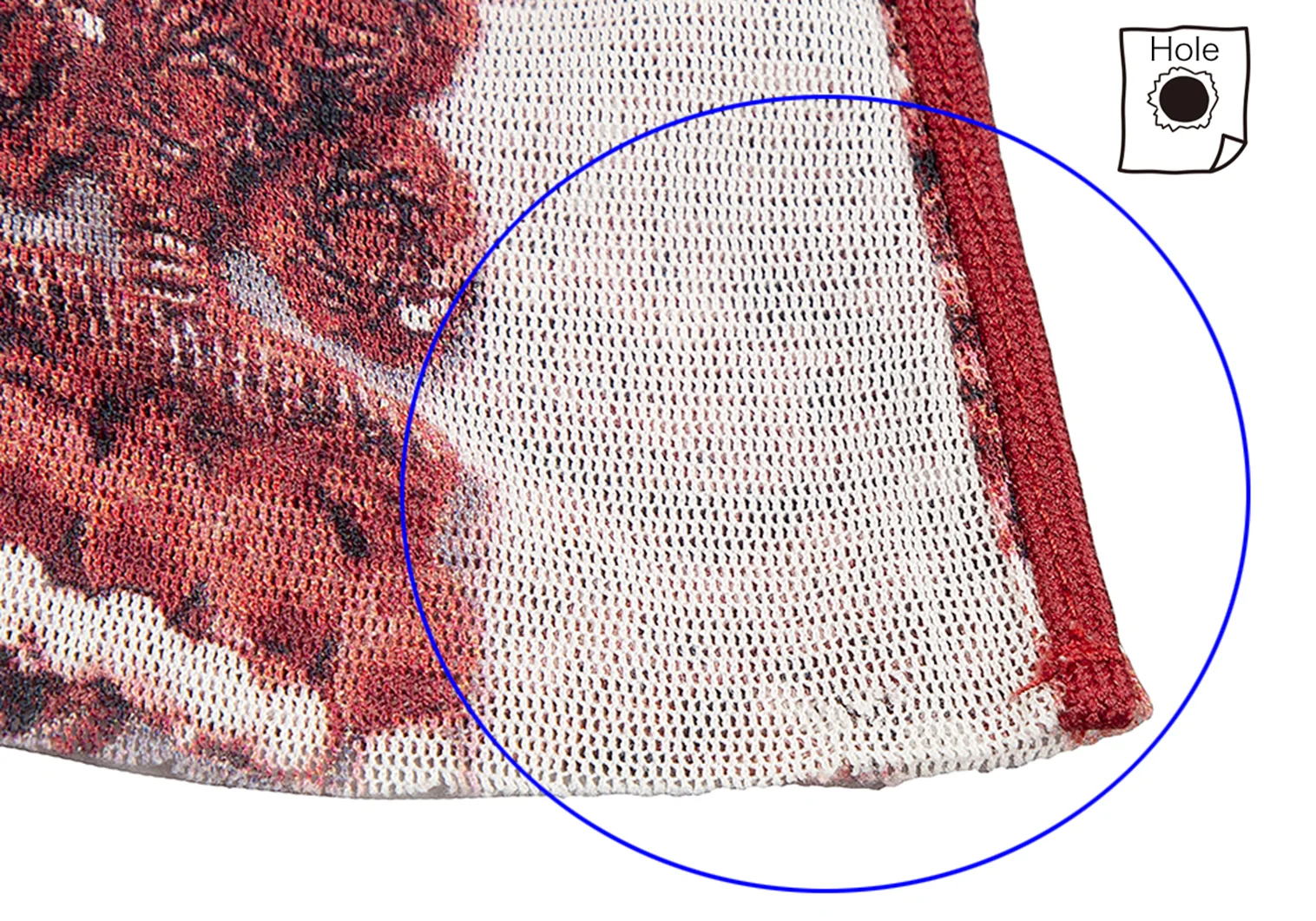 透け感があります。肩裏ゴム劣化、後ろ右裾先に穴、後ろ左裾先に擦スレがあります(写真参照)その他目立ったシミ、汚れ、ほつれはありません。クリーニング済み