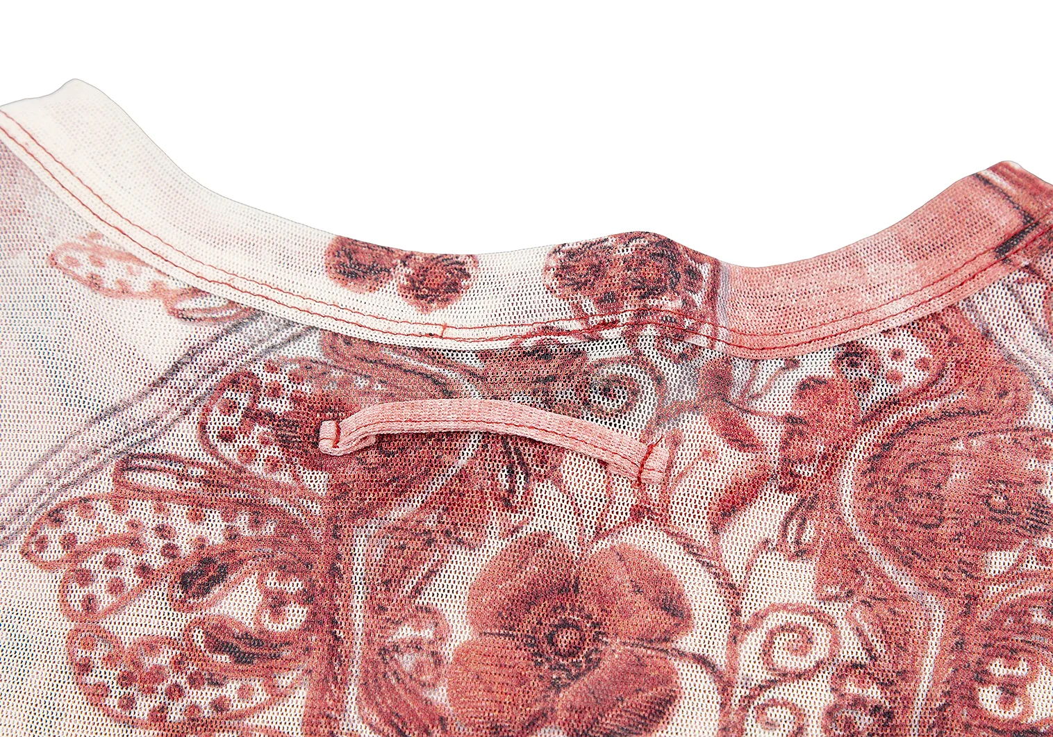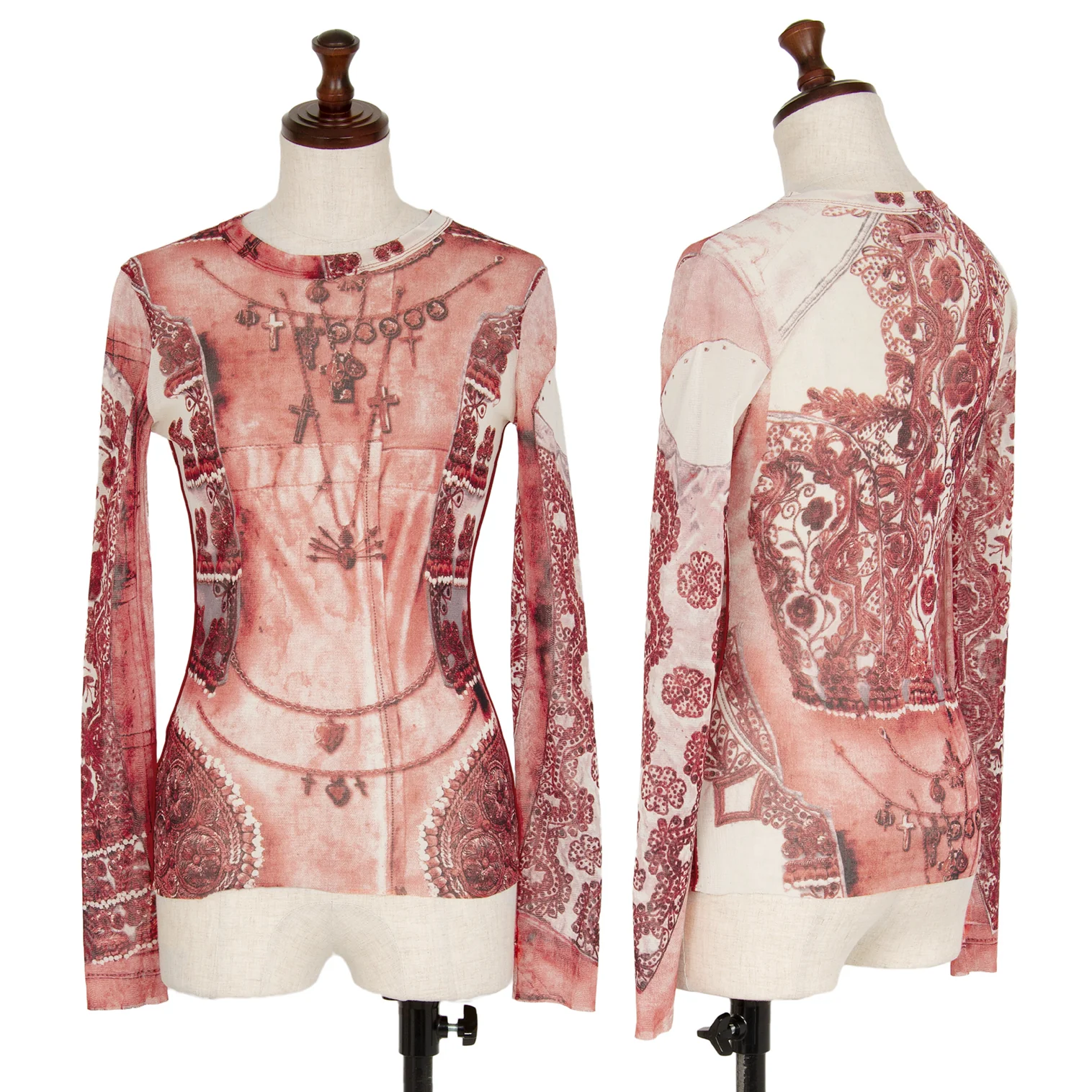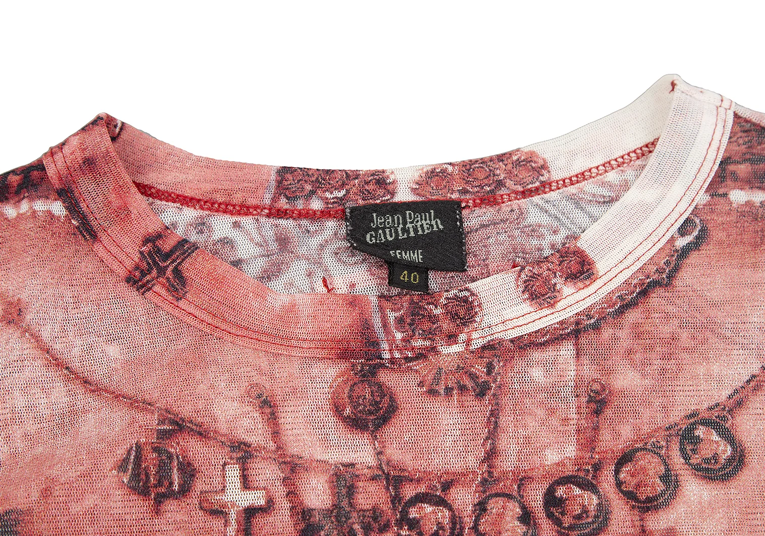 ジャンポールゴルチエ ファムJean Paul GAULTIER FEMME チャームエンブロイダリープリントパワーネットカットソー 赤白40