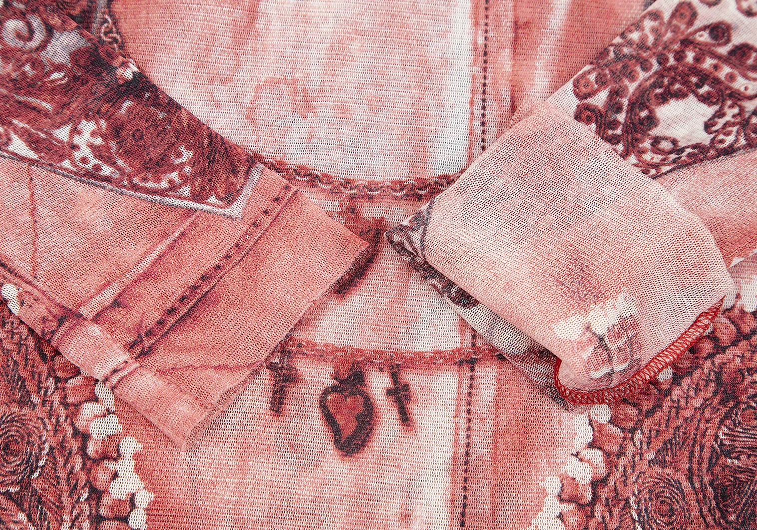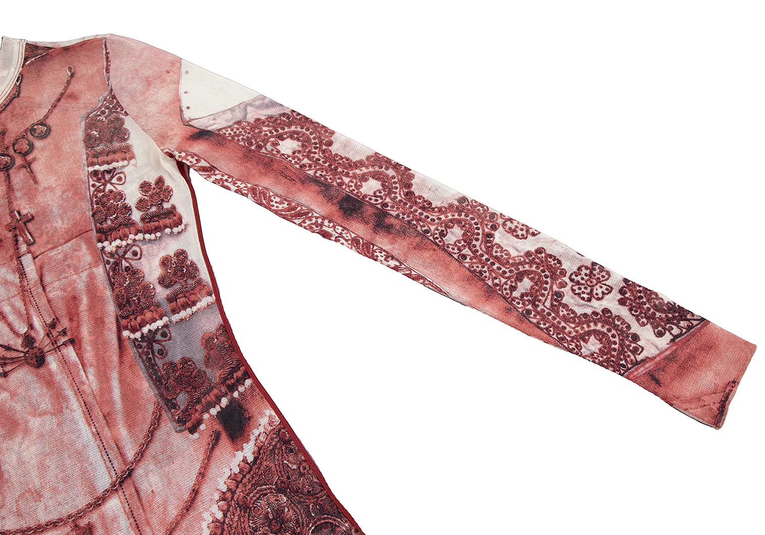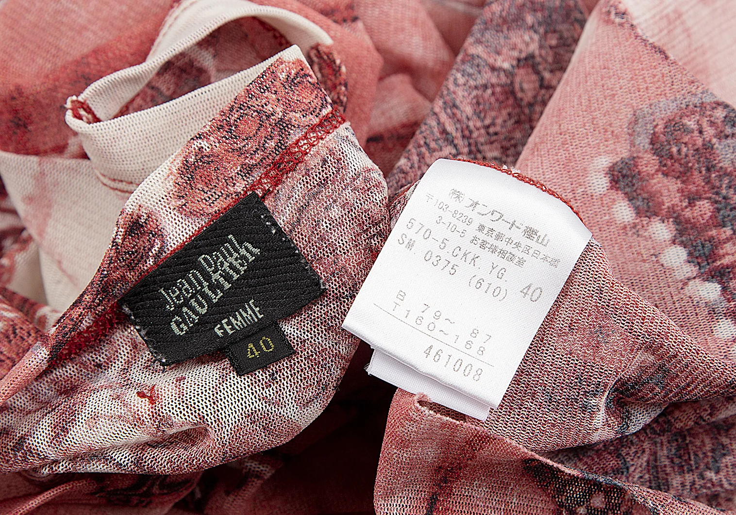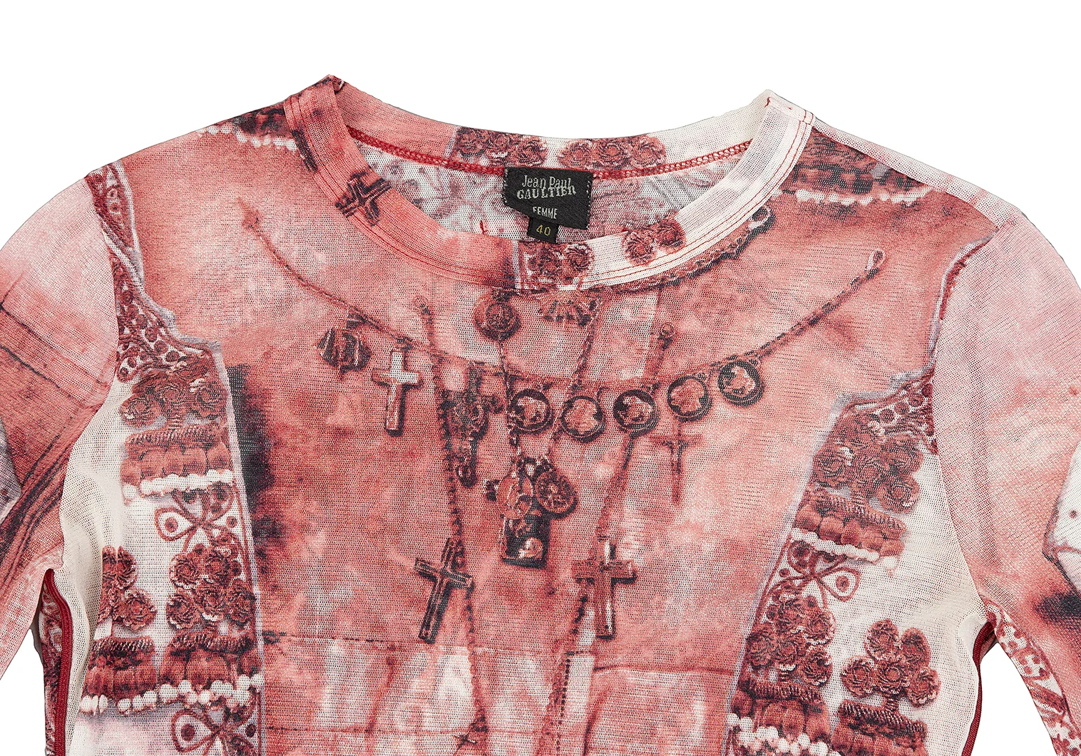 ジャンポールゴルチエ ファムJean Paul GAULTIER FEMME チャームエンブロイダリープリントパワーネットカットソー 赤白40
