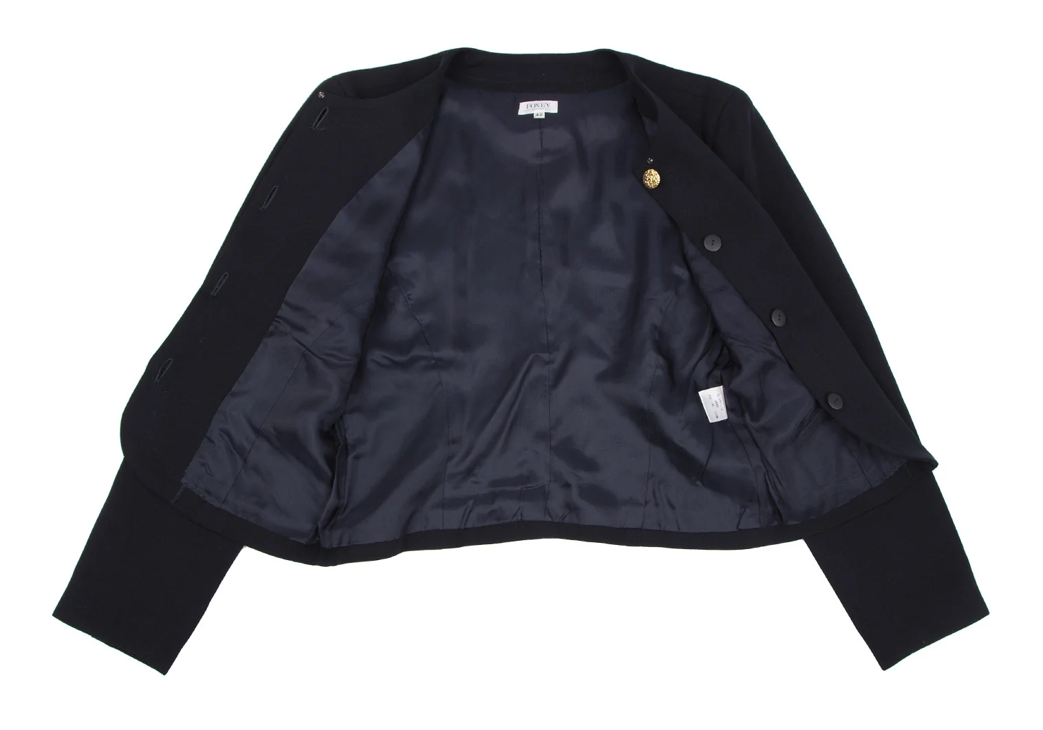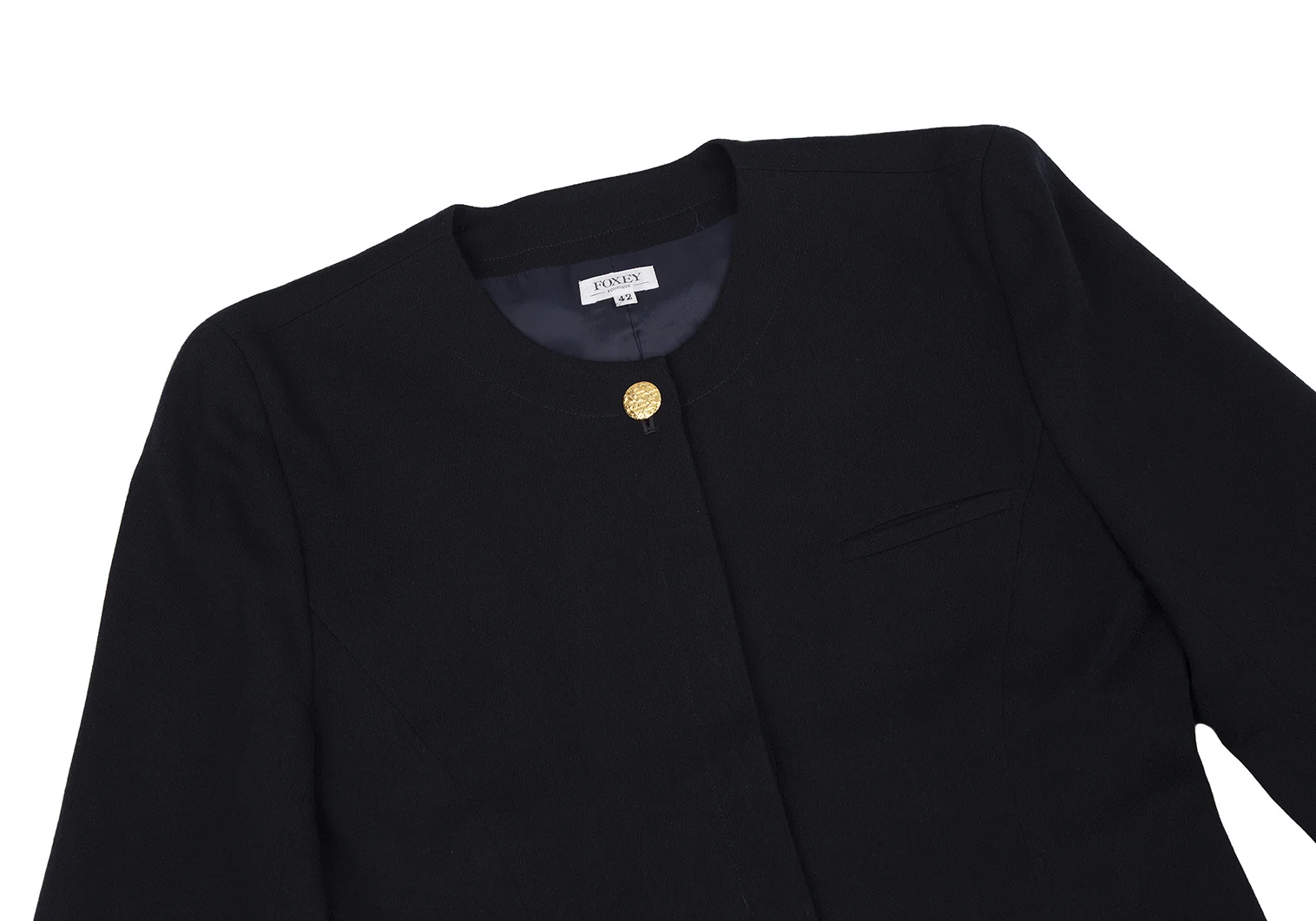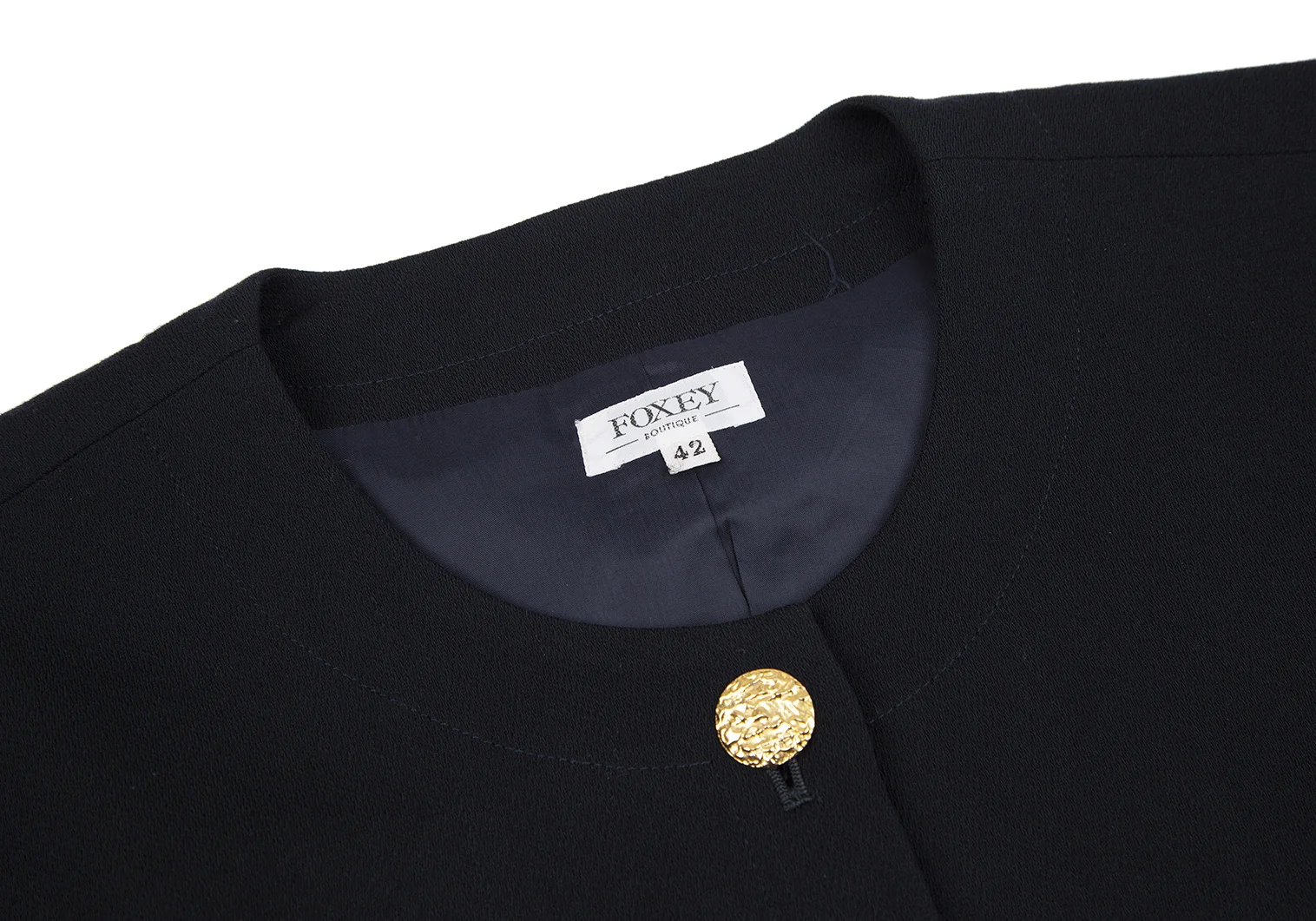 フォクシーFOXEY 金ボタンウールノーカラージャケット 紺42