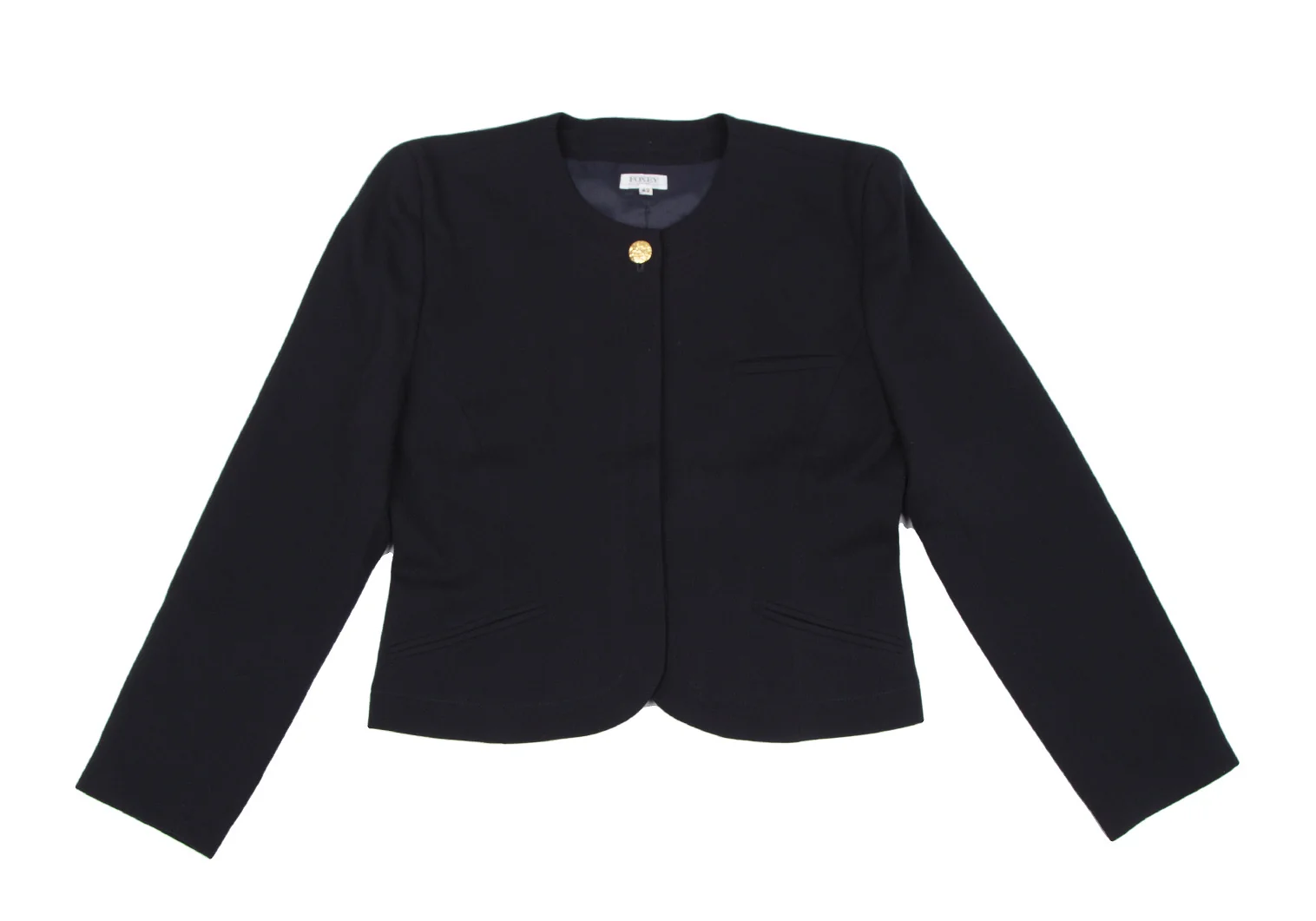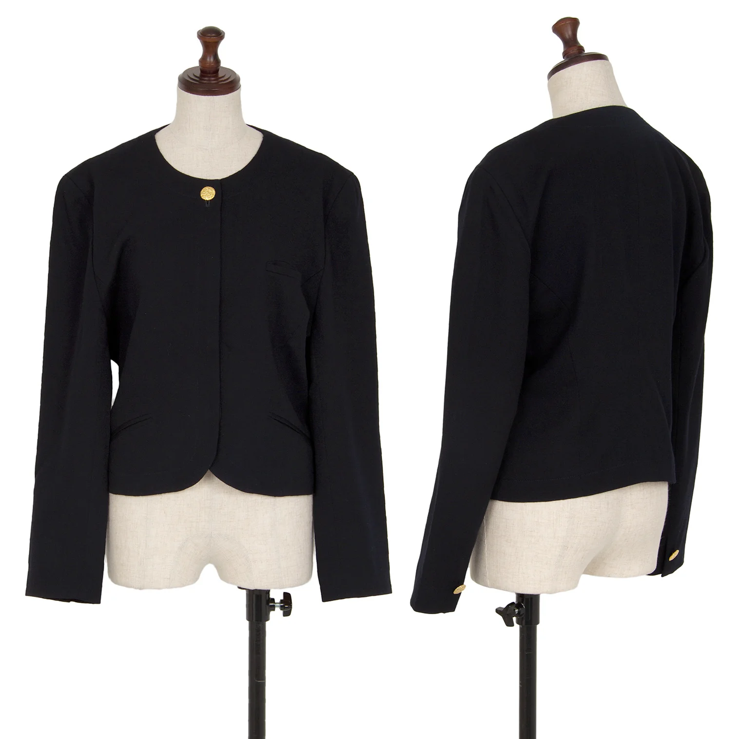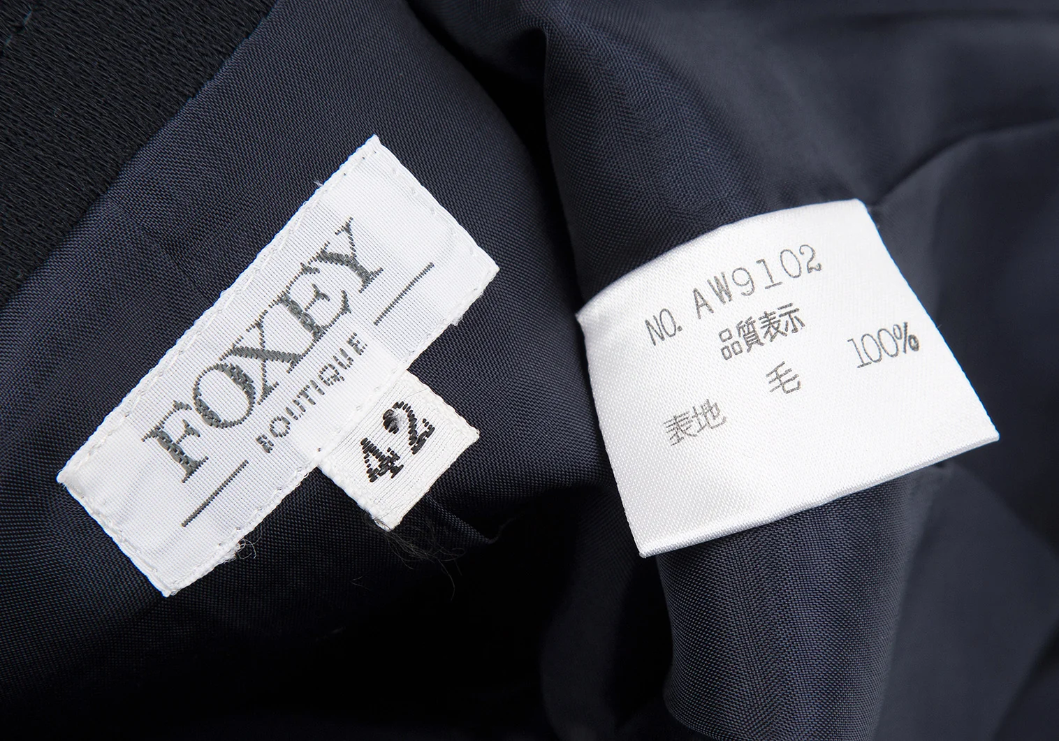 フォクシーFOXEY 金ボタンウールノーカラージャケット 紺42