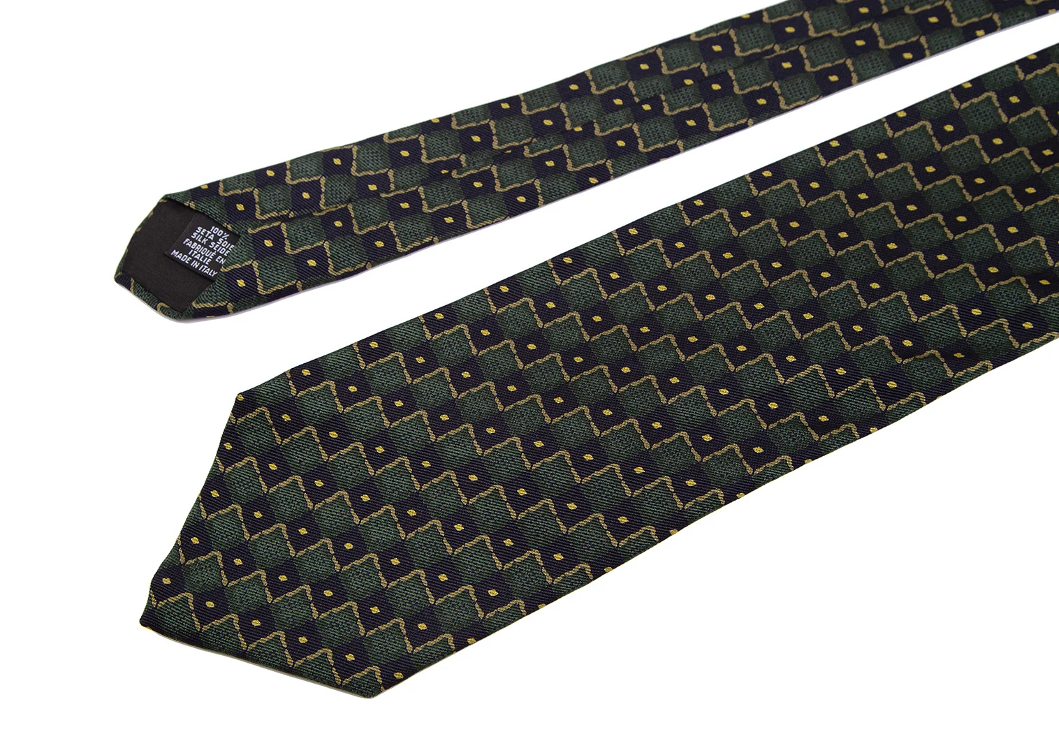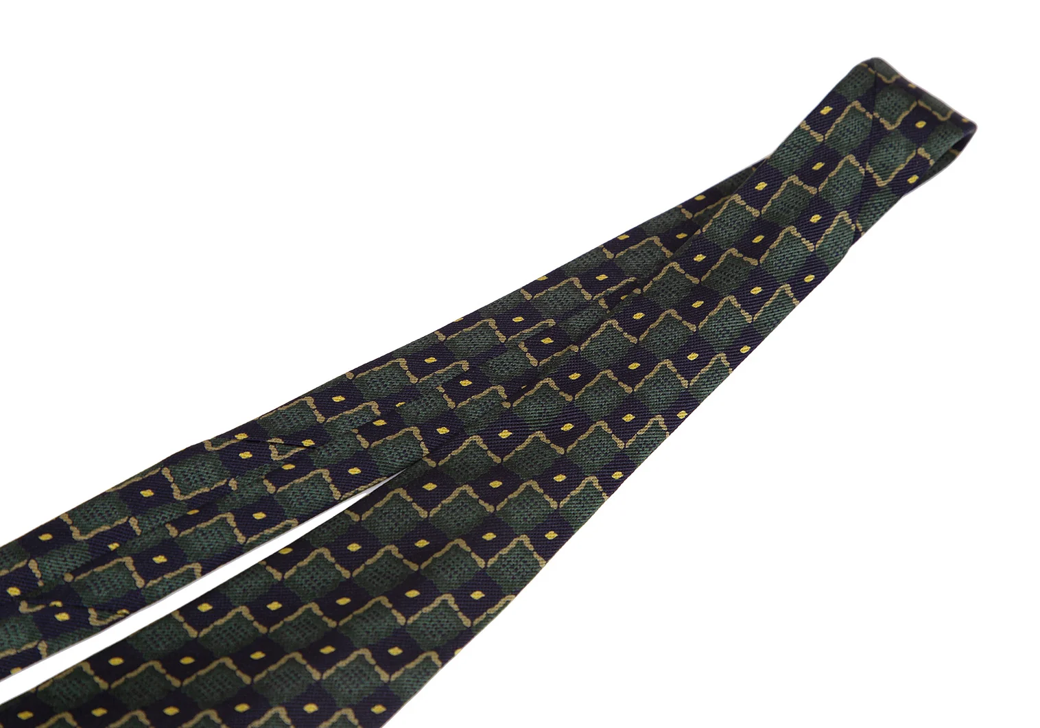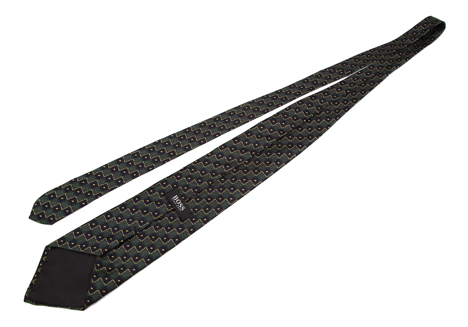 ヒューゴボスHUGO BOSS シルクブロックチェックプリントネクタイ 緑黒