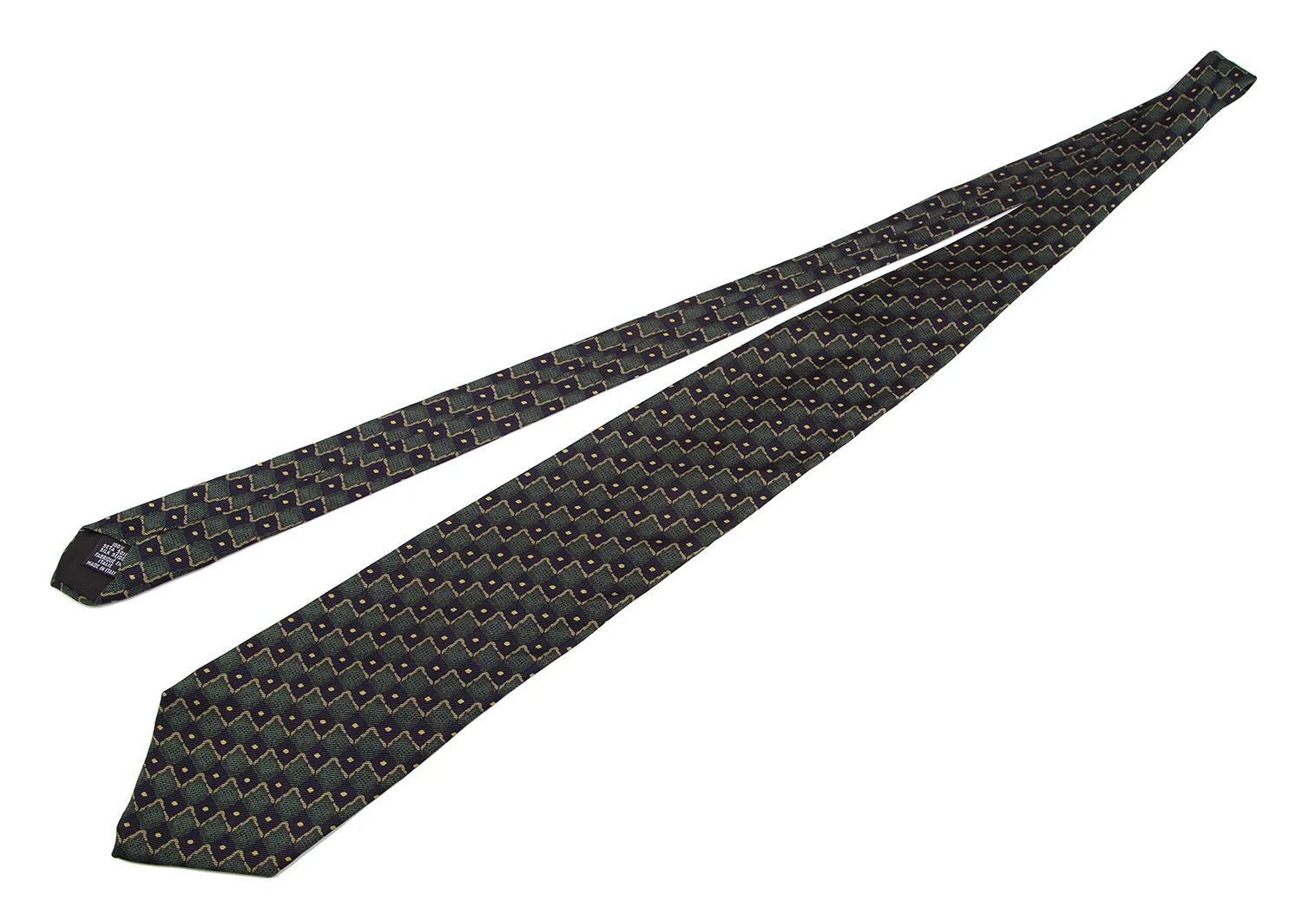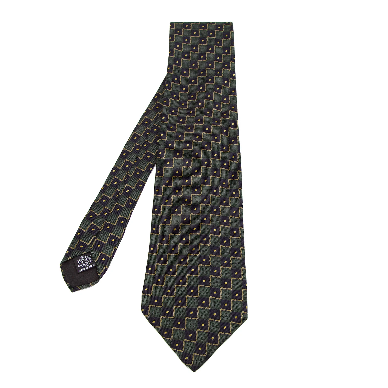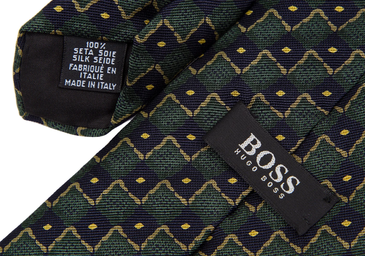 ヒューゴボスHUGO BOSS シルクブロックチェックプリントネクタイ 緑黒