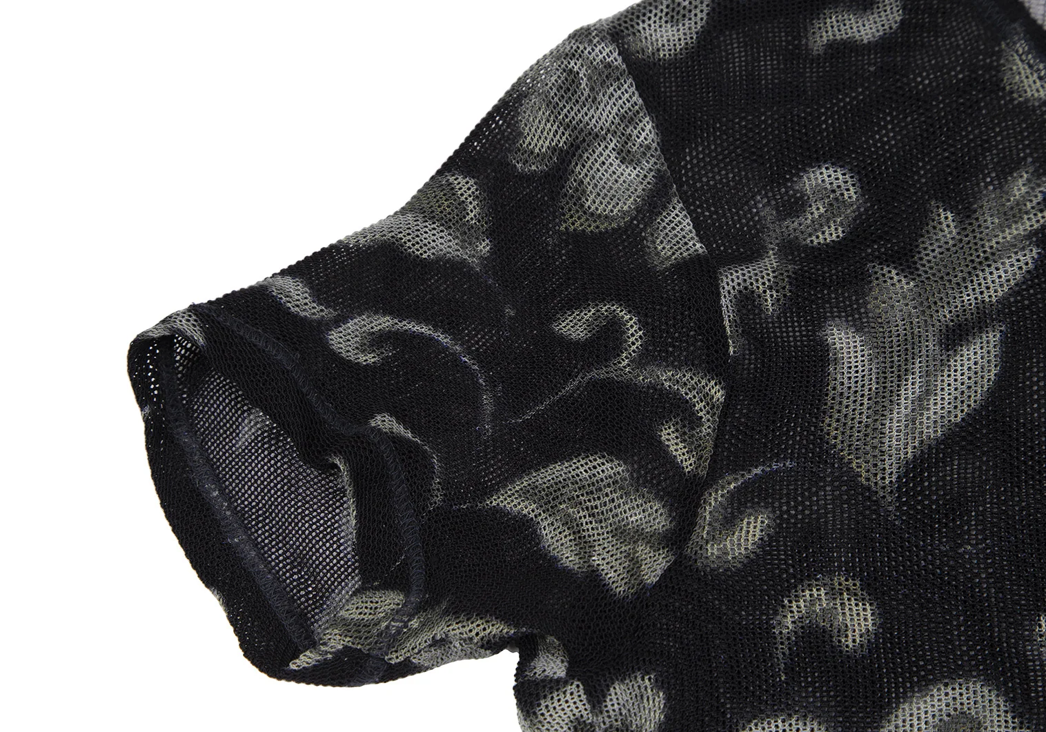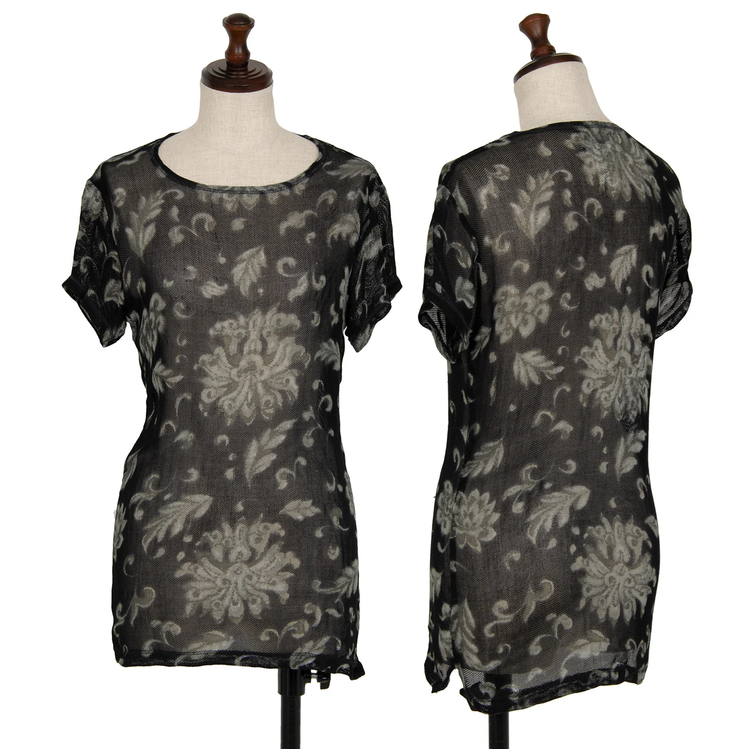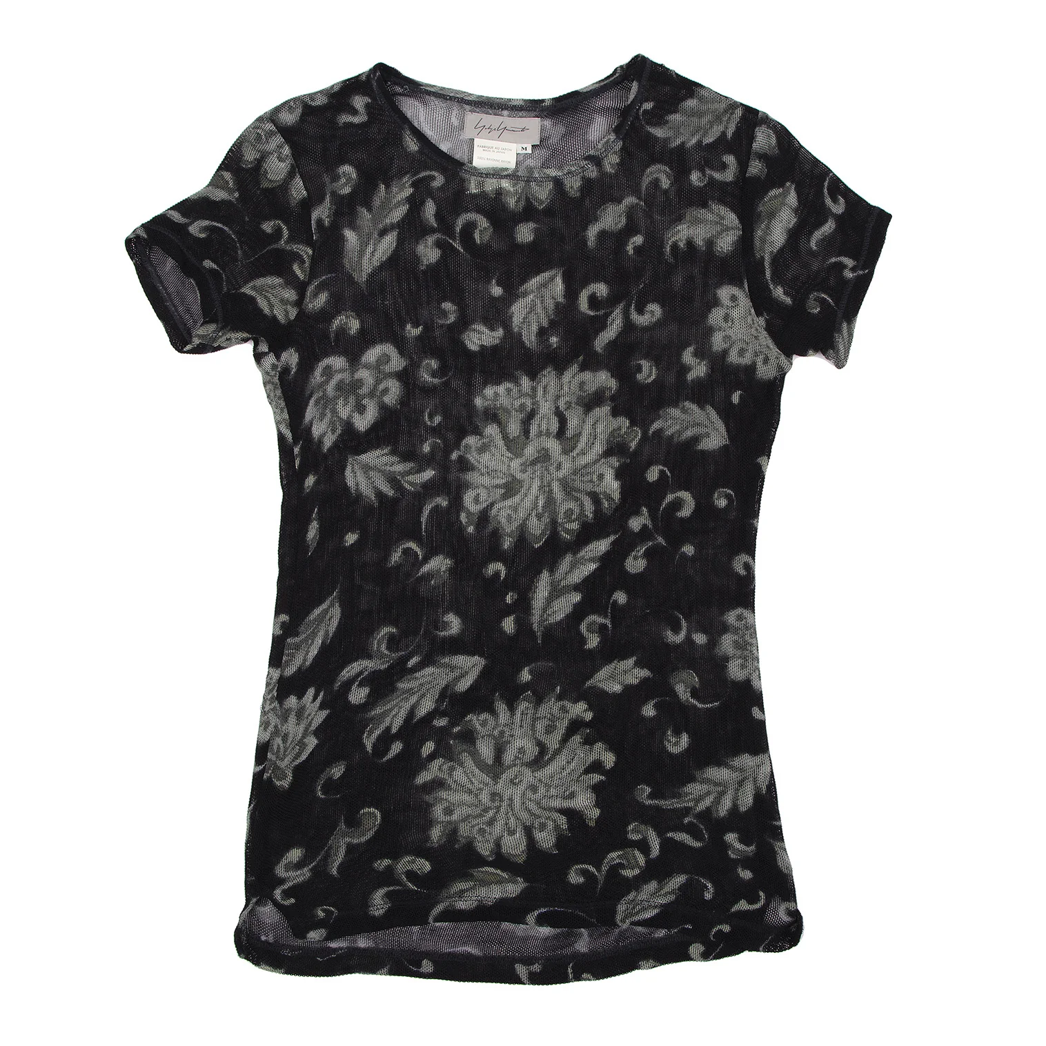 ヨウジヤマモト ファムYohji Yamamoto FEMMEダマスクプリントメッシュTシャツ 黒M