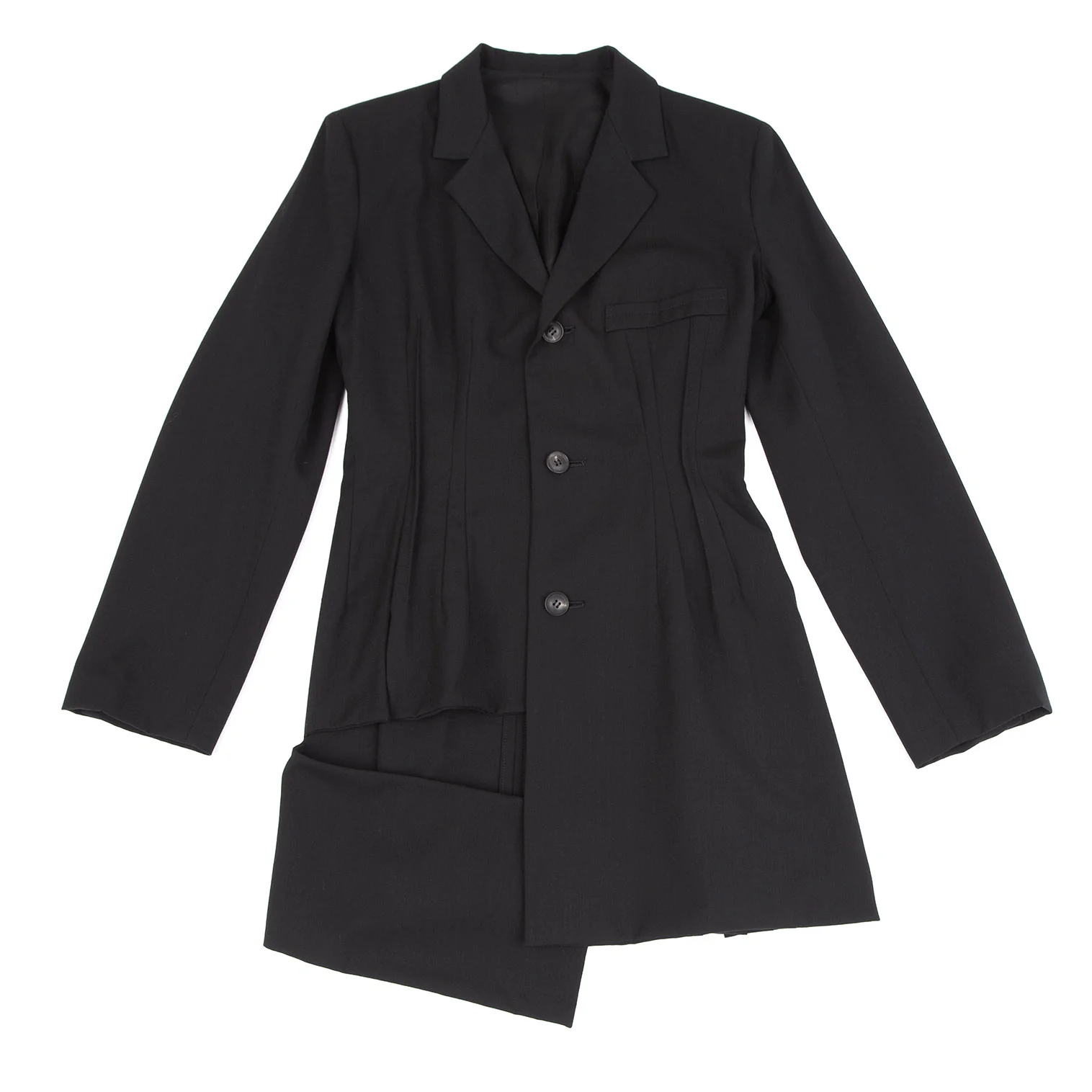 ヨウジヤマモト ファムYohji Yamamoto FEMME ウールギャバアシンメトリージャケットセットアップスーツ 黒XS