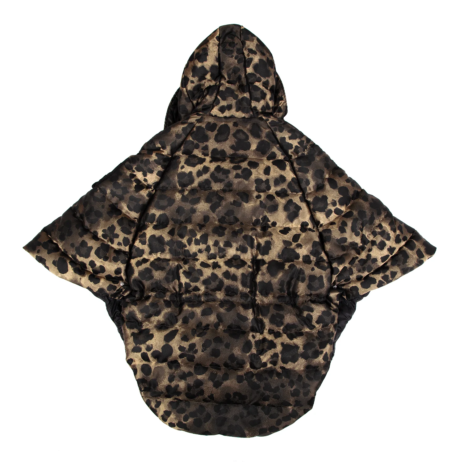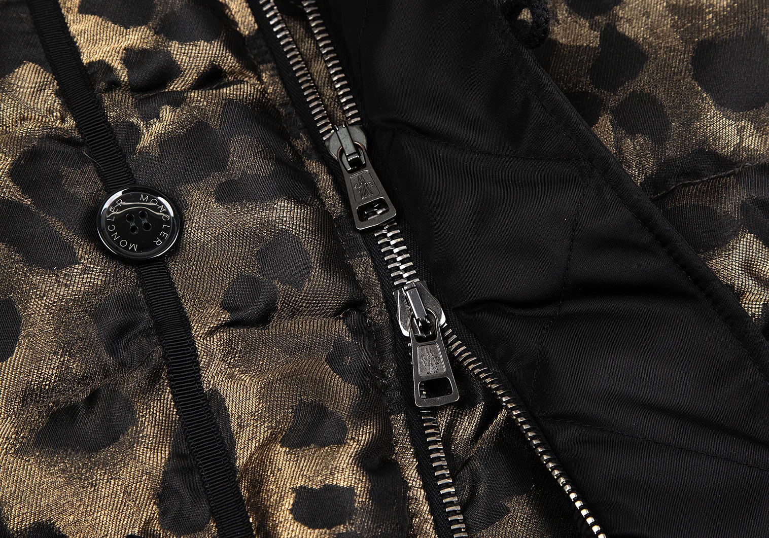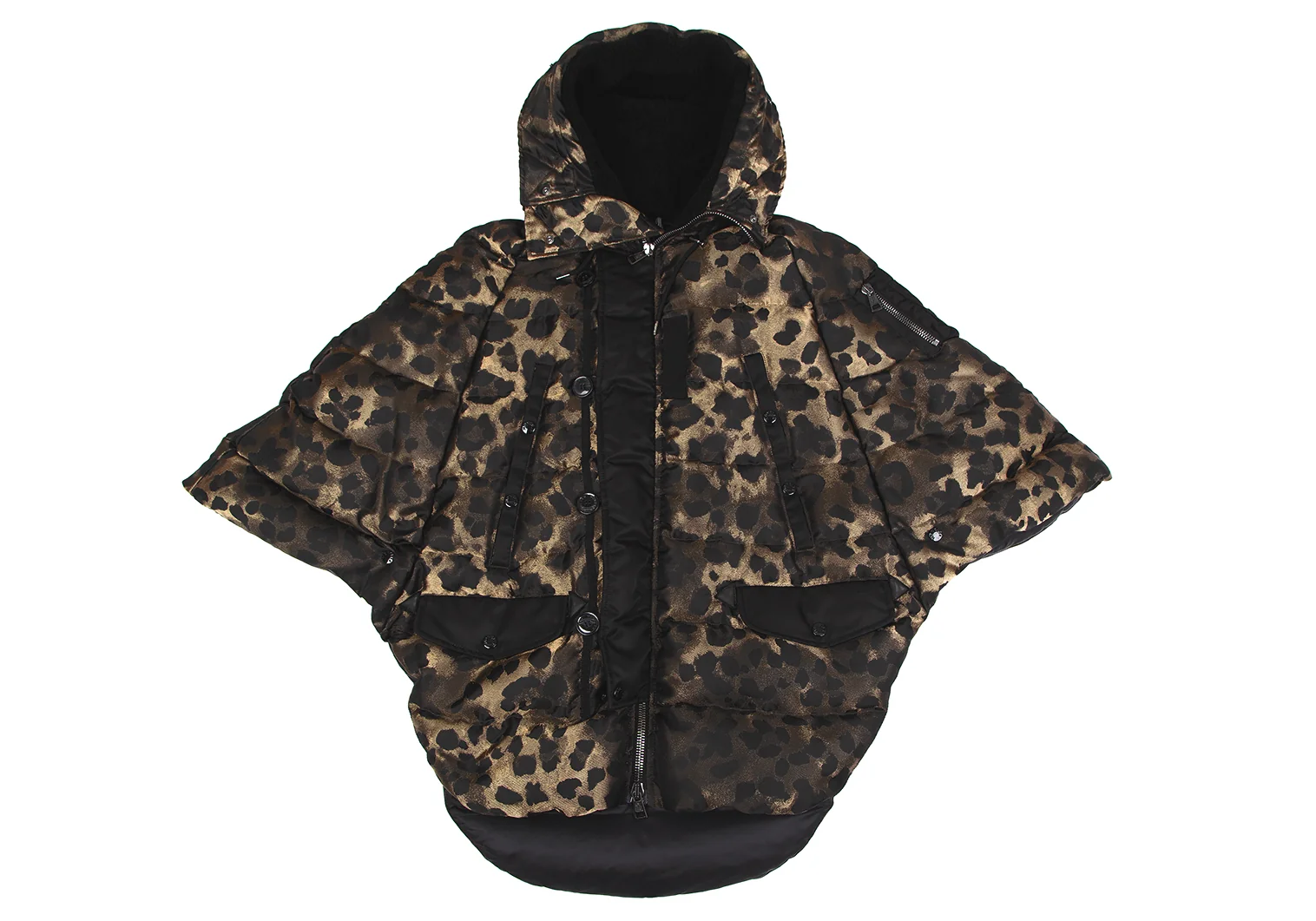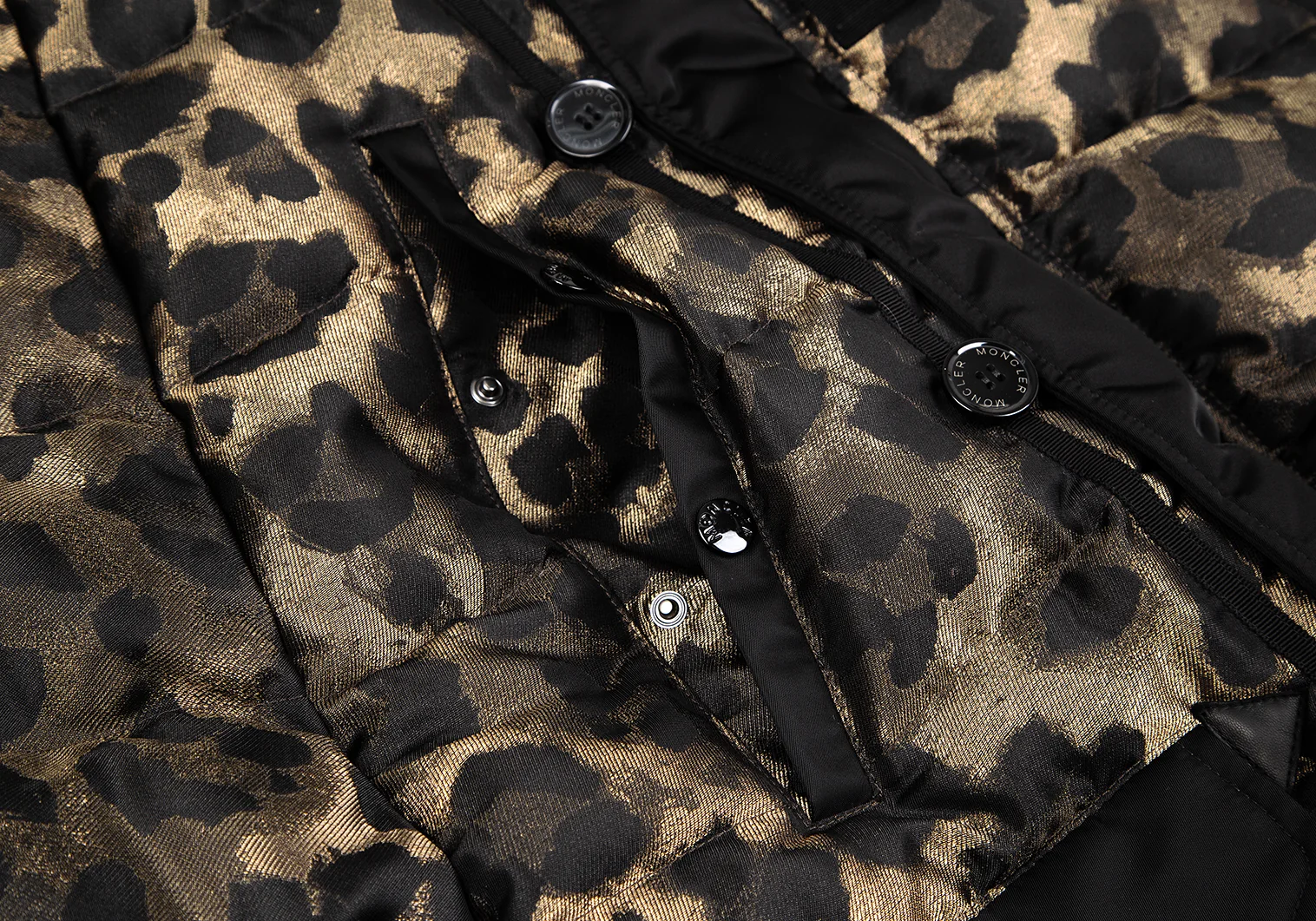 モンクレールMONCLER Zakura Giubbotto レオパード織りフードポンチョダウンジャケット ゴールド黒1
