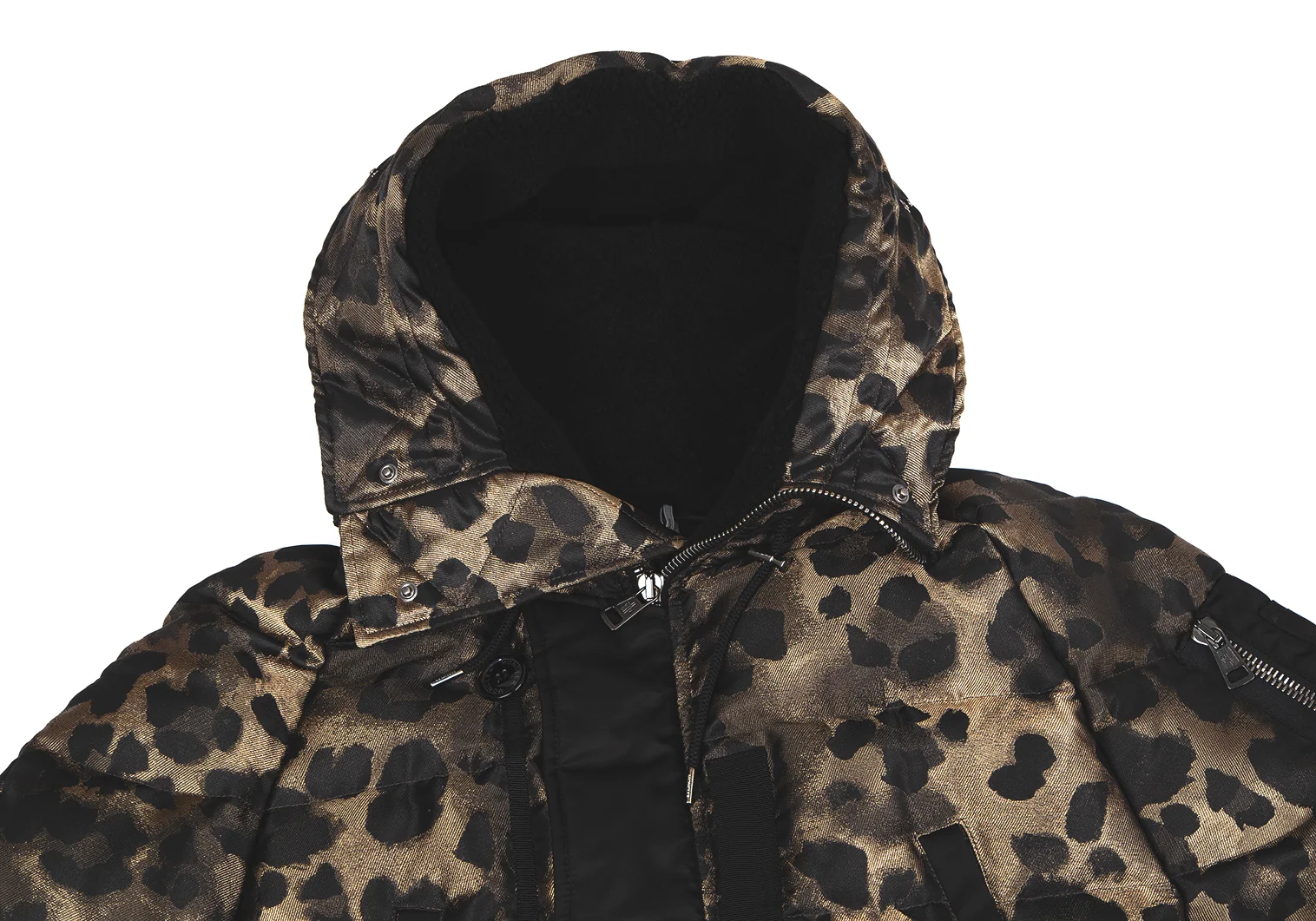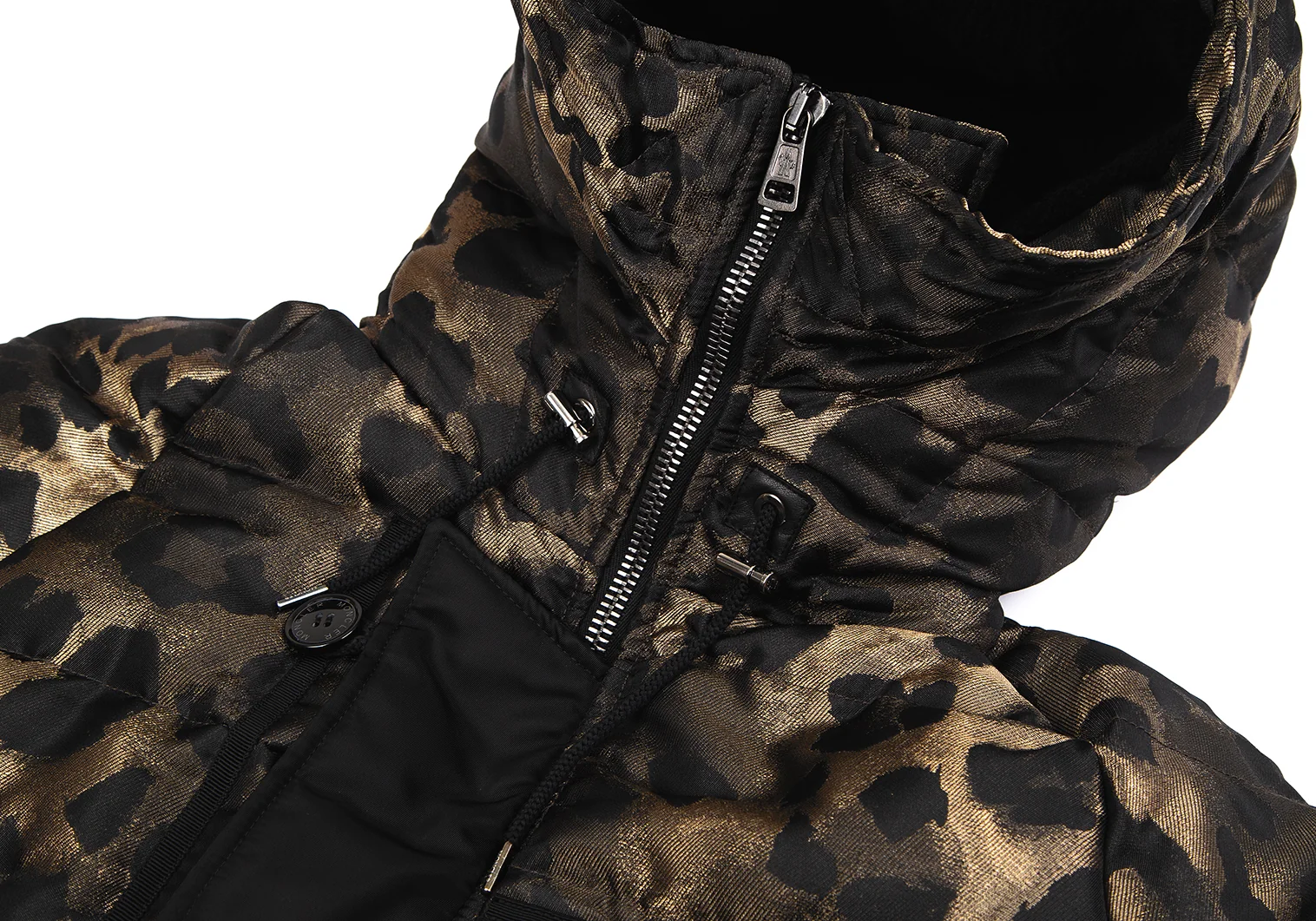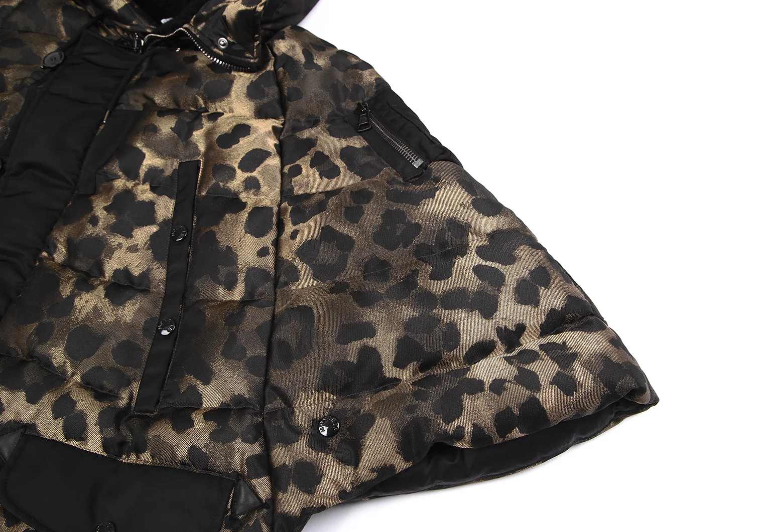 モンクレールMONCLER Zakura Giubbotto レオパード織りフードポンチョダウンジャケット ゴールド黒1