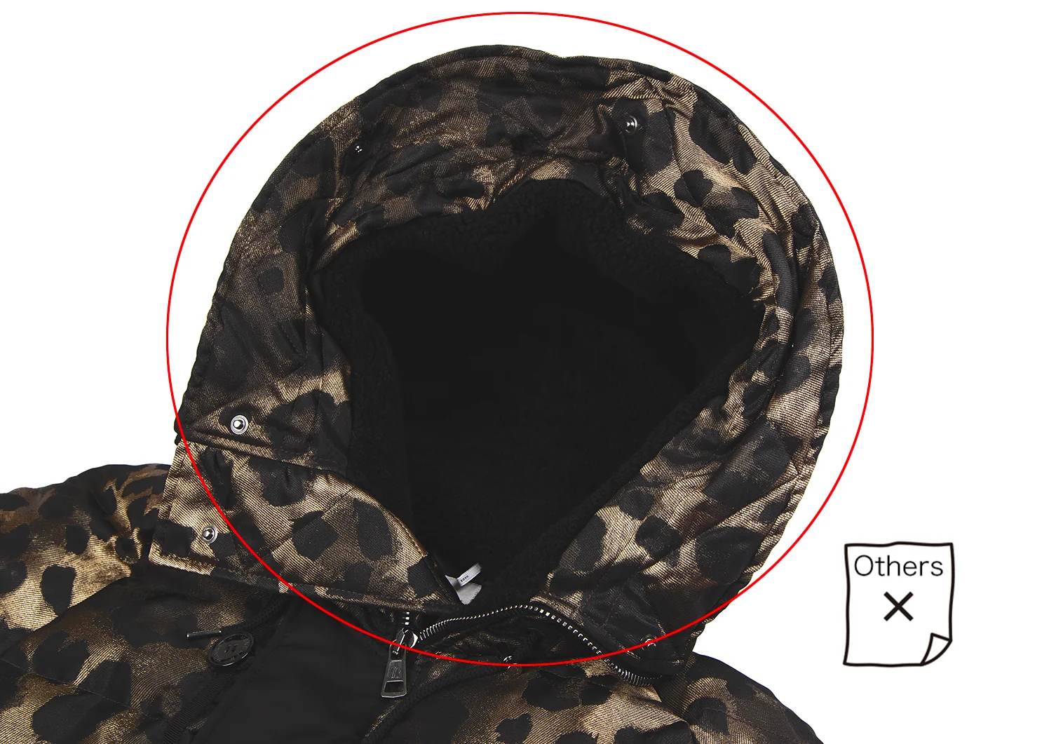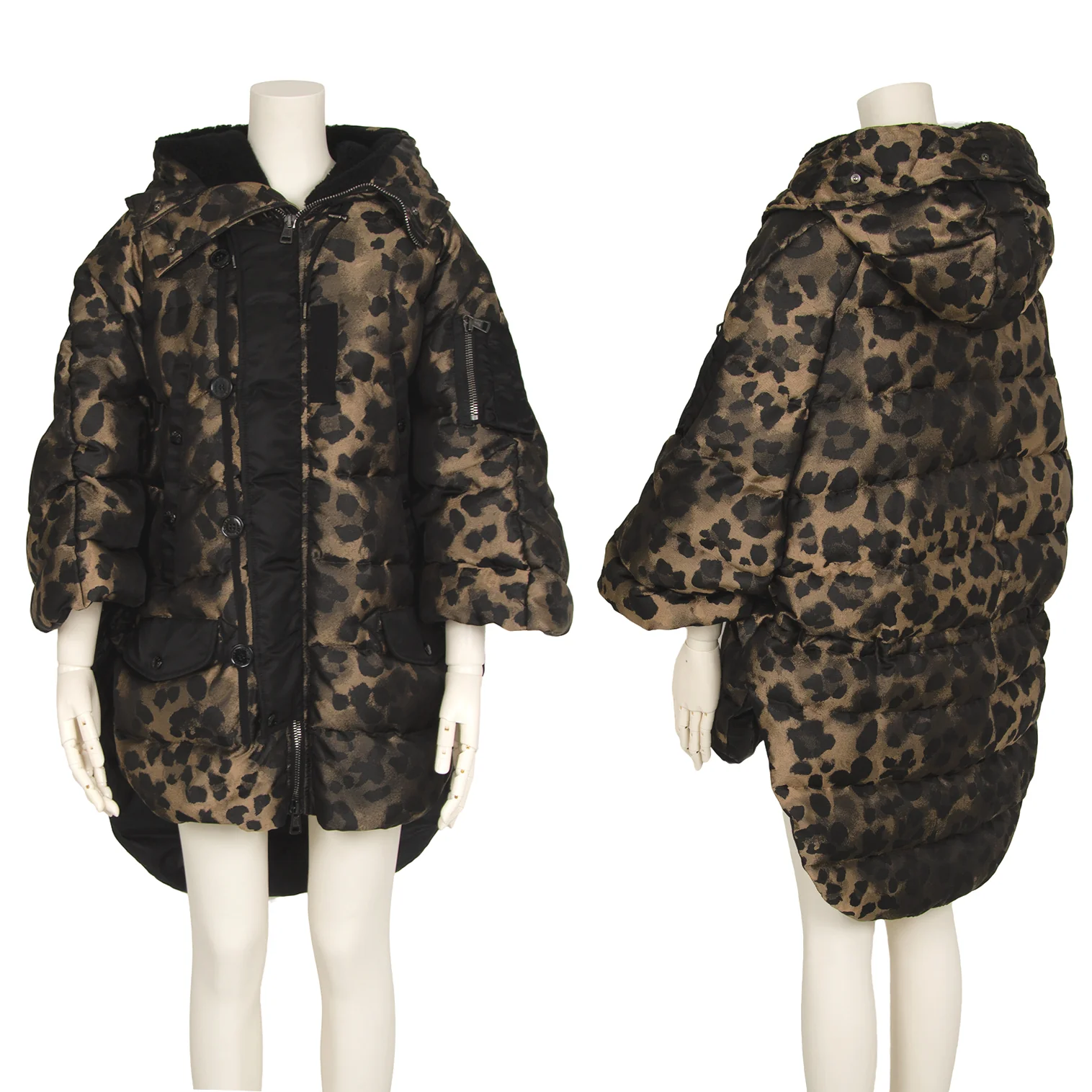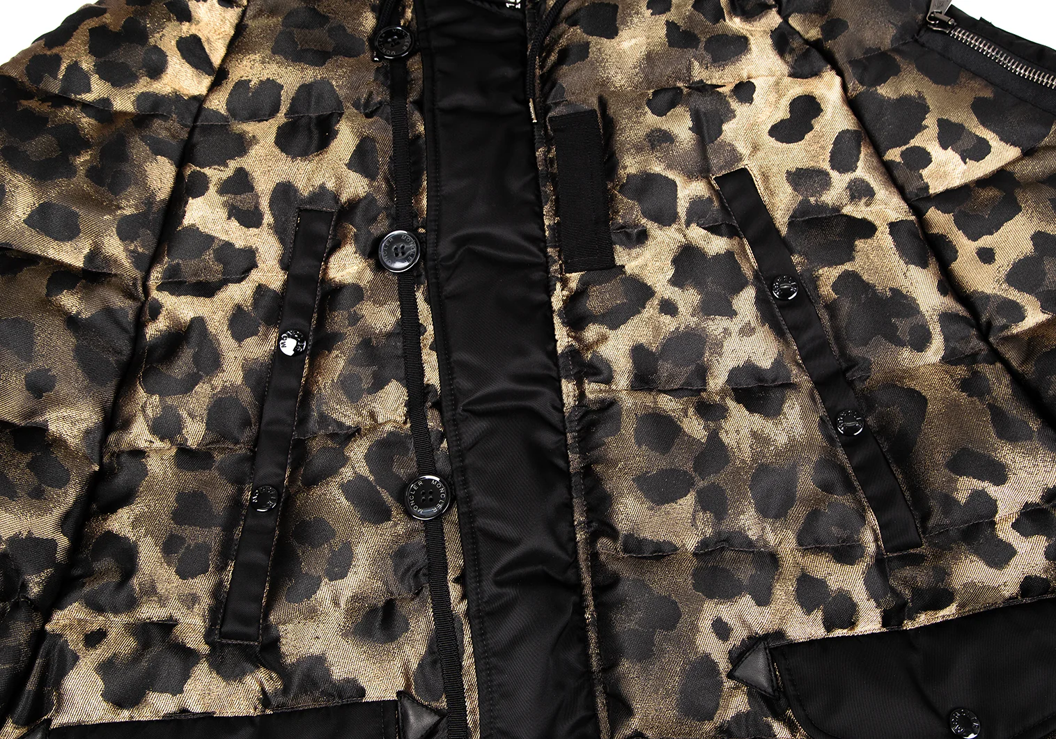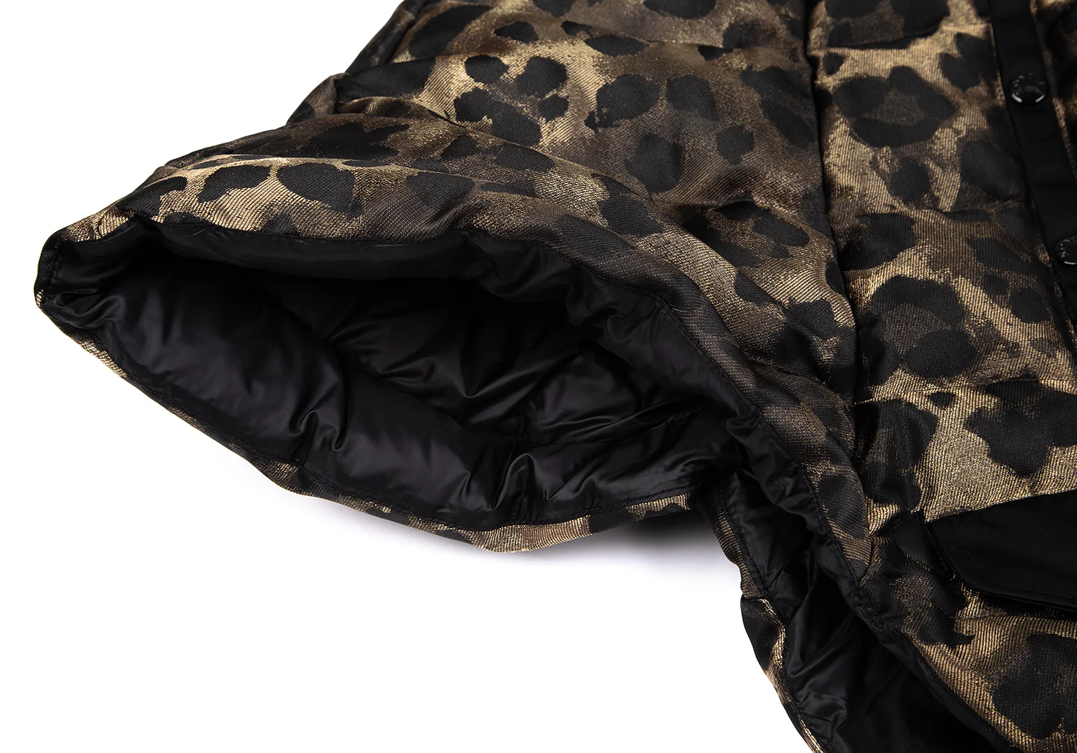モンクレールMONCLER Zakura Giubbotto レオパード織りフードポンチョダウンジャケット ゴールド黒1