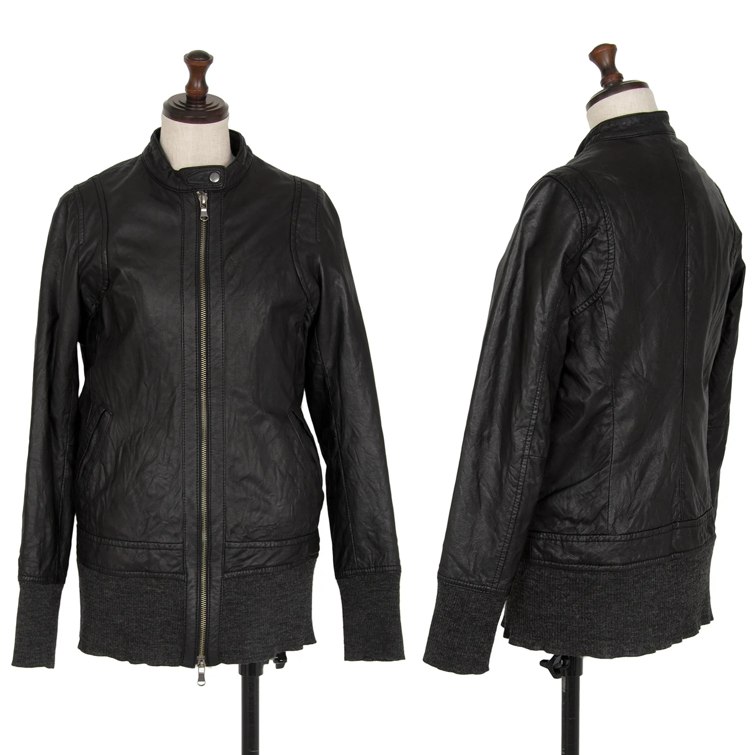 エストネーションESTNATION ラムレザーシングルジャケット 黒F