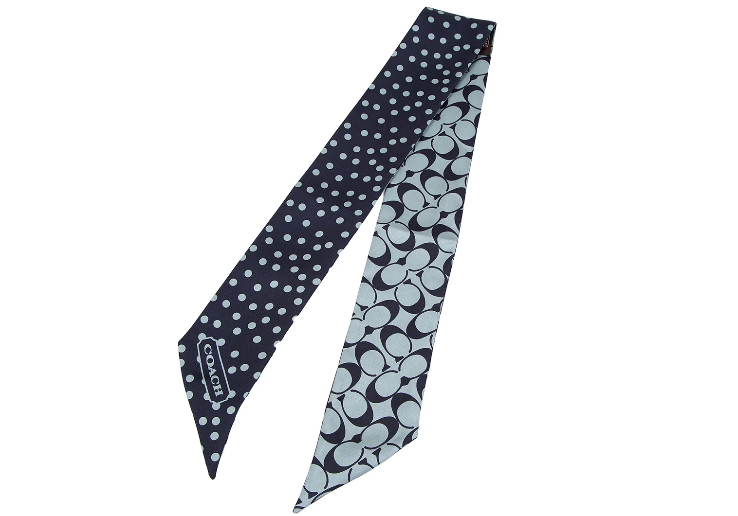 コーチCOACH シグニチャードットシルクスカーフ 紺