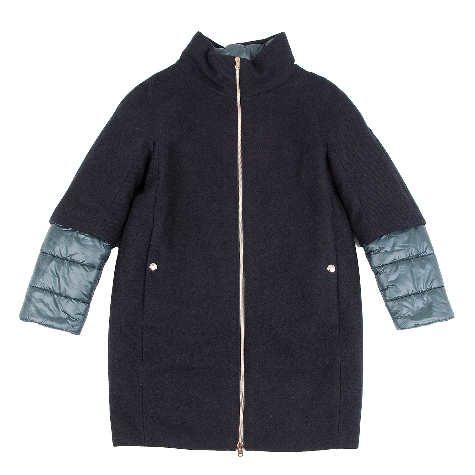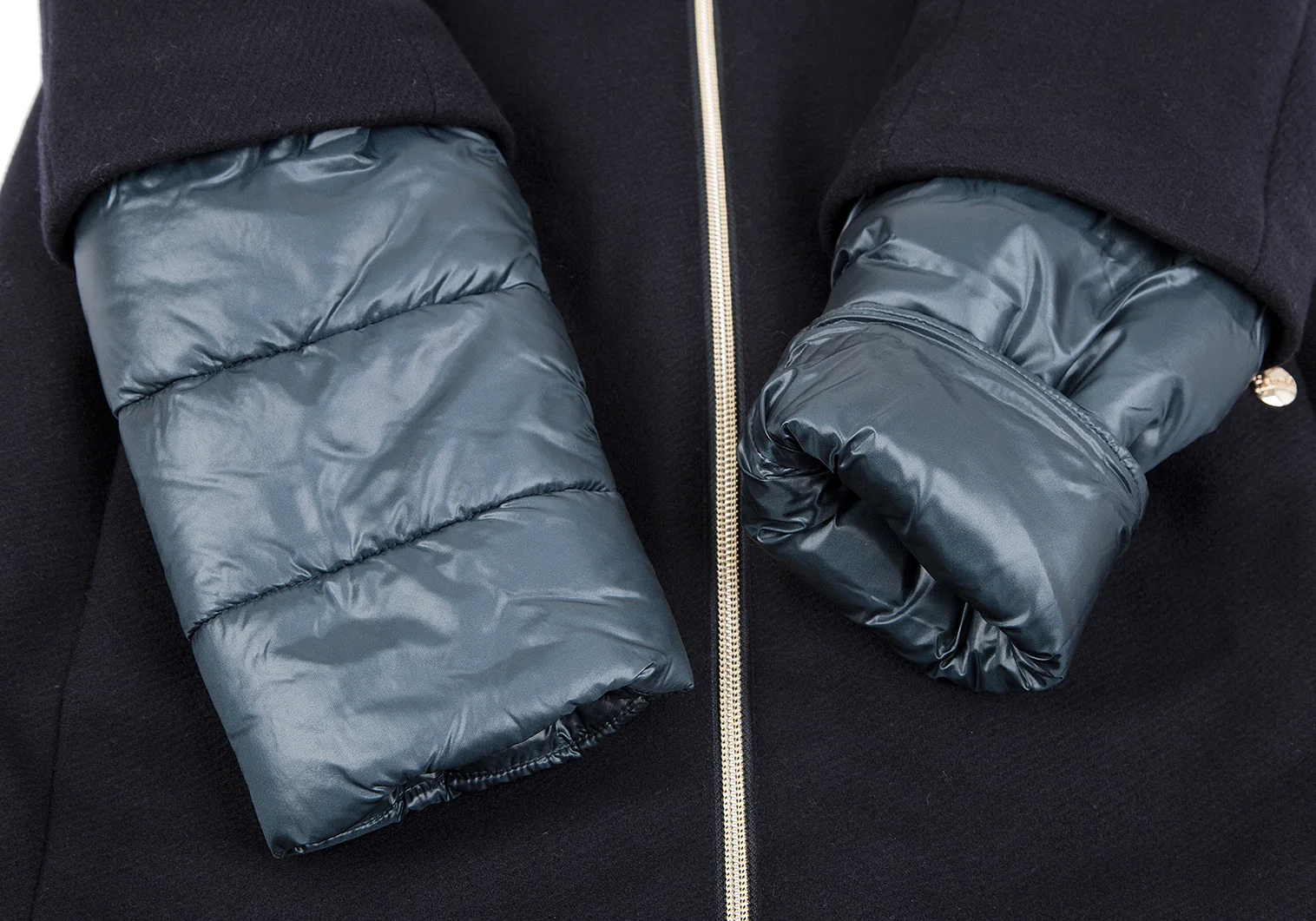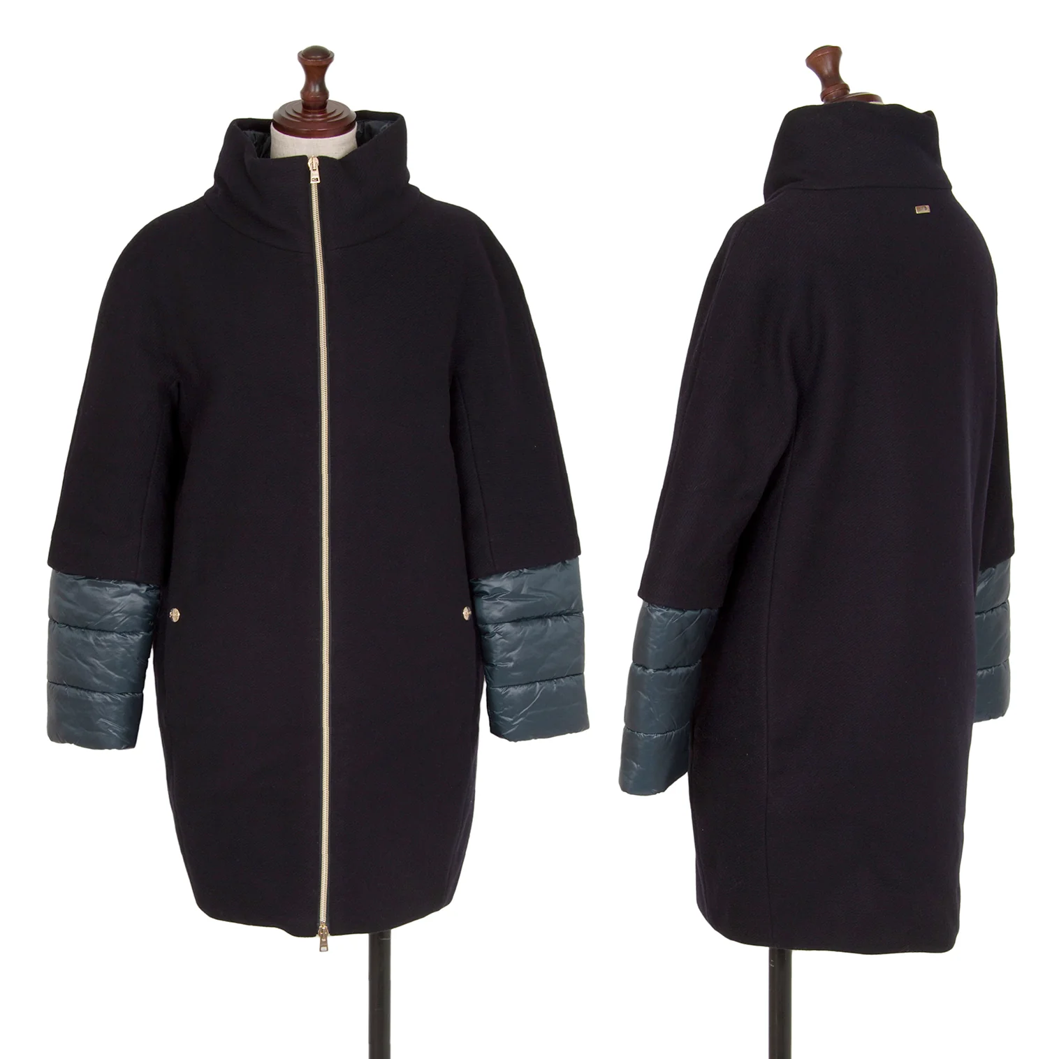 ヘルノHERNO キルティング切替中綿ウールコート 紺12A