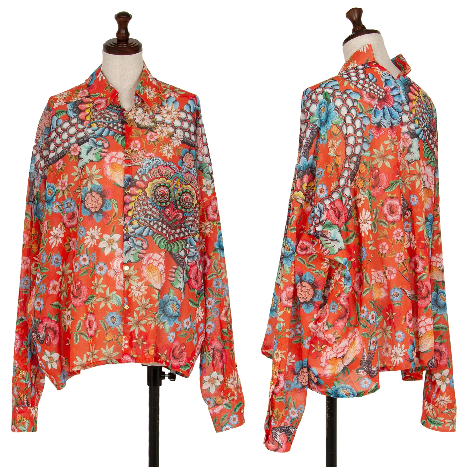 ジュンヤワタナベ コムデギャルソンJUNYA WATANABE COMME des GARCONS フラワーシーサープリントワイドシルエットシャツ オレンジマルチXS