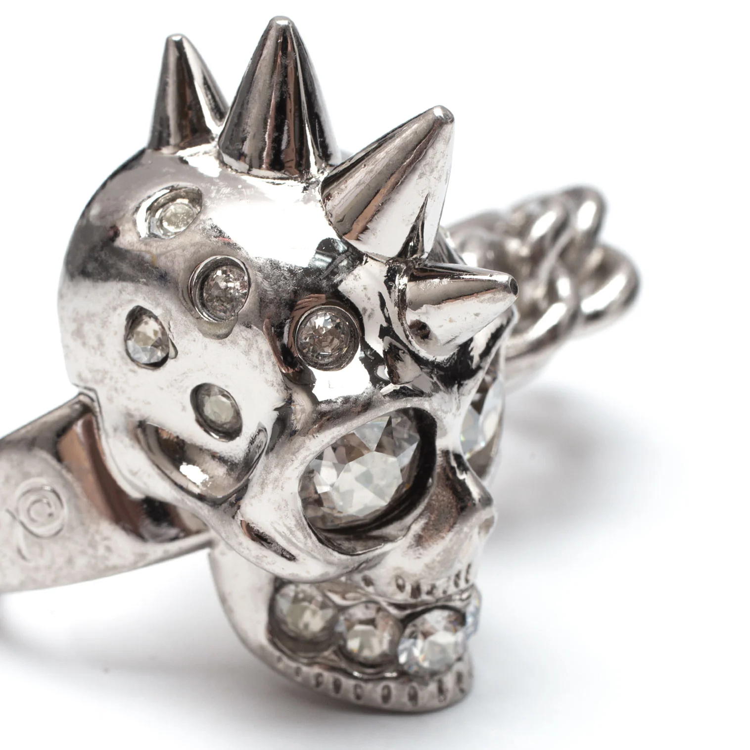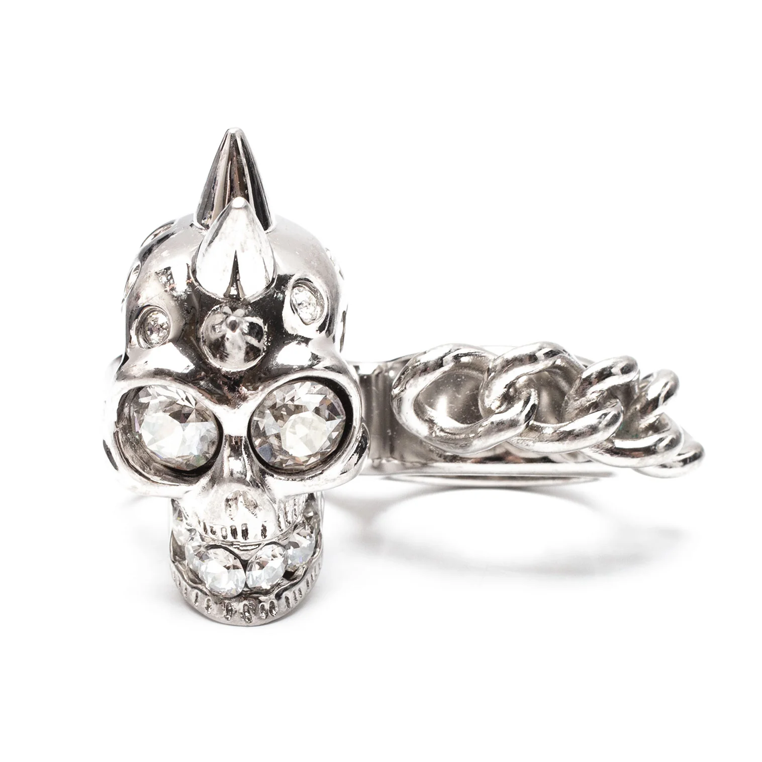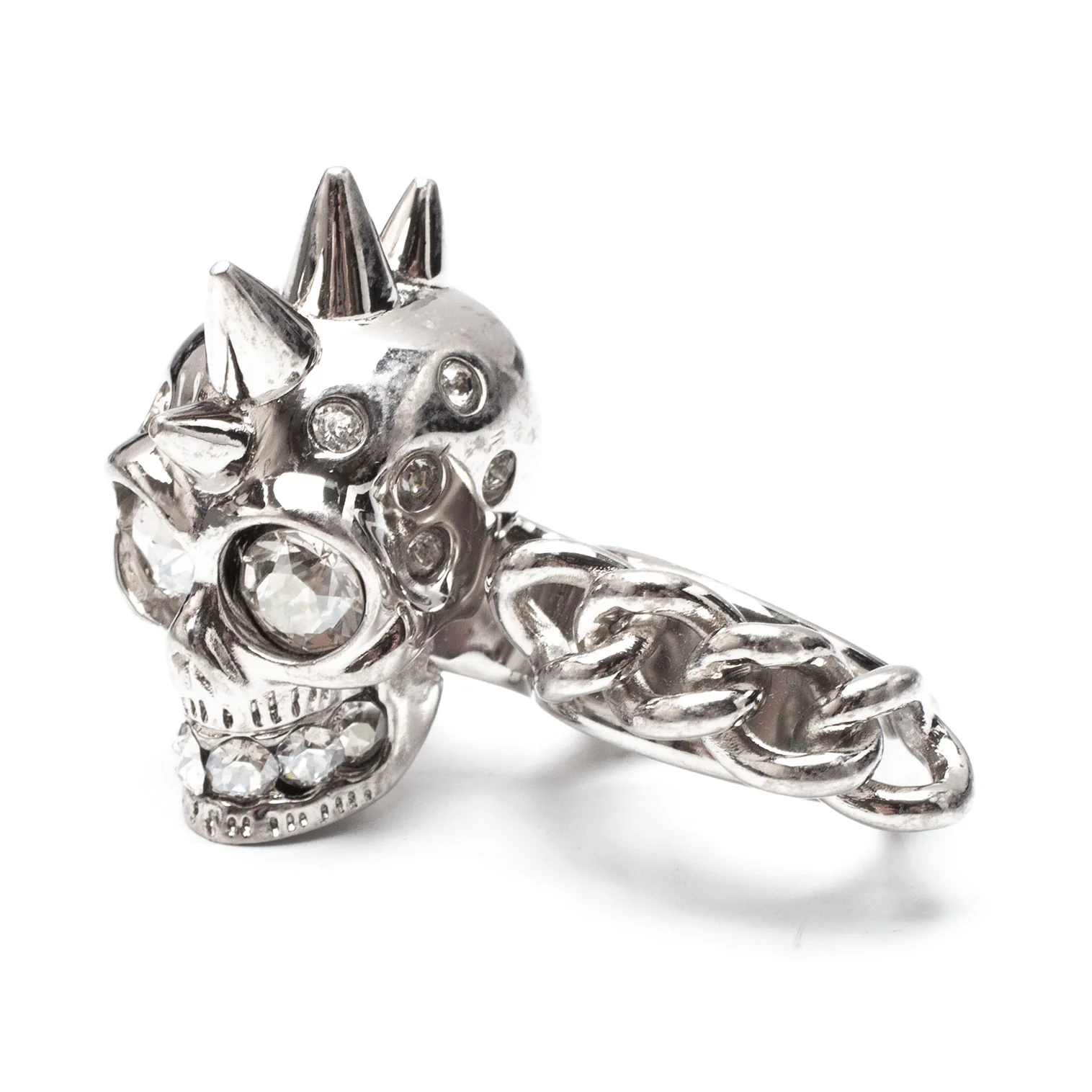 アレキサンダーマックイーンAlexander McQUEEN ラインストーンスカル&チェーンダブルフィンガーリング シルバー13/15号