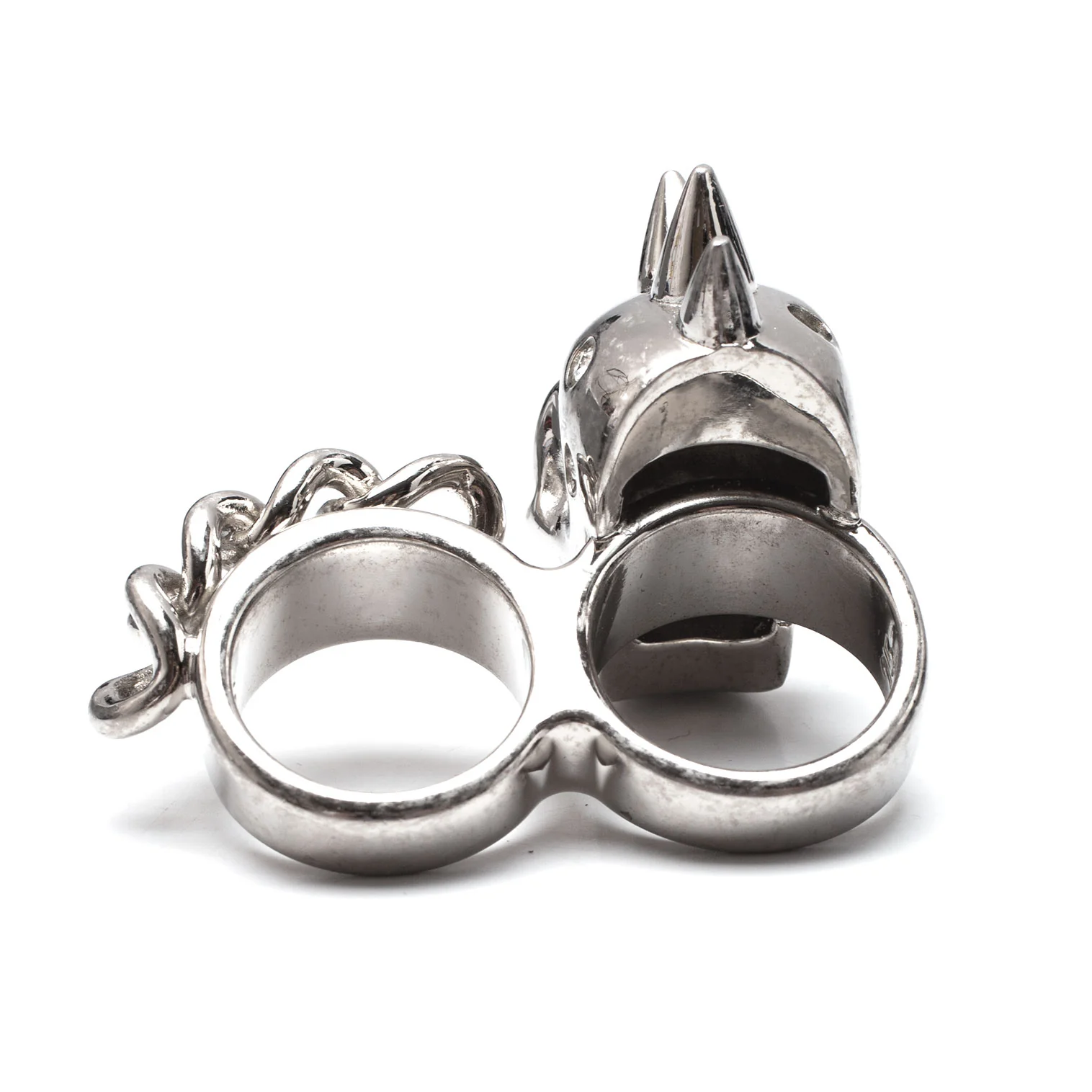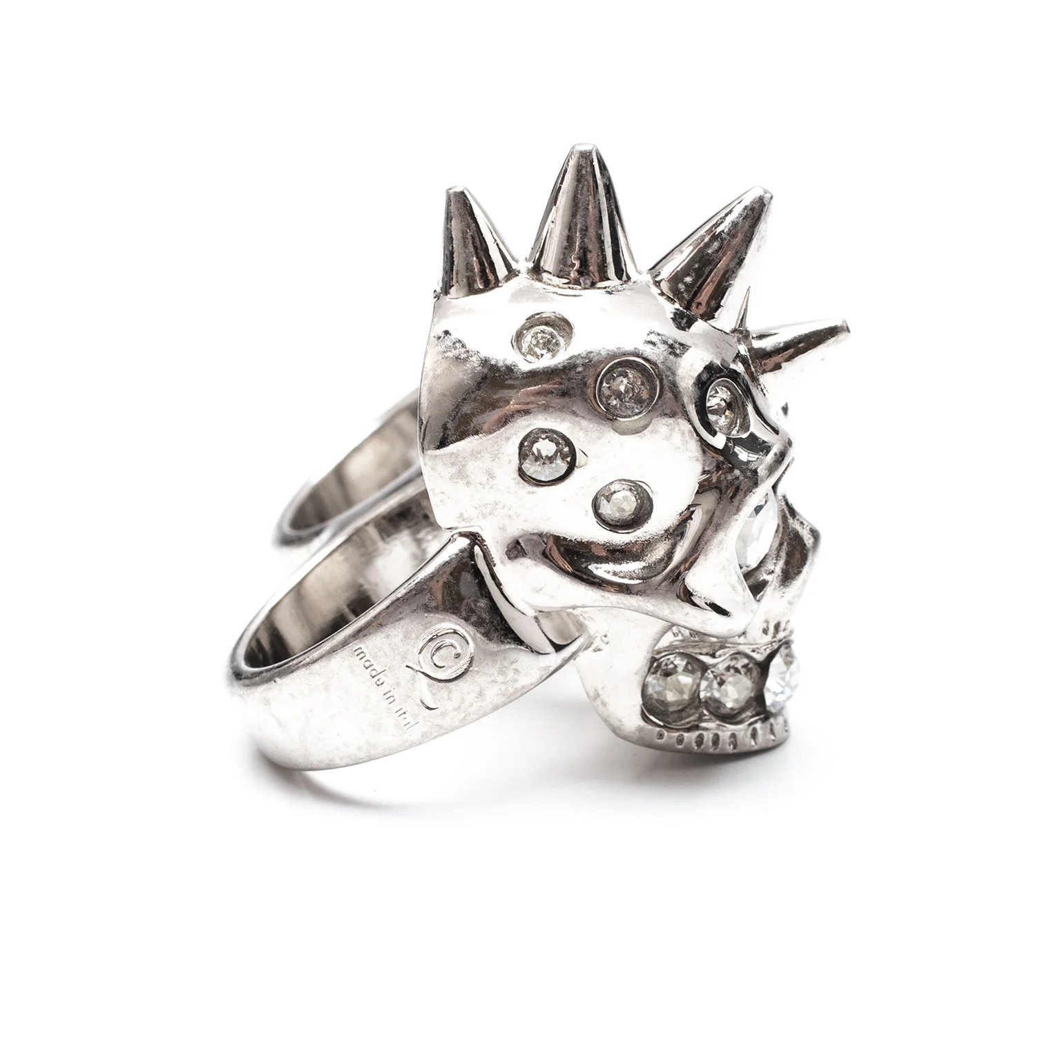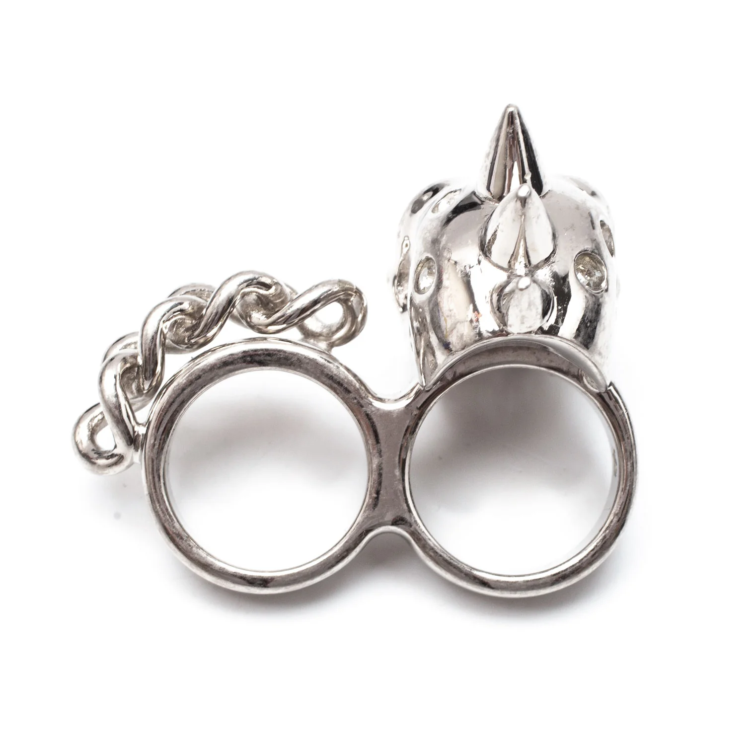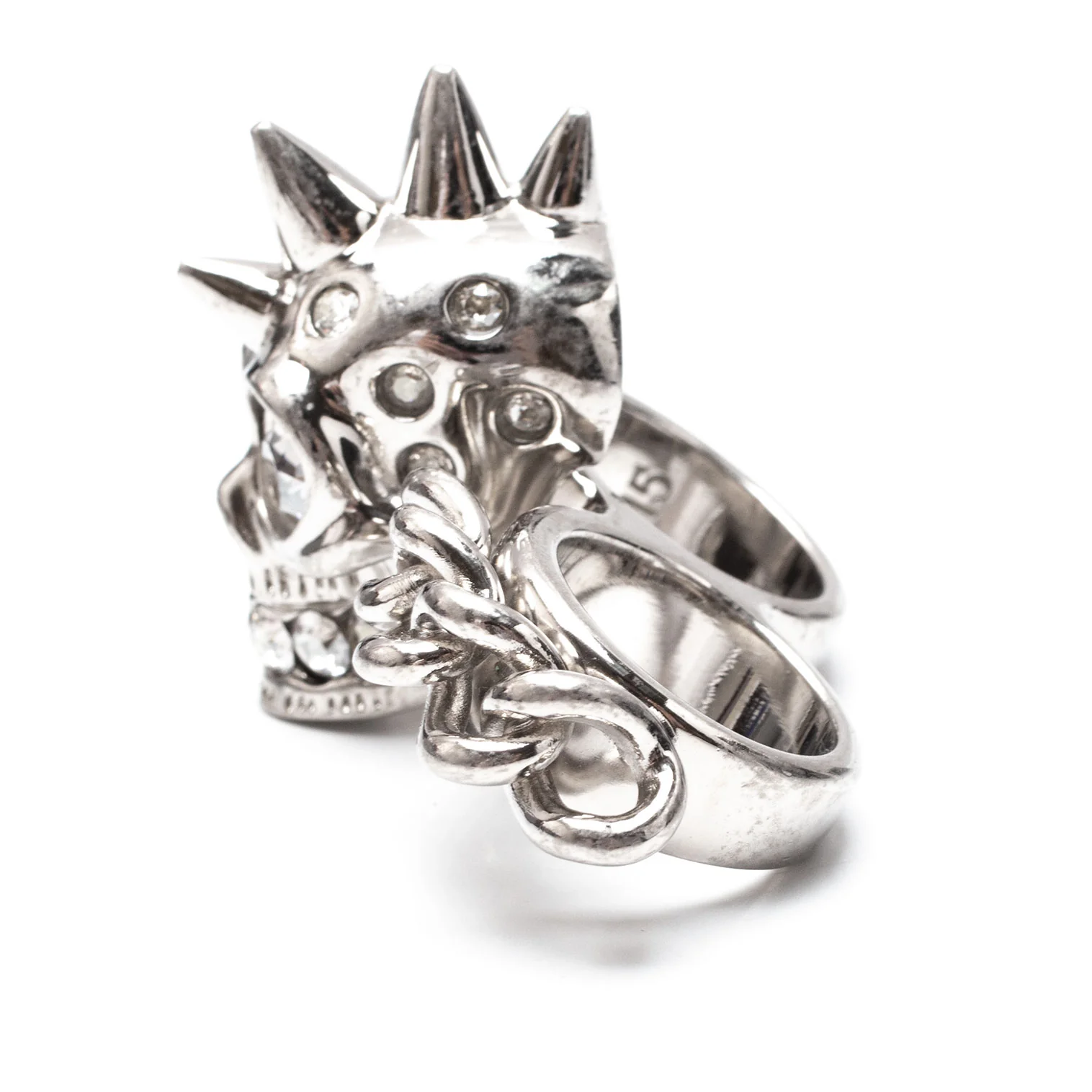 アレキサンダーマックイーンAlexander McQUEEN ラインストーンスカル&チェーンダブルフィンガーリング シルバー13/15号