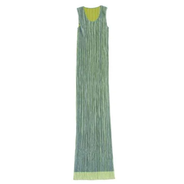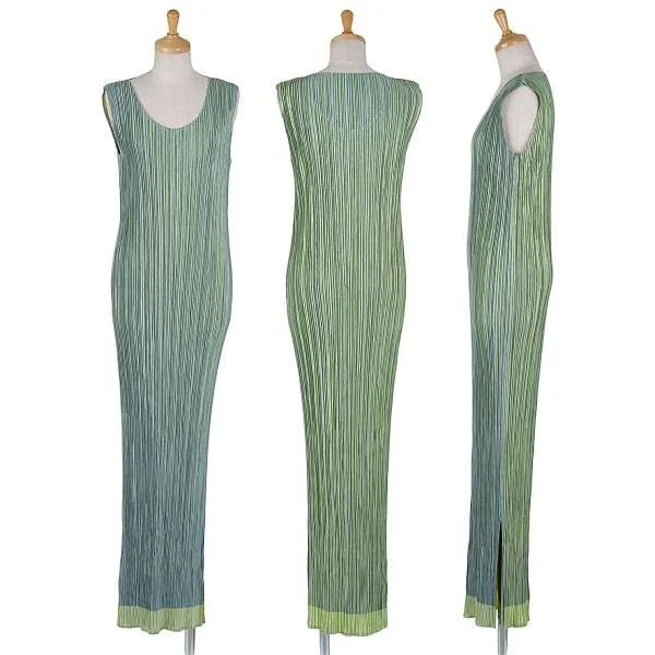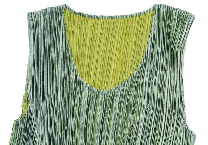 プリーツプリーズPLEATS PLEASE 配色ノースリーブスリットワンピース グリーン系5