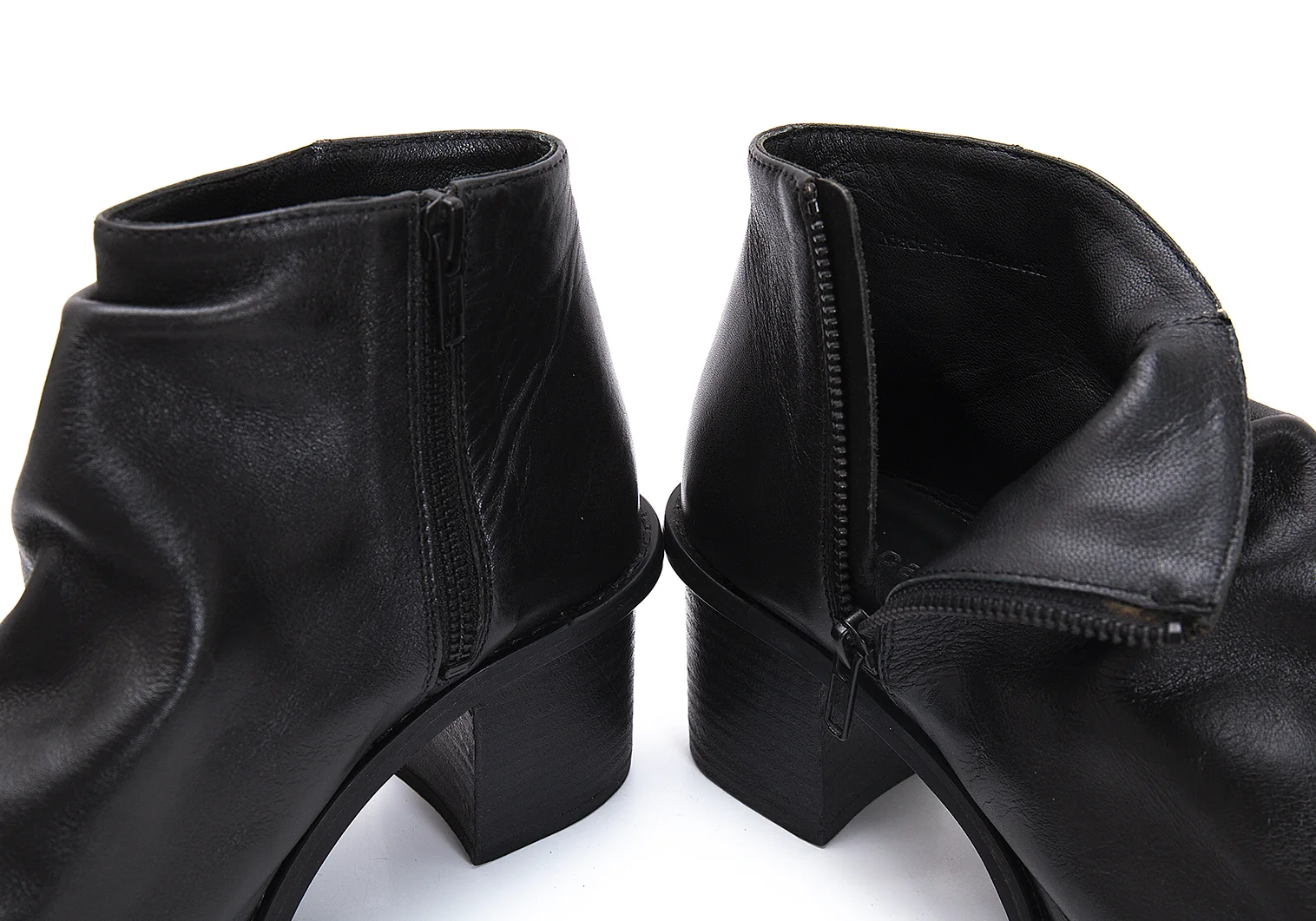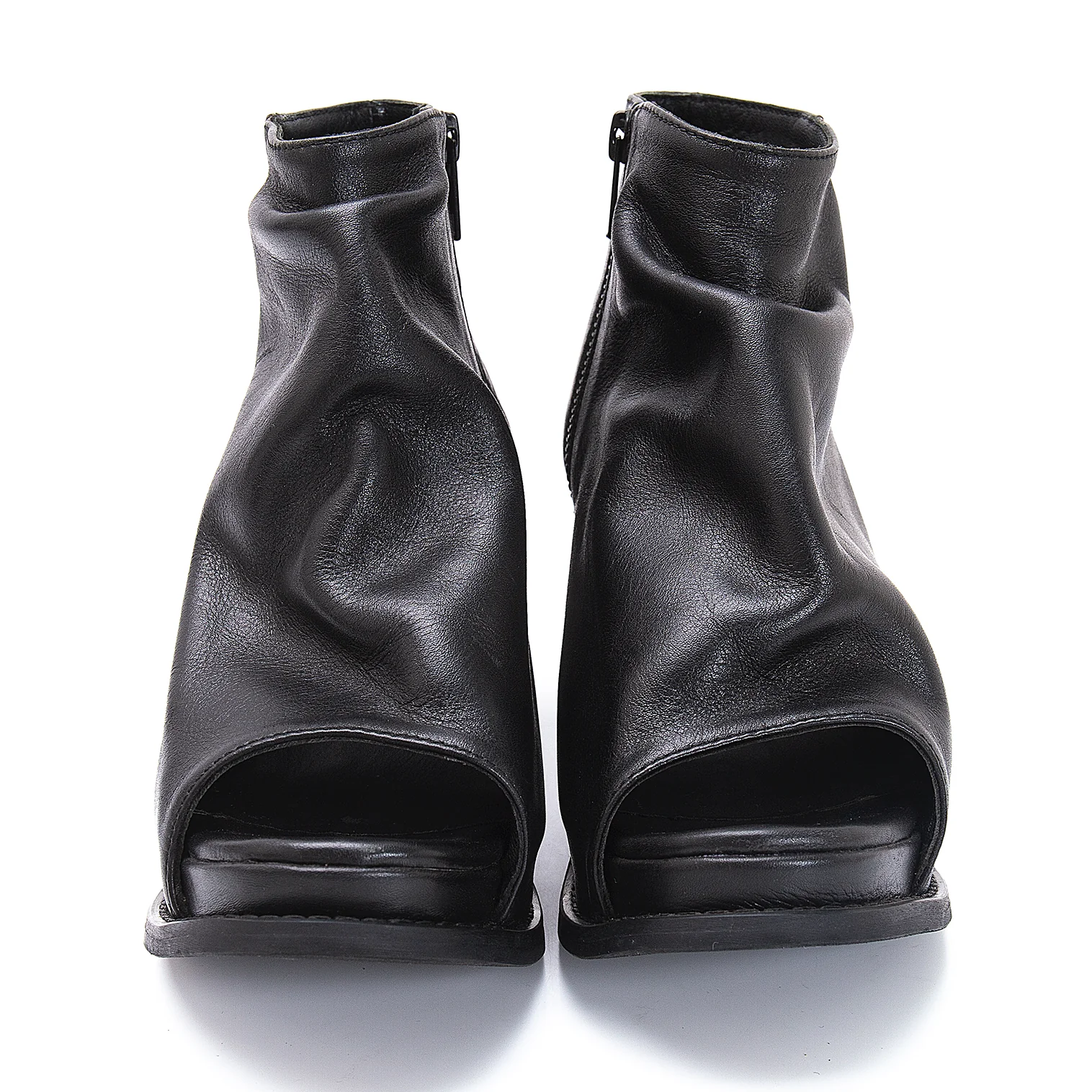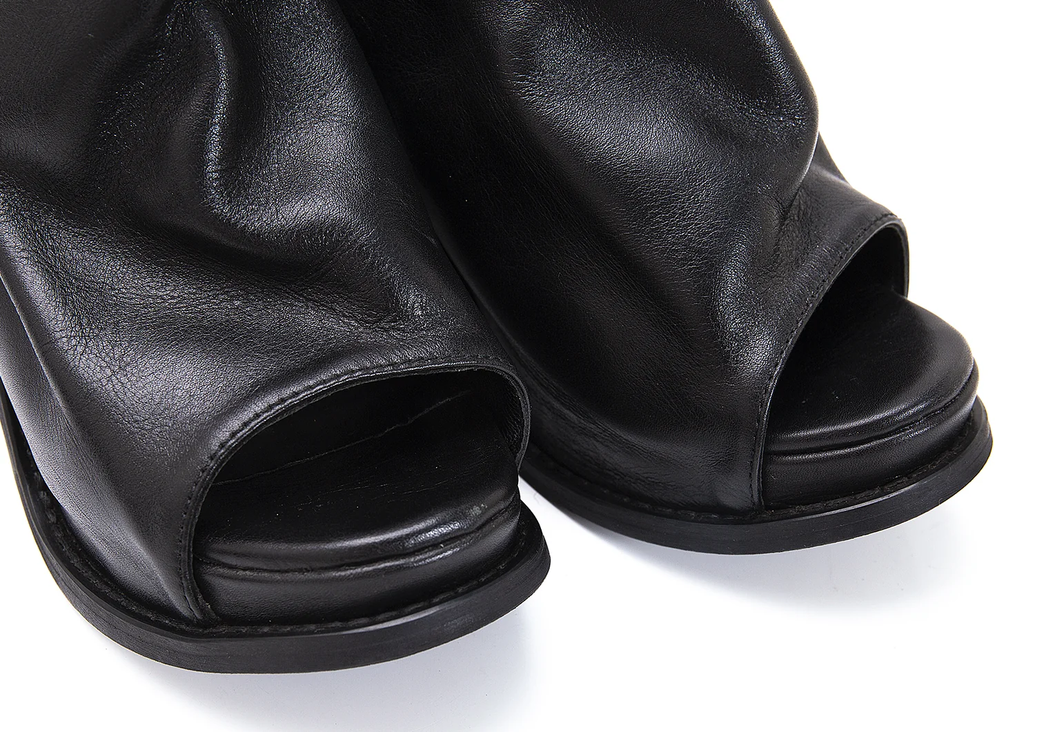 ズッカzucca レザーオープントゥショートブーツ 黒M(24位)