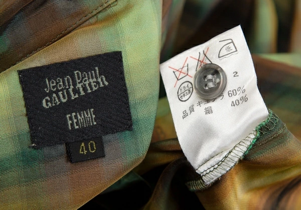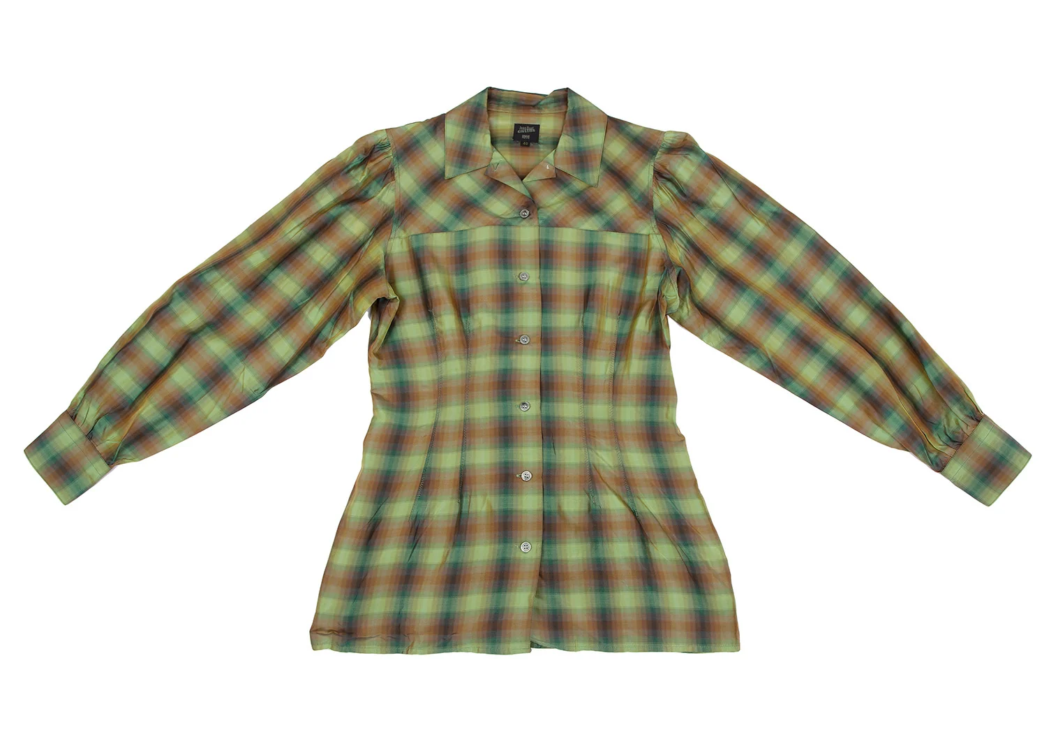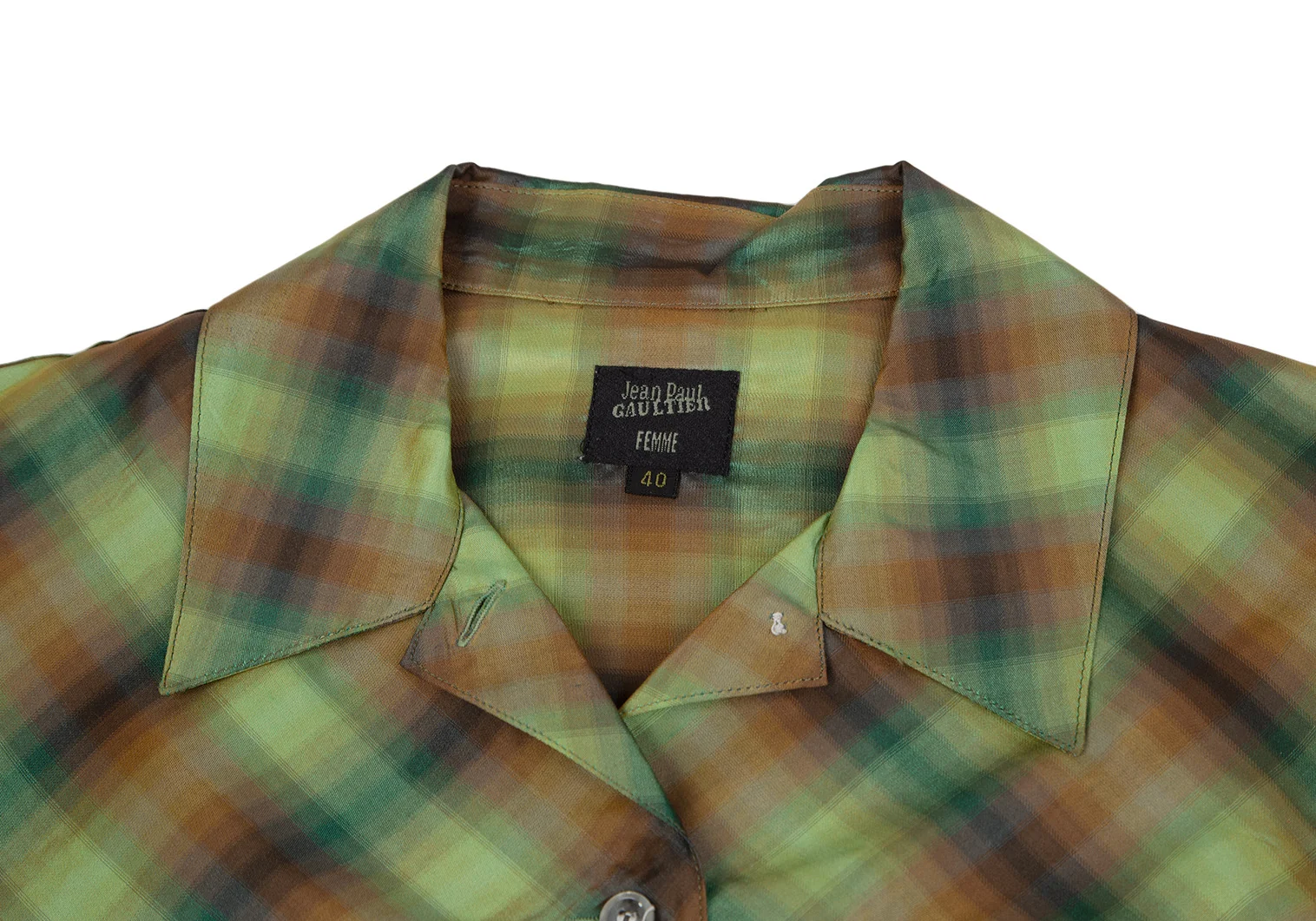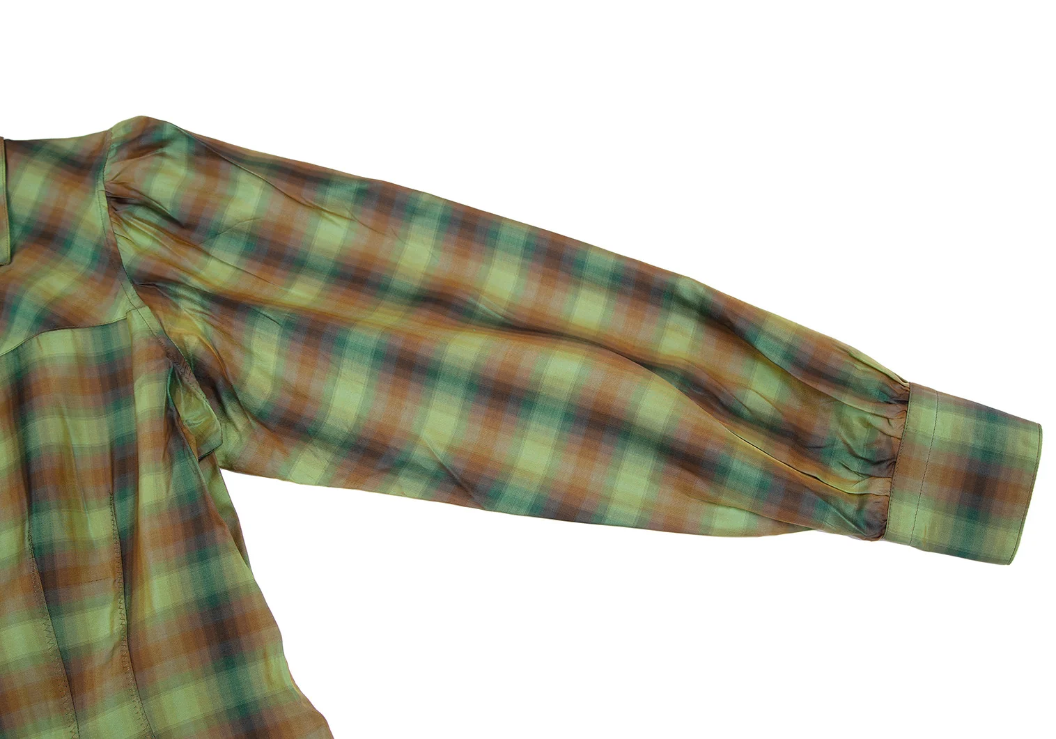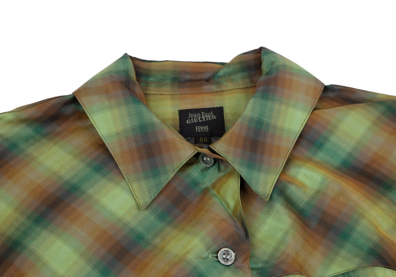 ジャンポールゴルチエ ファムJean Paul GAULTIER FEMME キュプラシルク光沢チェックシャツ 緑40