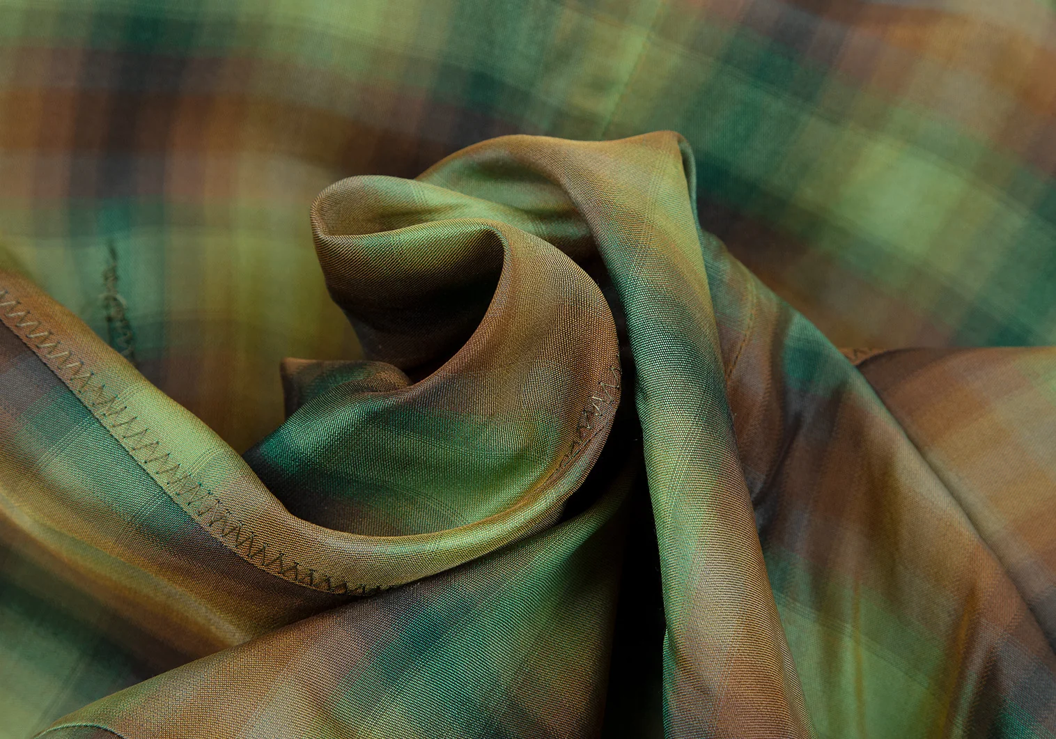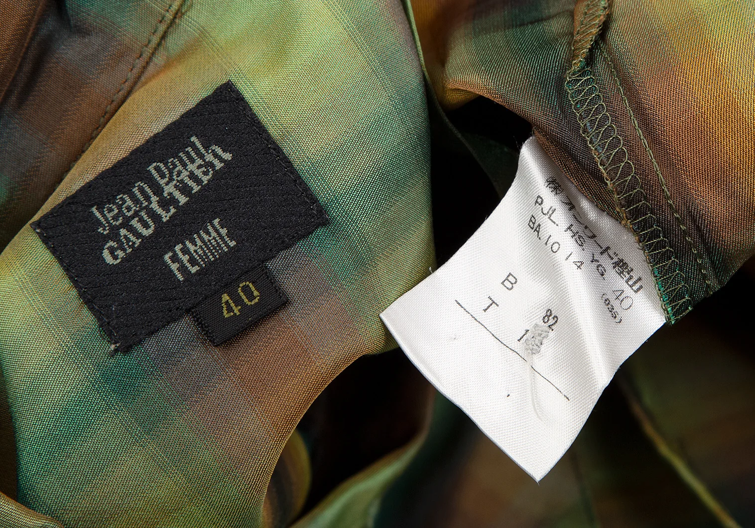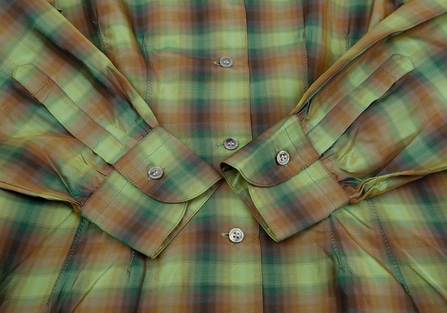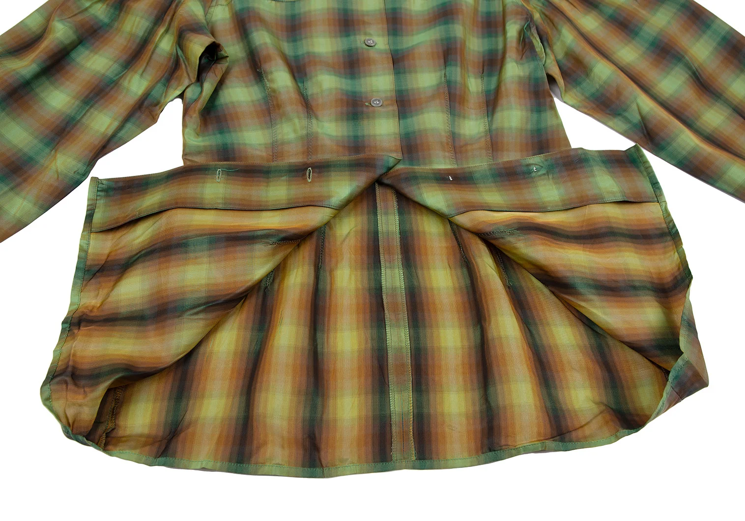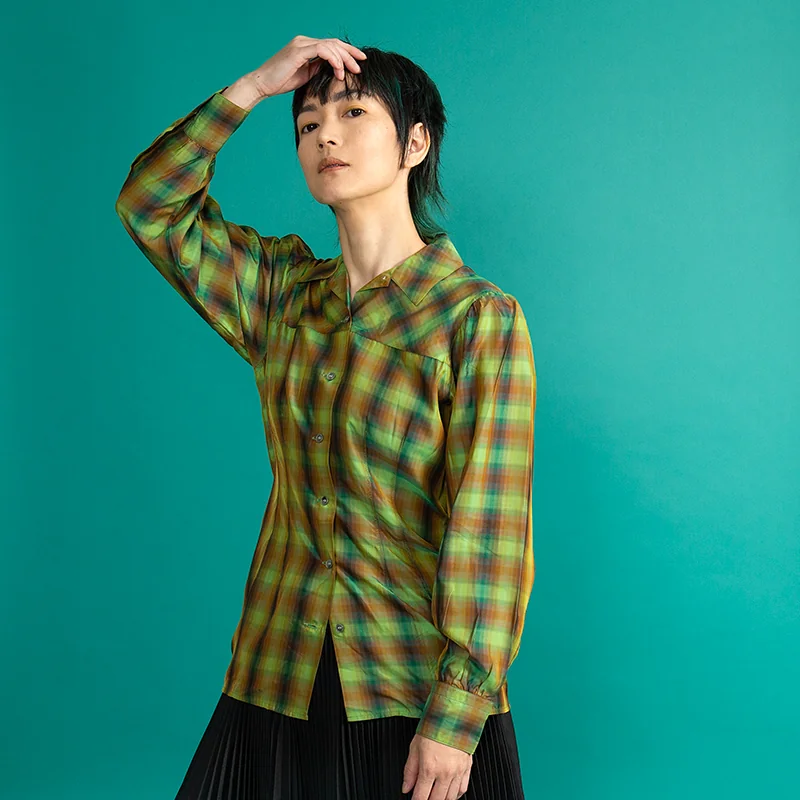 ジャンポールゴルチエ ファムJean Paul GAULTIER FEMME キュプラシルク光沢チェックシャツ 緑40