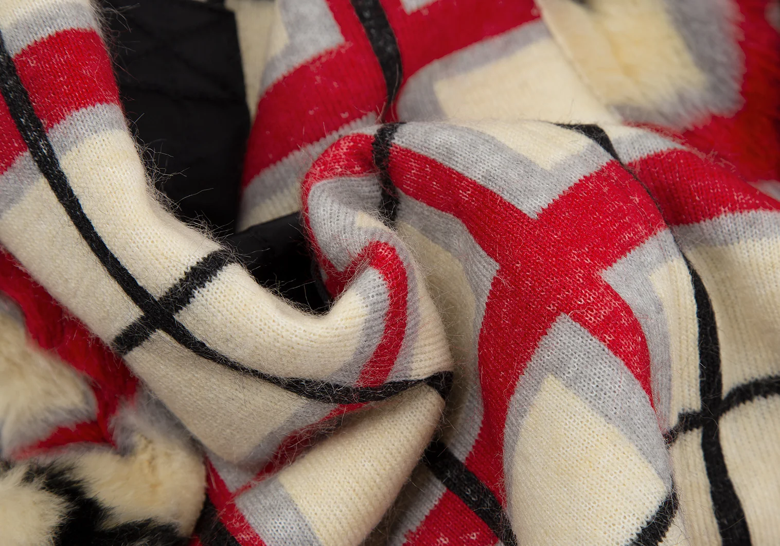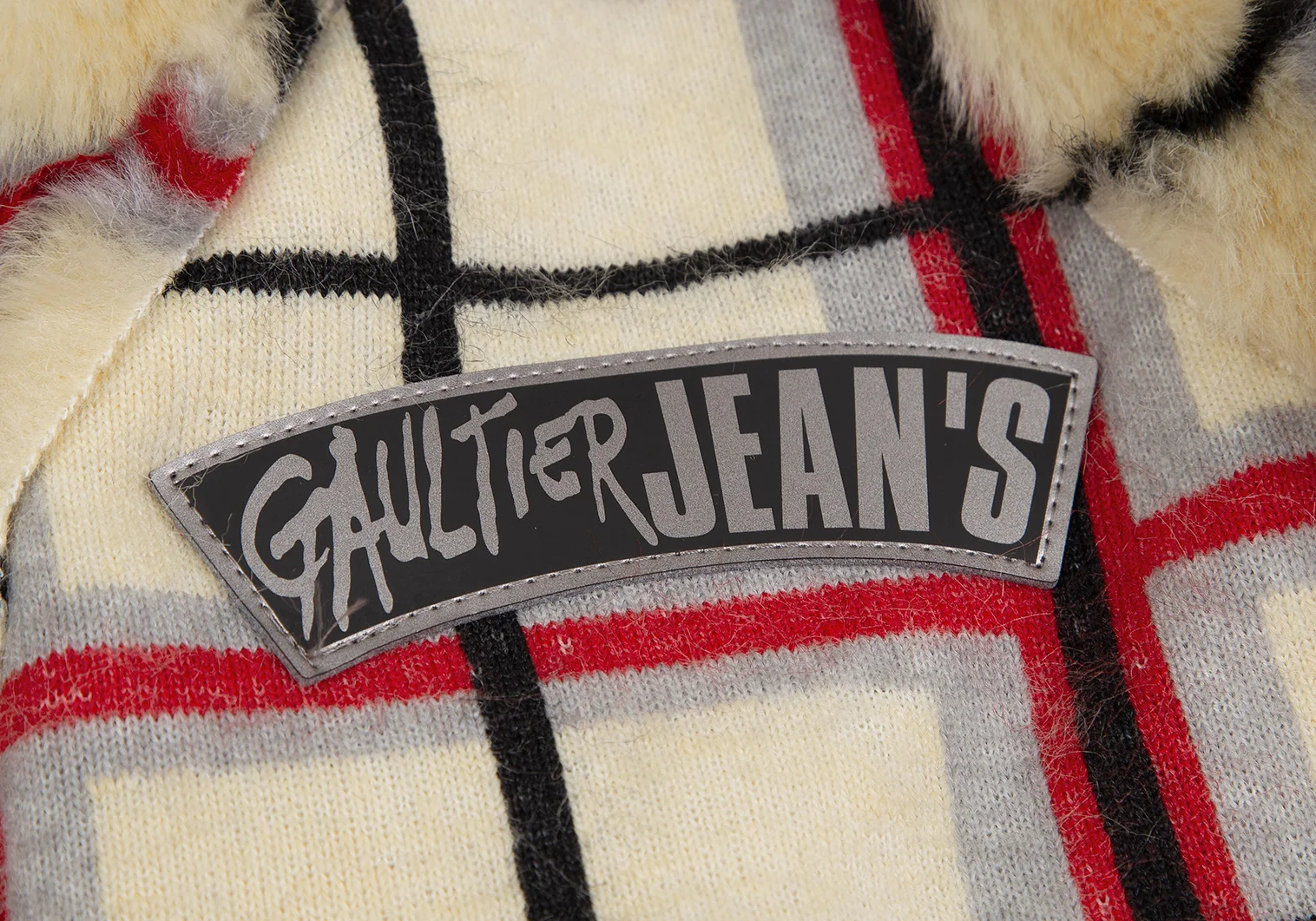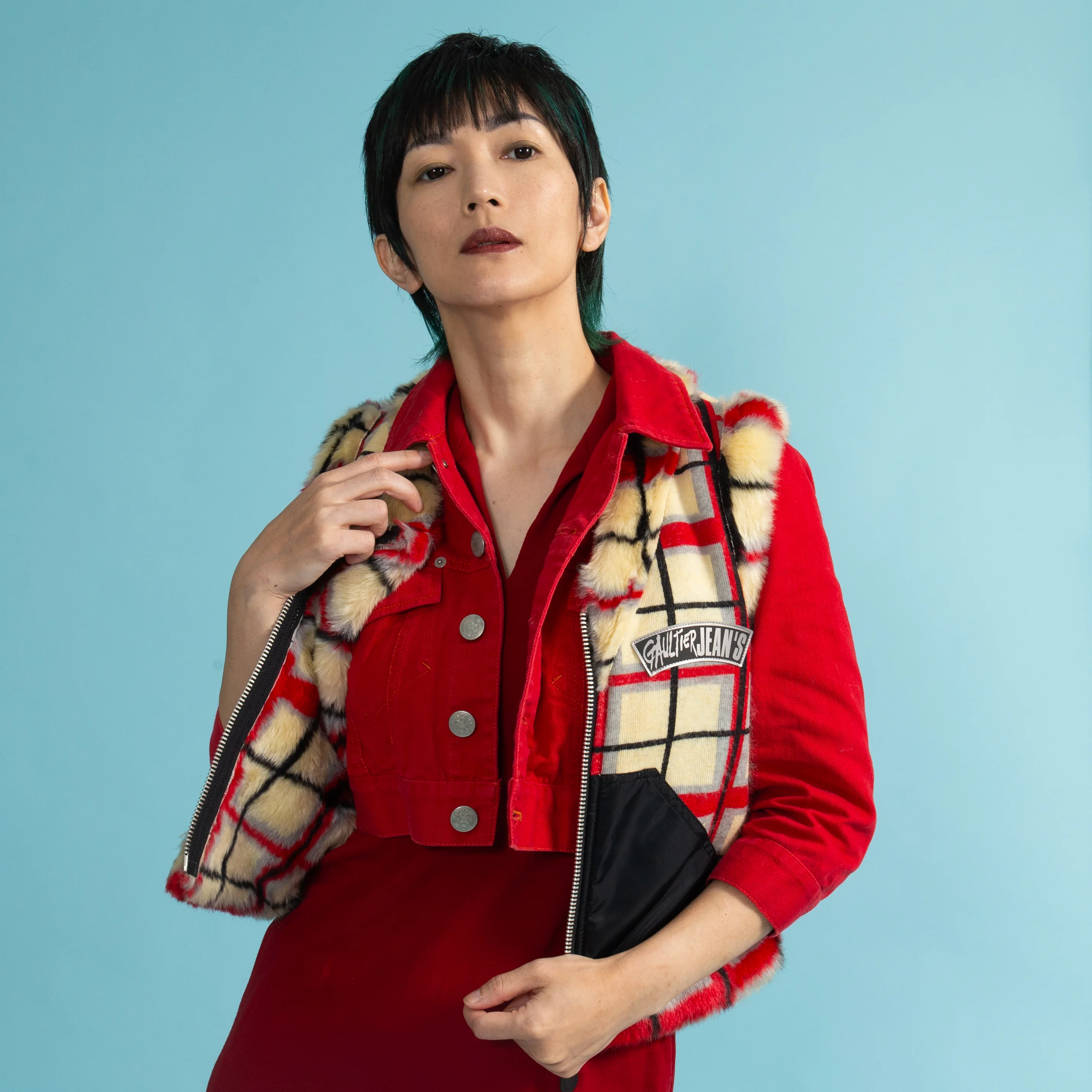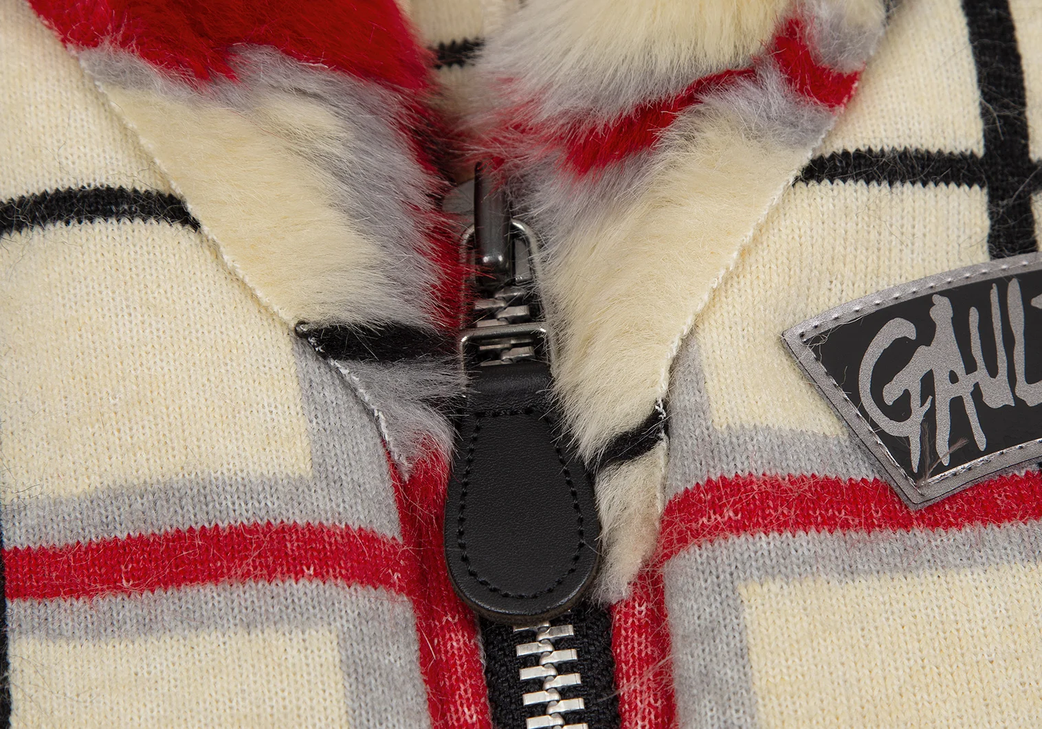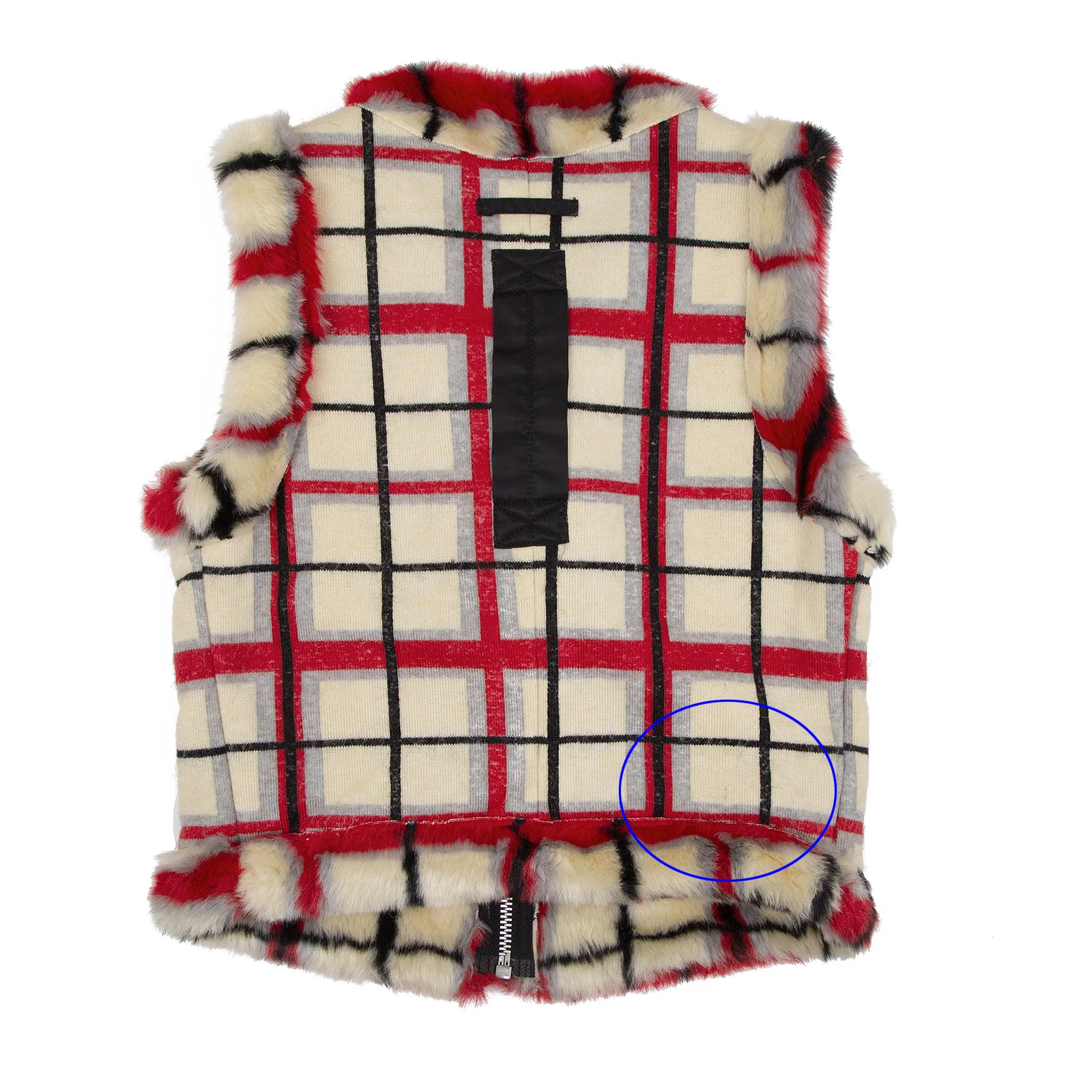 ゴルチエジーンズGAULTIER JEAN'S ファーチェックニットベスト クリーム赤黒40