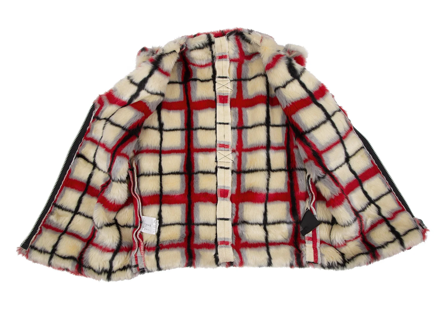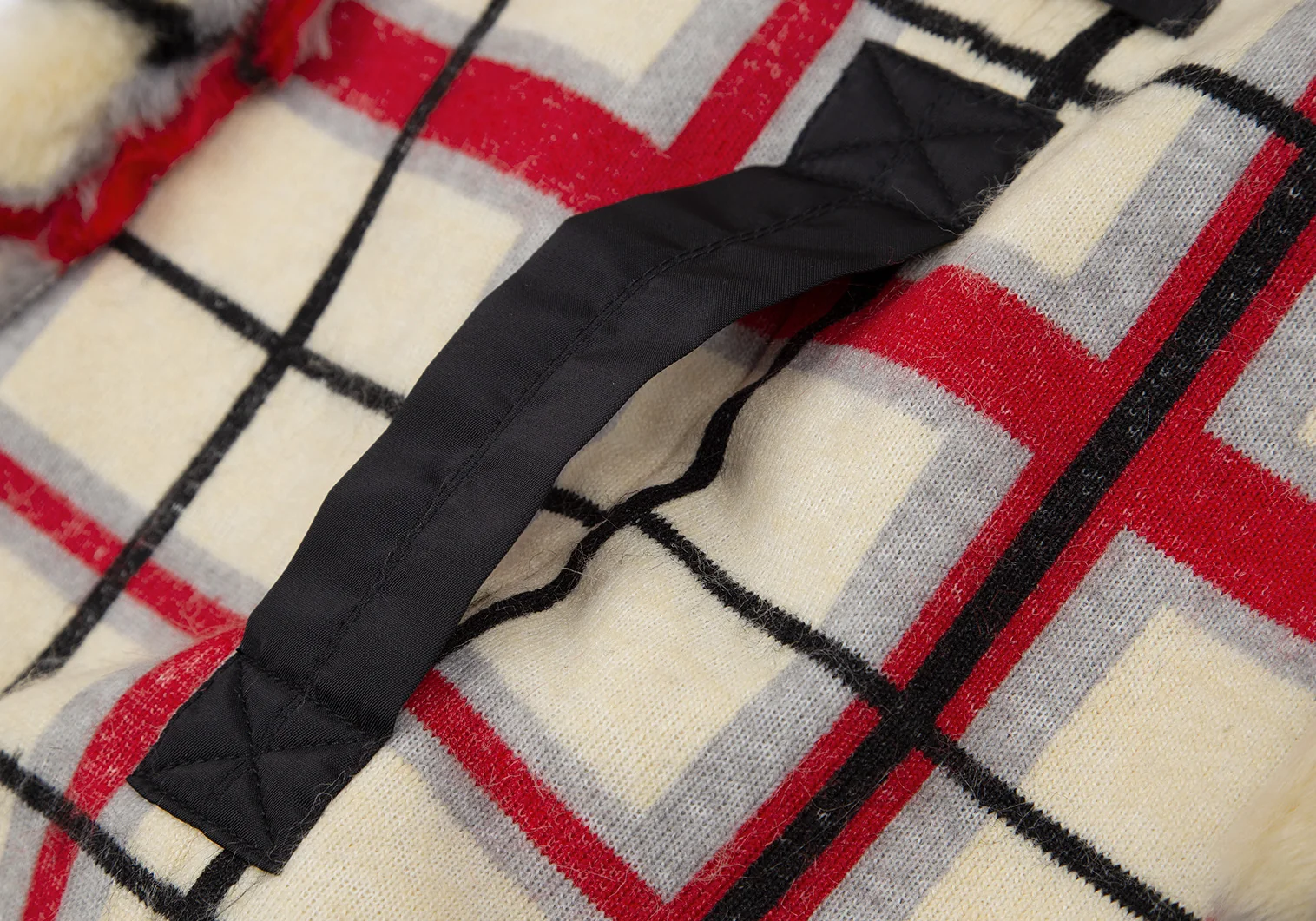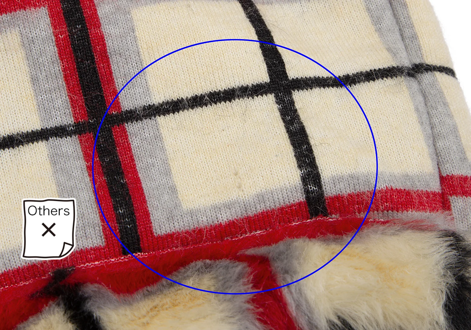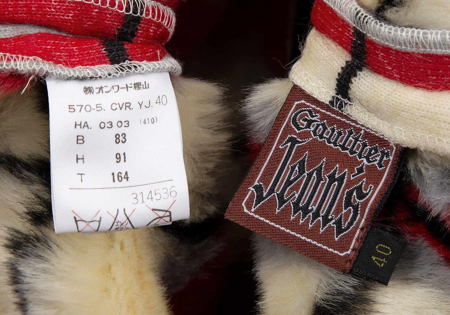 ゴルチエジーンズGAULTIER JEAN'S ファーチェックニットベスト クリーム赤黒40