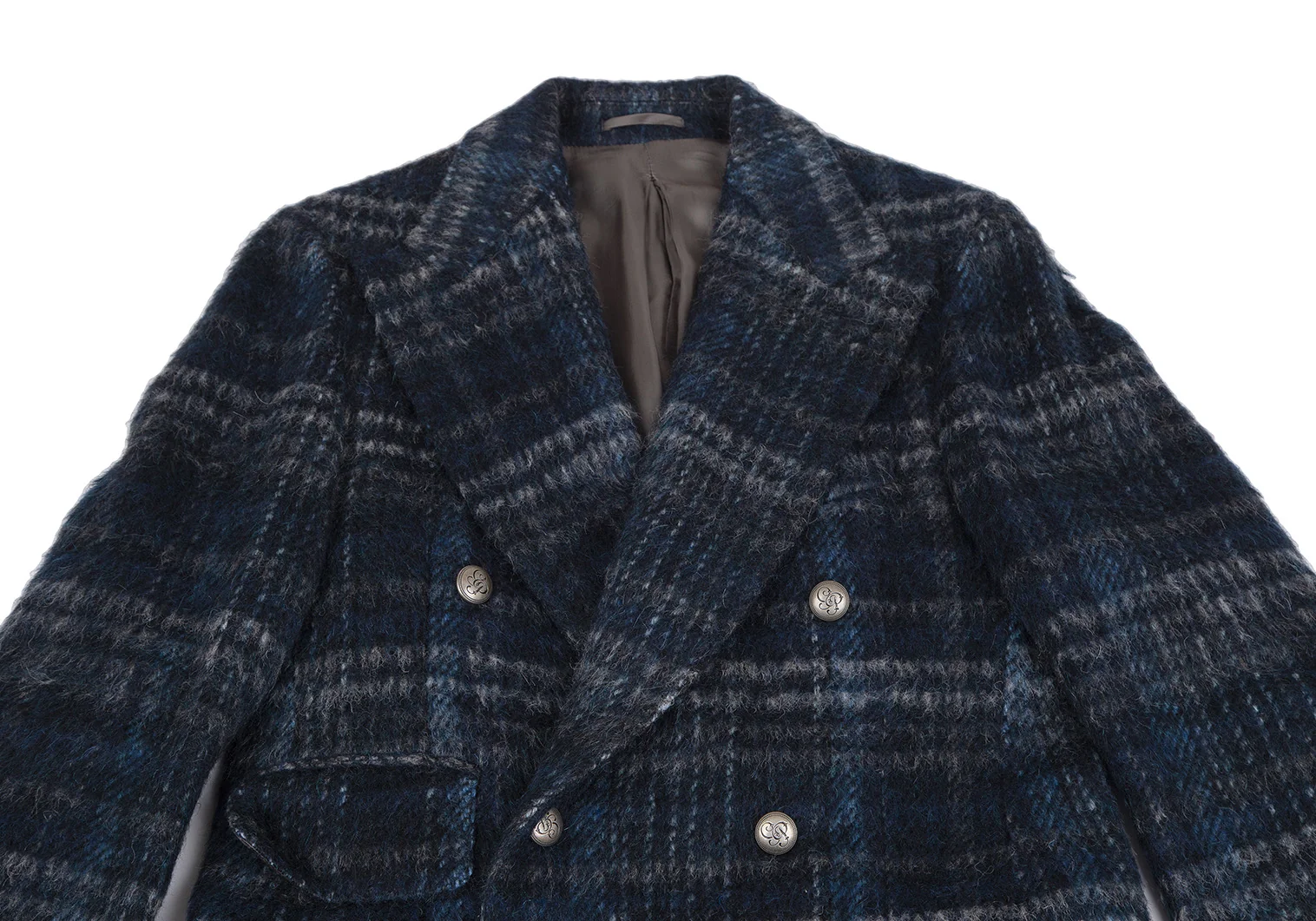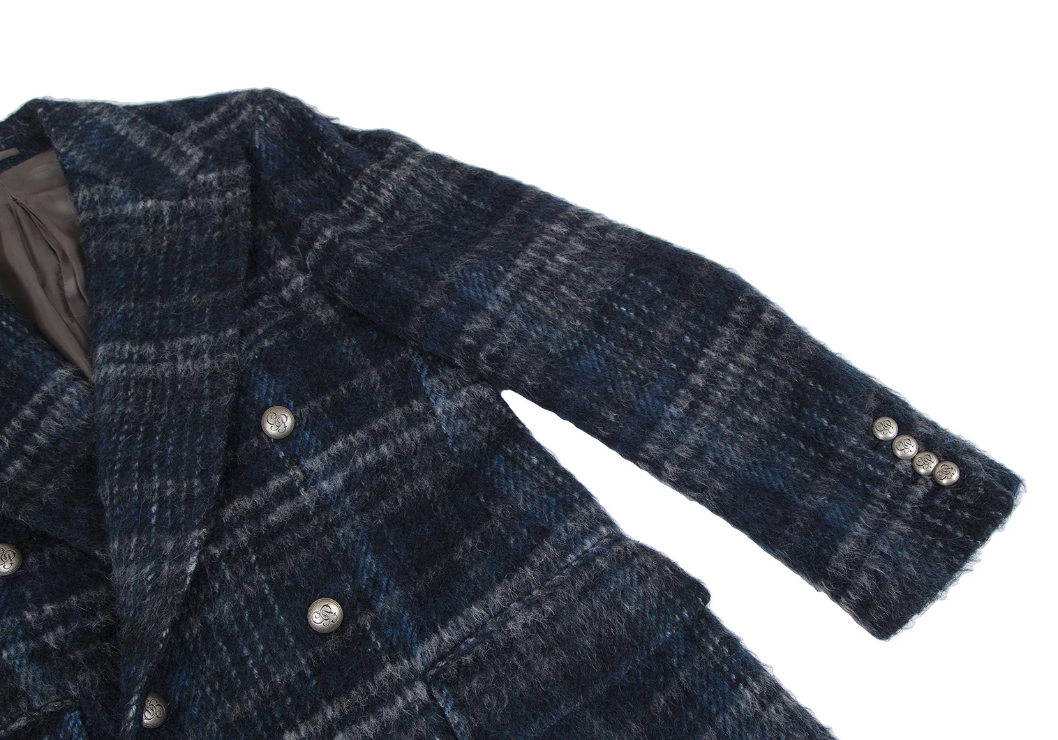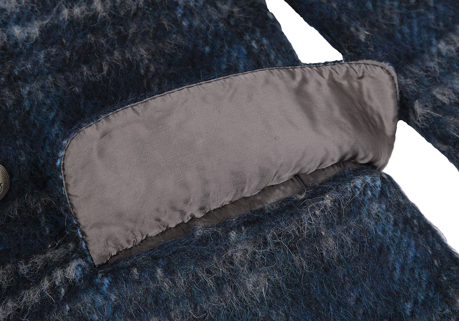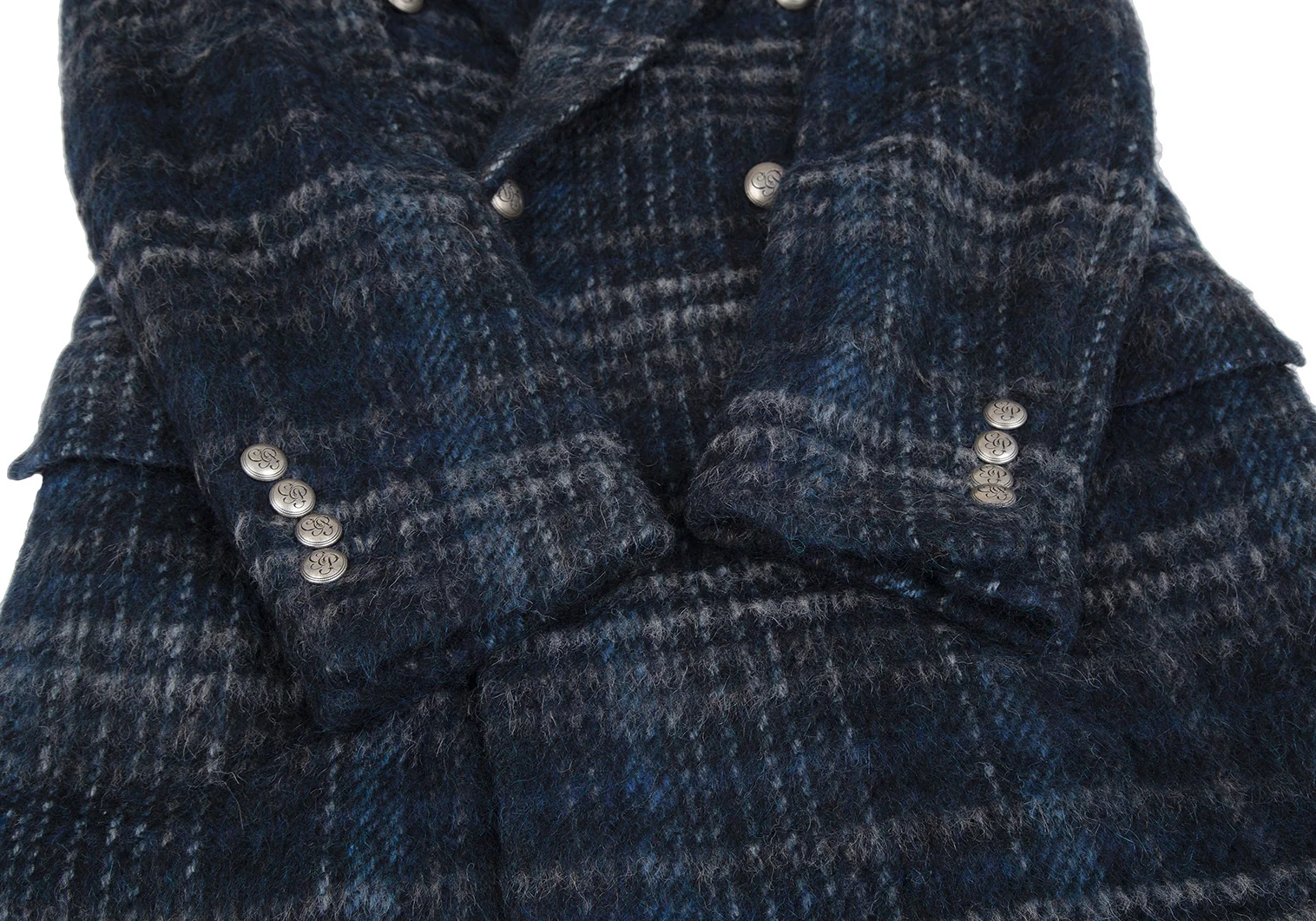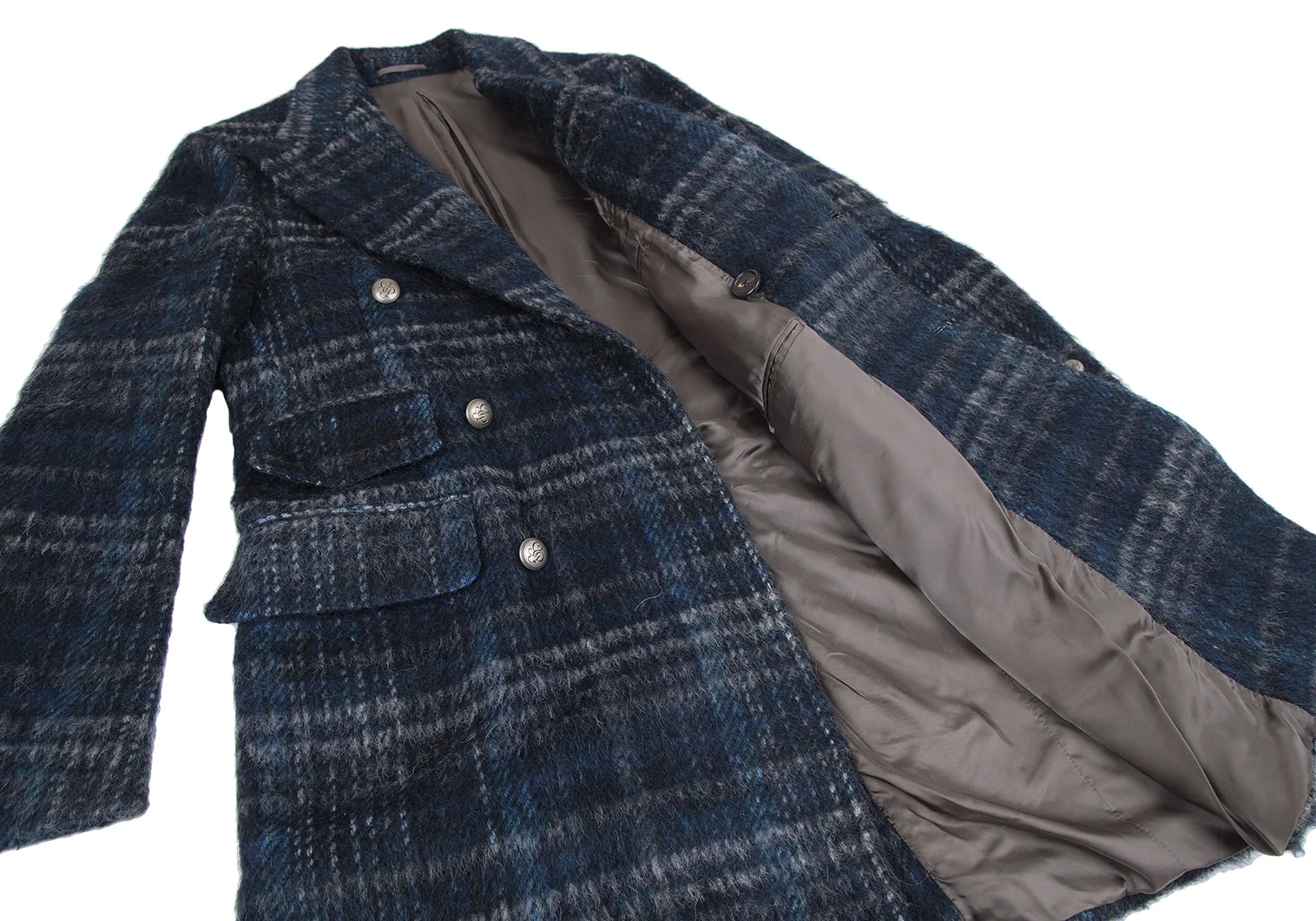 ガブリエレパジーニGABRIELE PASINI シャギーウールチェックダブルコート 青46