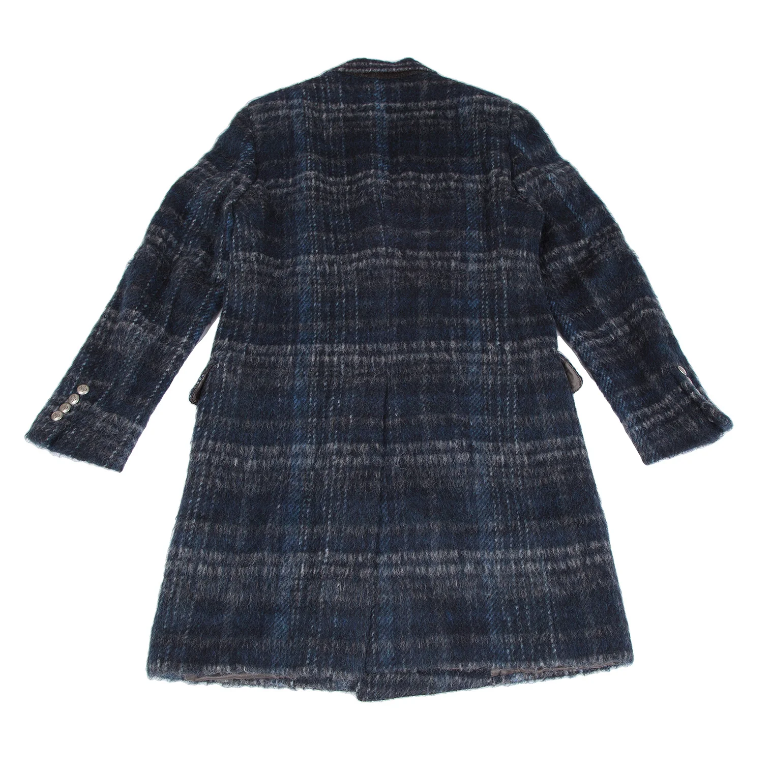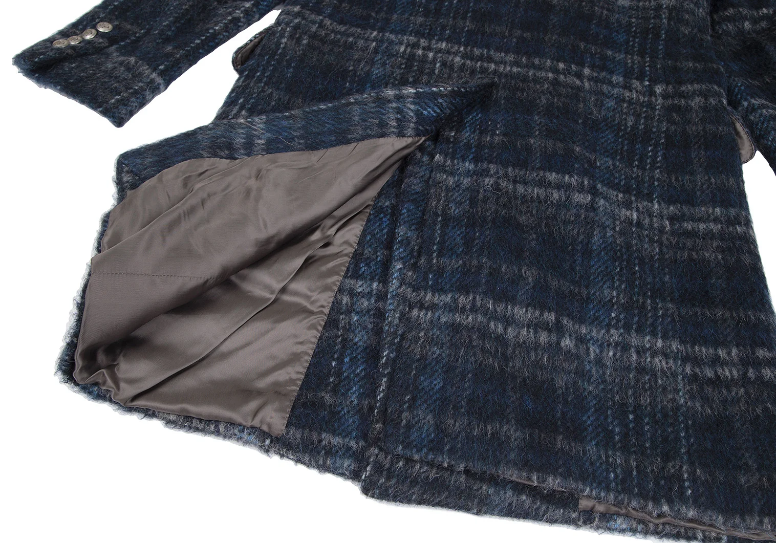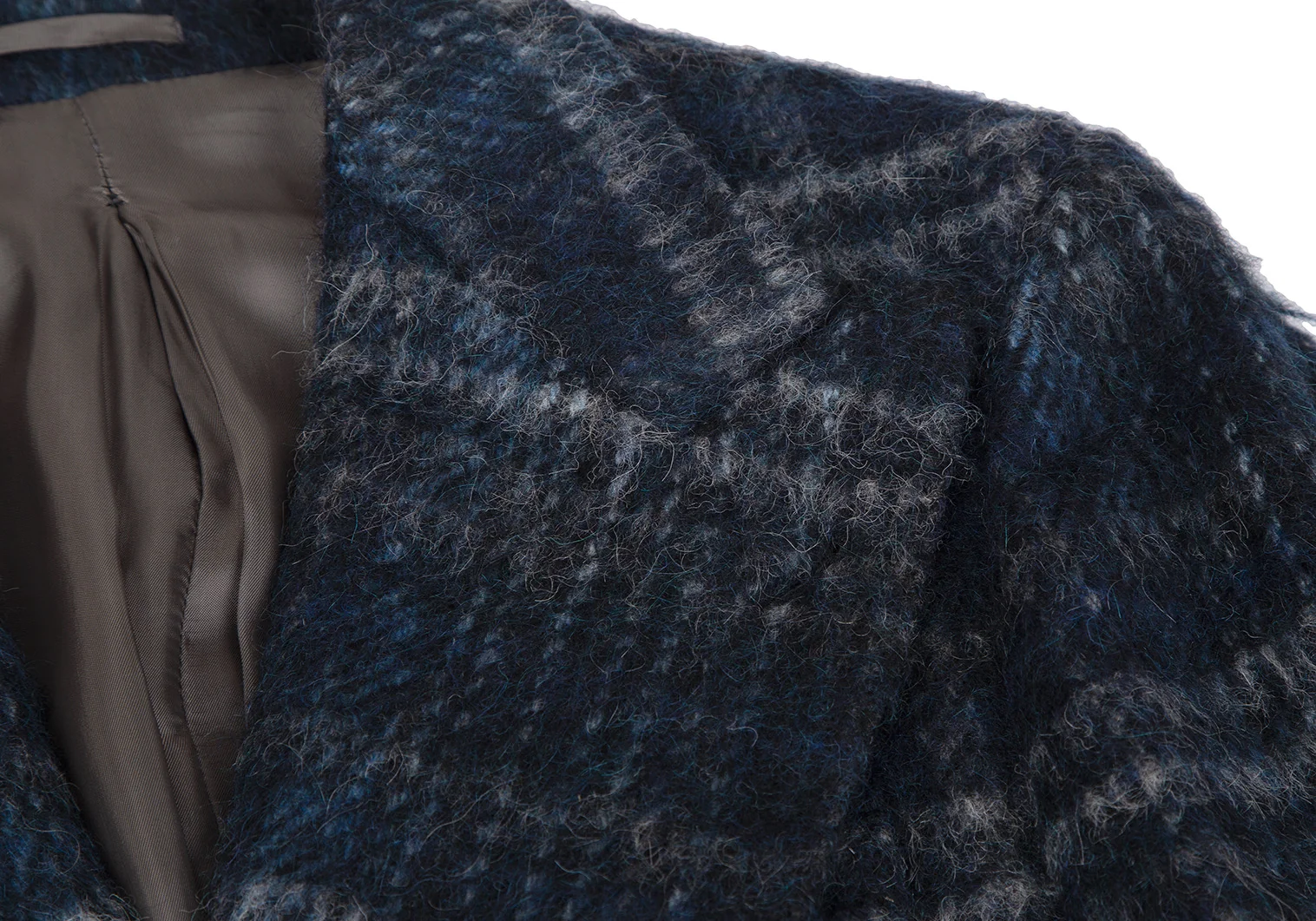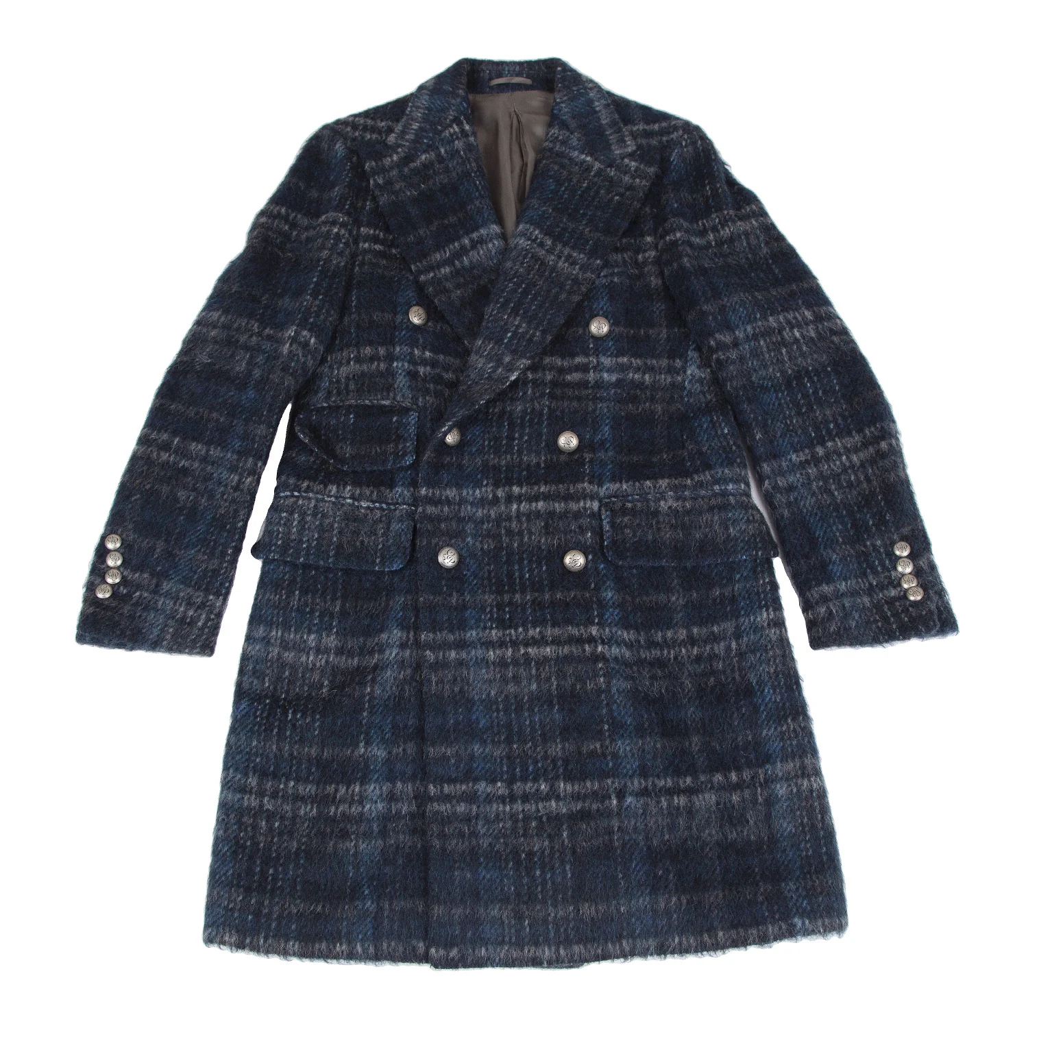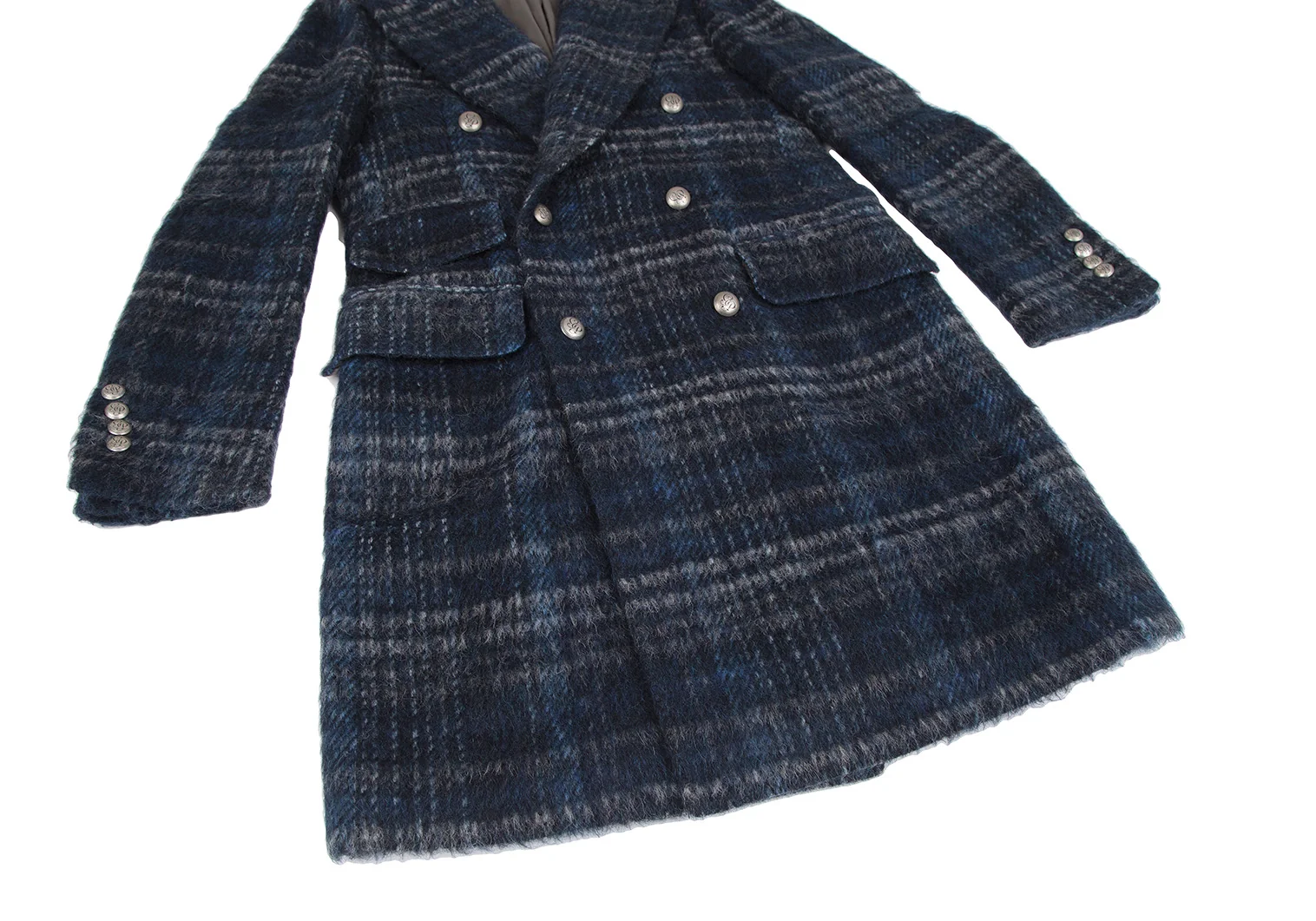 ガブリエレパジーニGABRIELE PASINI シャギーウールチェックダブルコート 青46