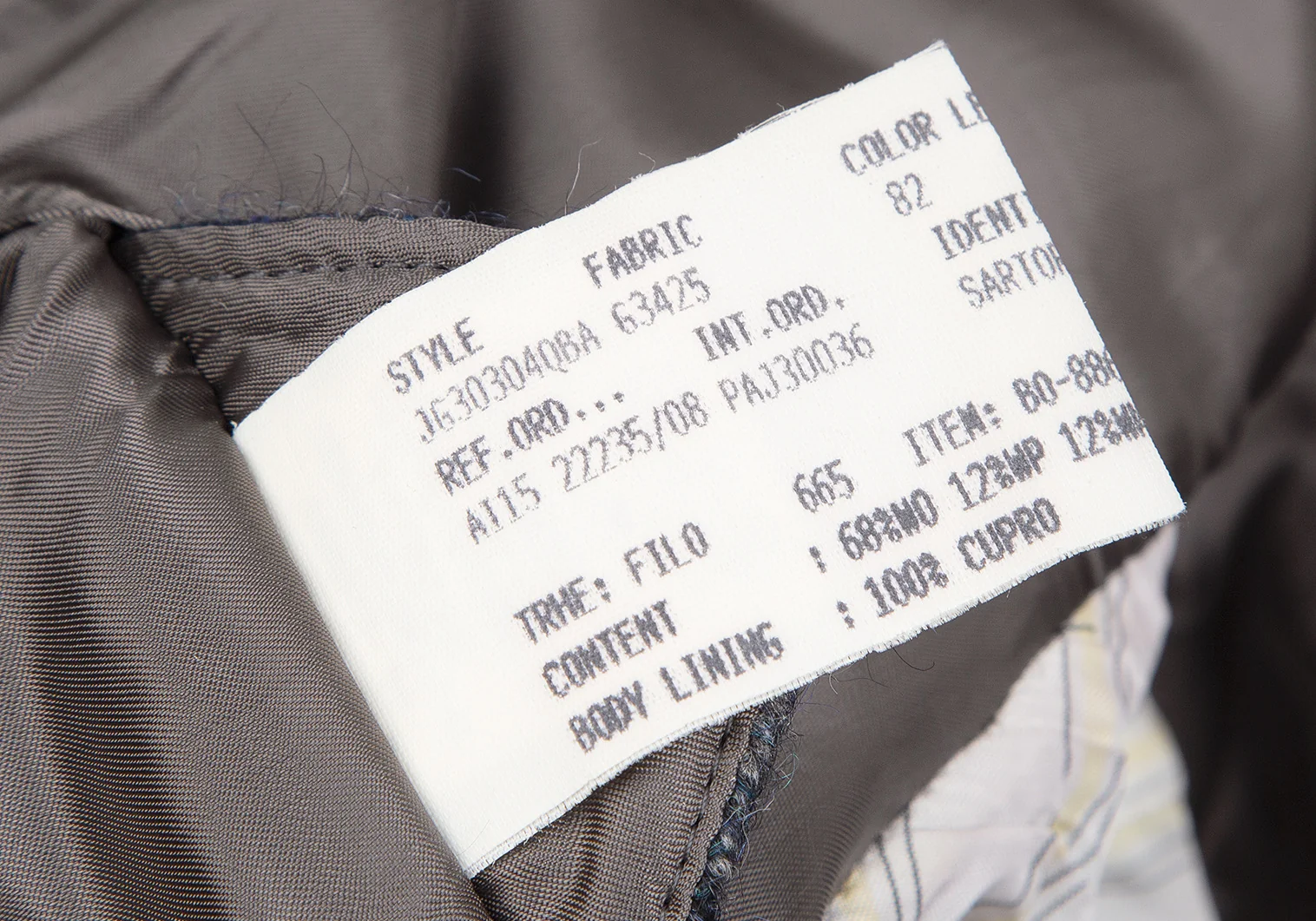 表地 ウール68% アルパカ12% モヘヤ12% ナイロン8% 裏地 キュプラ100% 袖裏地 レーヨン100%