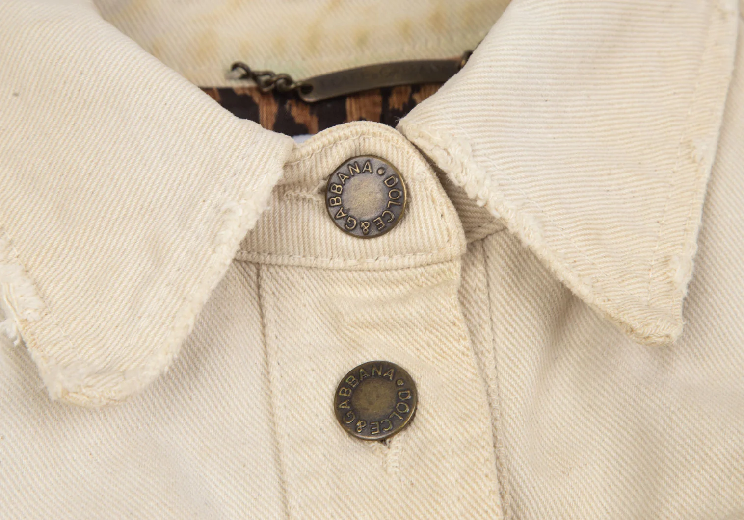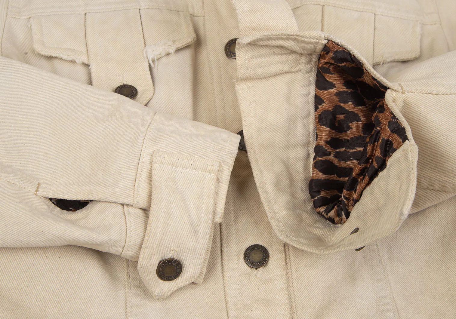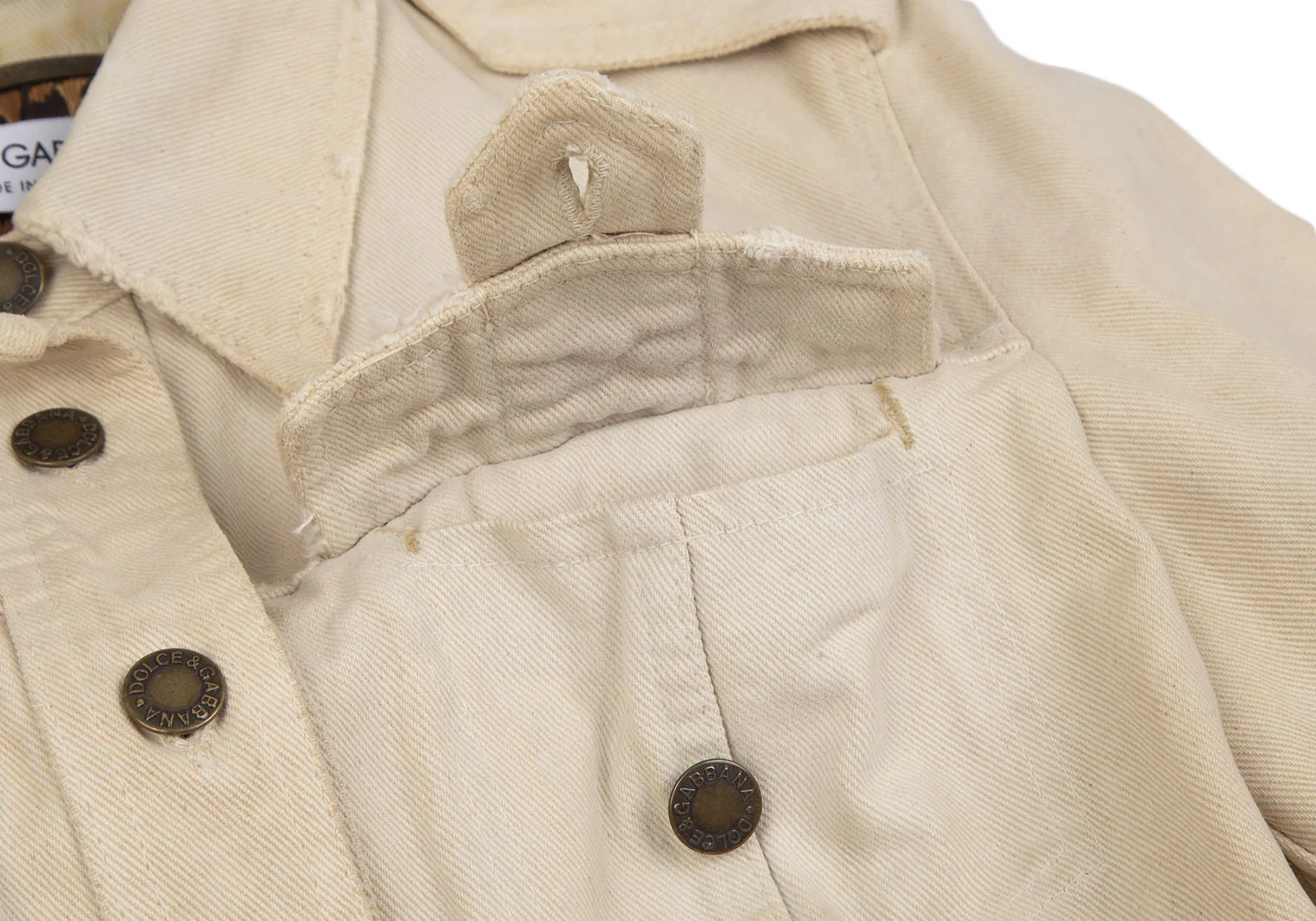 ドルチェ&ガッバーナDOLCE&GABBANA 裏レオパードダメージ加工コットンジャケット 生成り40