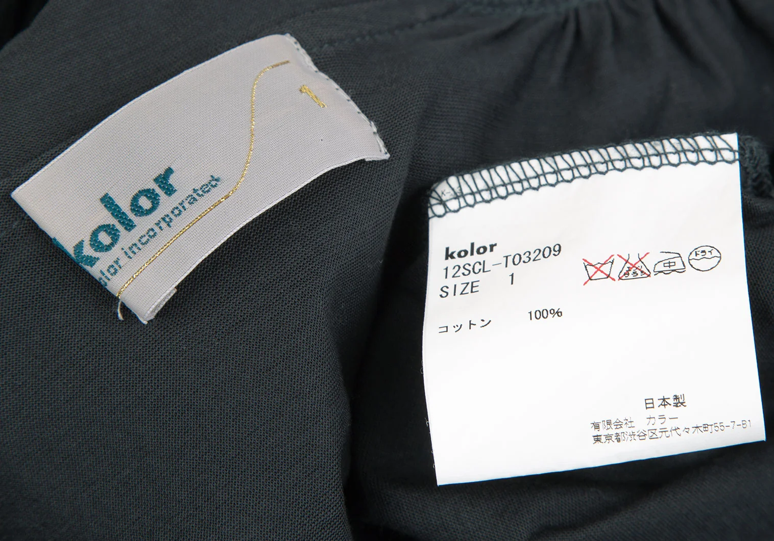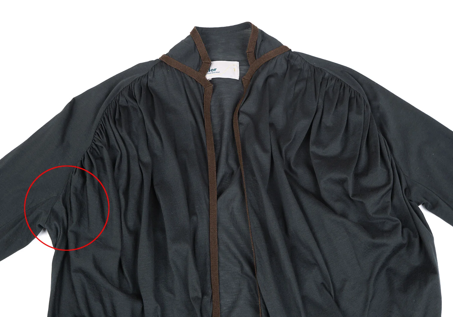 カラーkolor ショルダーギャザーボタンレスカーディガン 深緑1