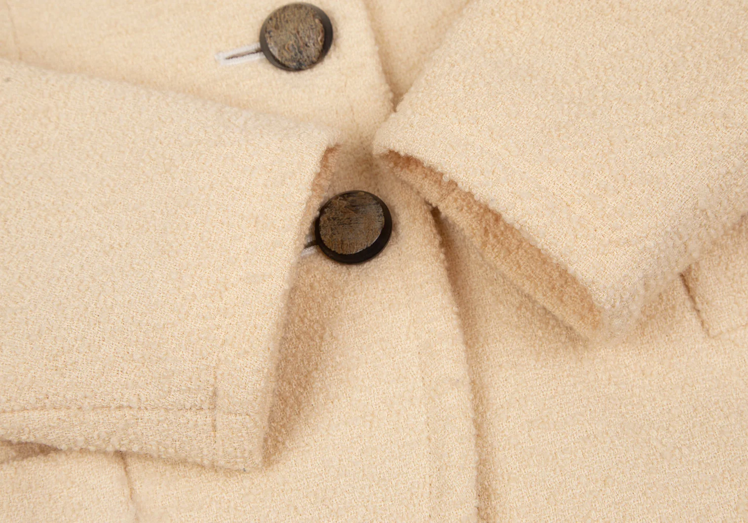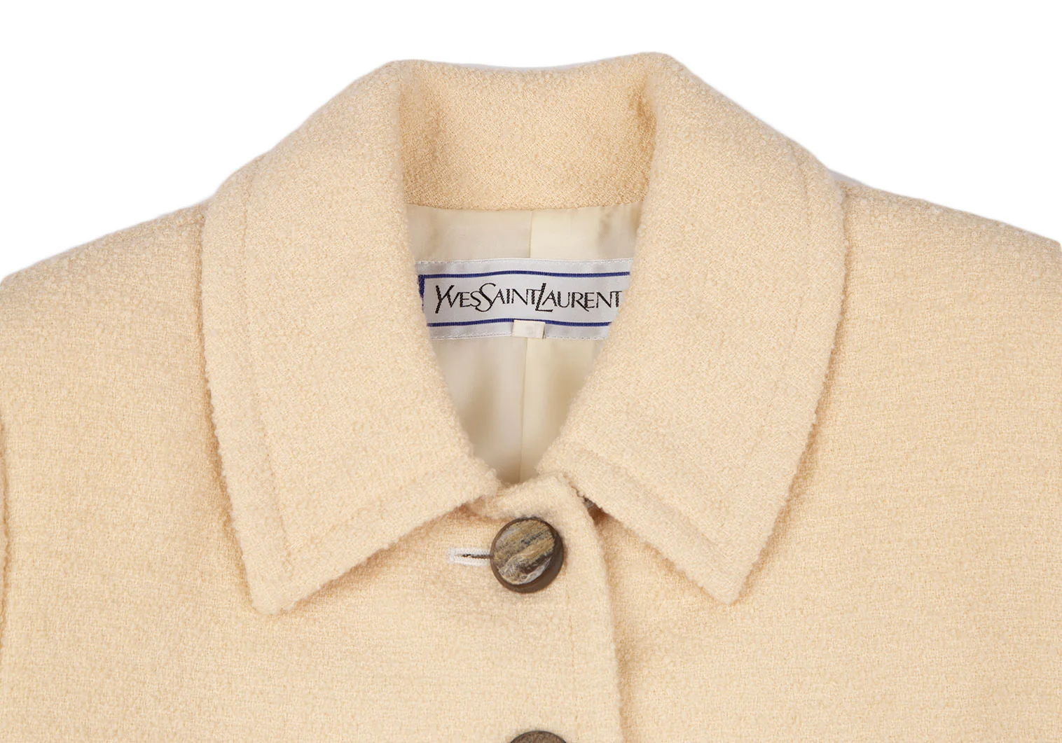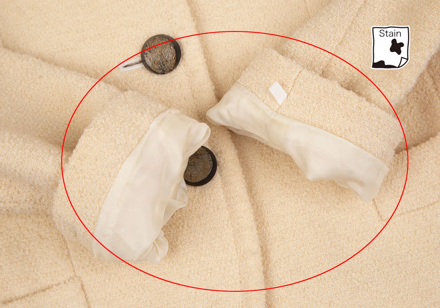 肩パッドあり。袖裏・裏脇下にシミ、裏地首元に薄汚れがあります(写真参照)。その他目立ったシミ、汚れ、ほつれ等はありません。クリーニング済み