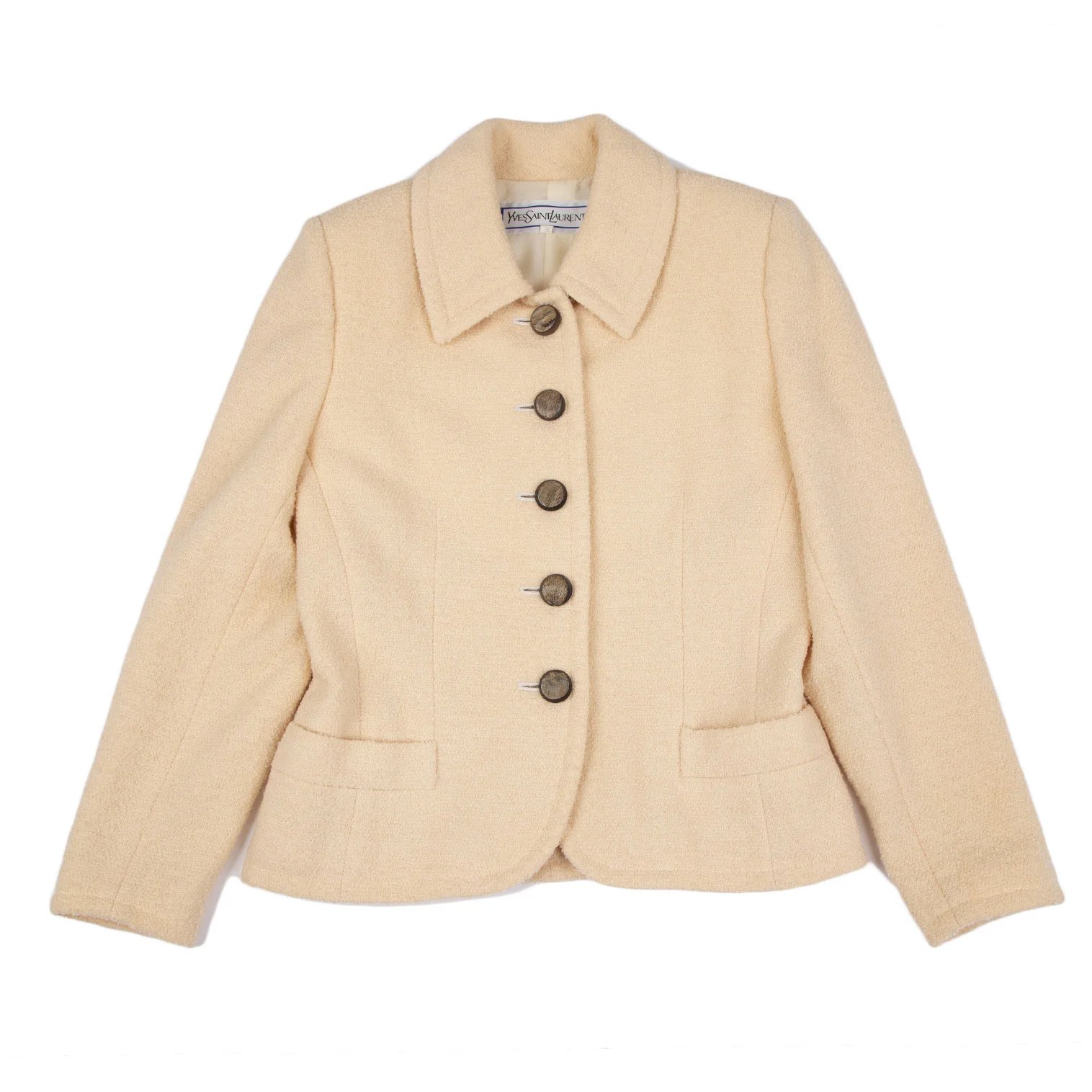 イヴサンローランYves Saint Laurent ボタンデザインツイードシングルジャケット ピンクベージュS