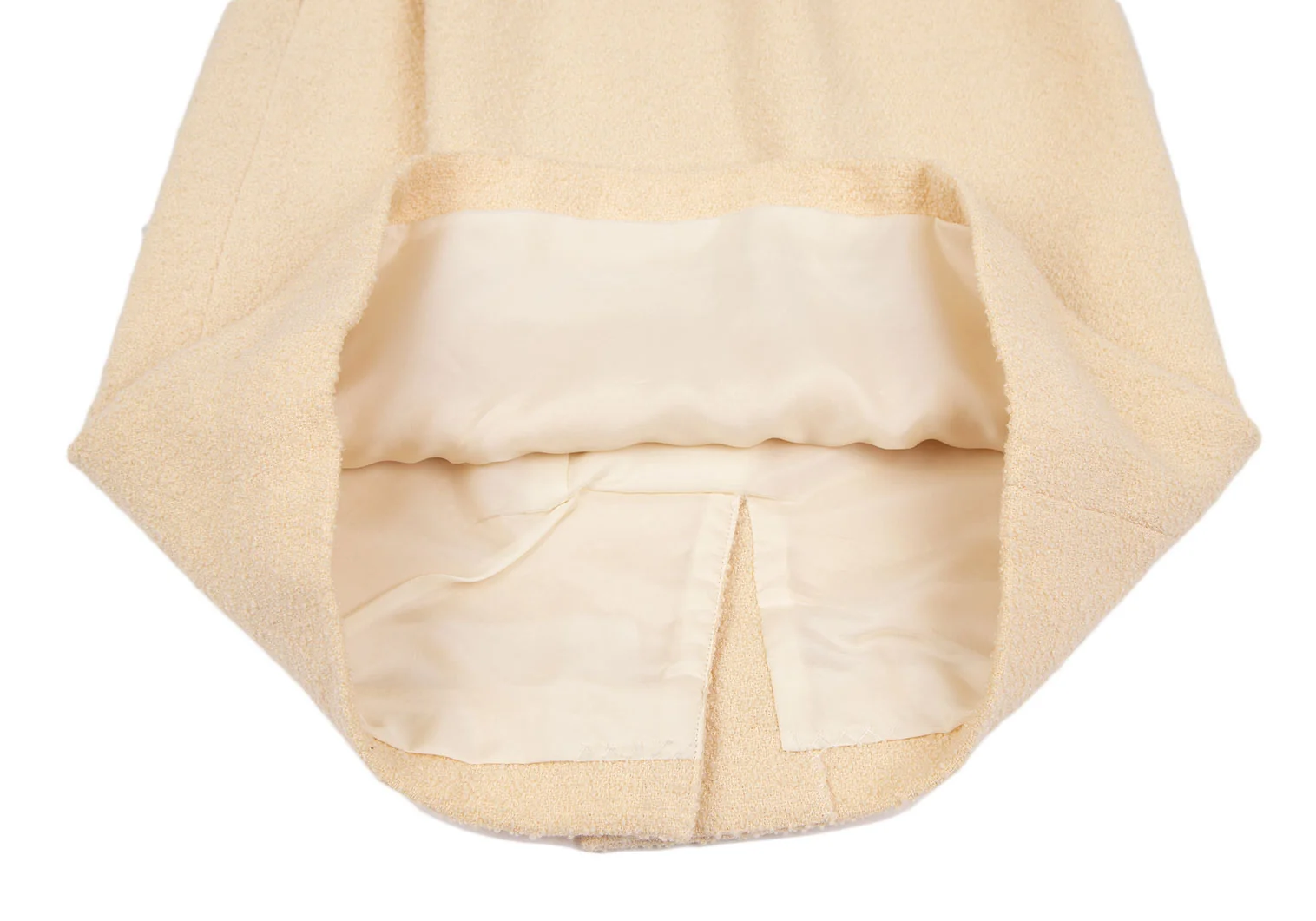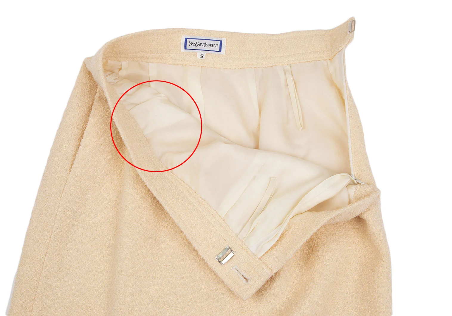 ウエスト裏地に薄汚れ、スリット裏地にダメージがあります(写真参照)。その他目立ったシミ、汚れ、ほつれ等なくいい状態です。クリーニング済み