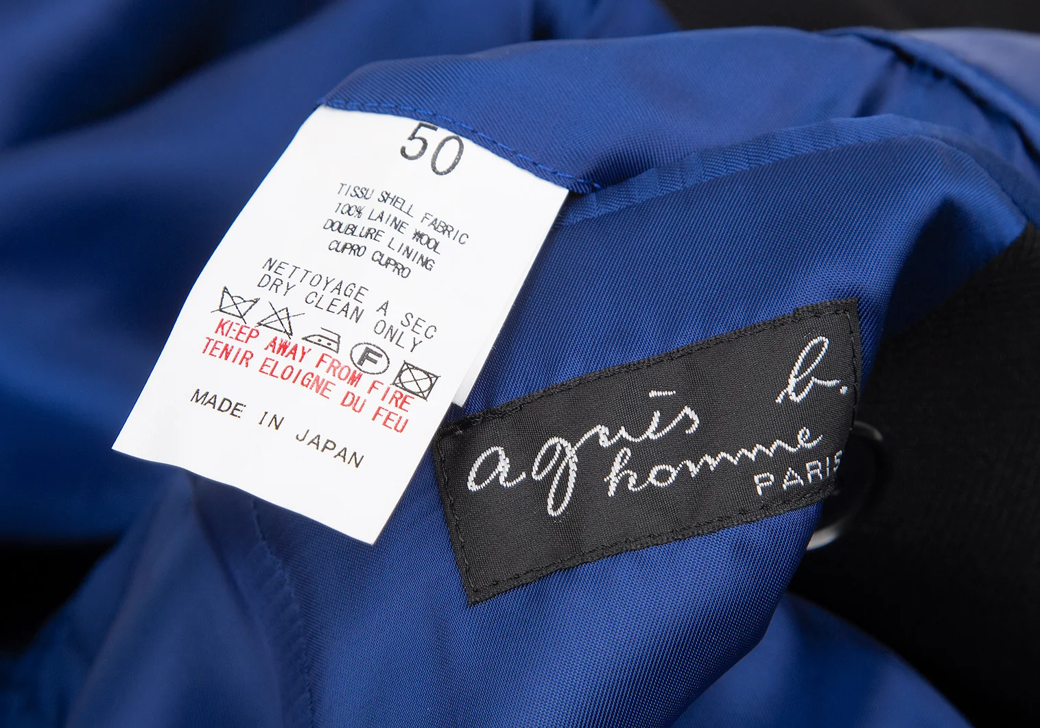 アニエスベーオムagnes b. homme ウールサージシャドーヘリンボーンナポレオンジャケット 黒50