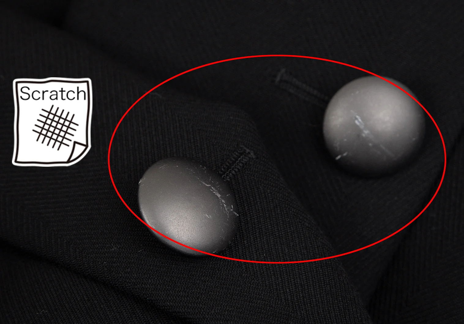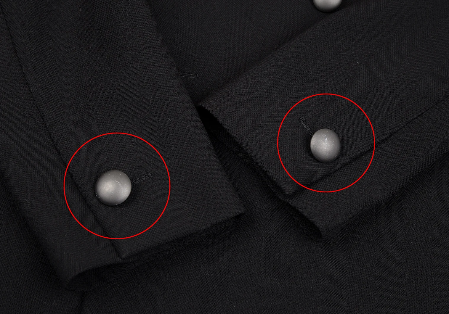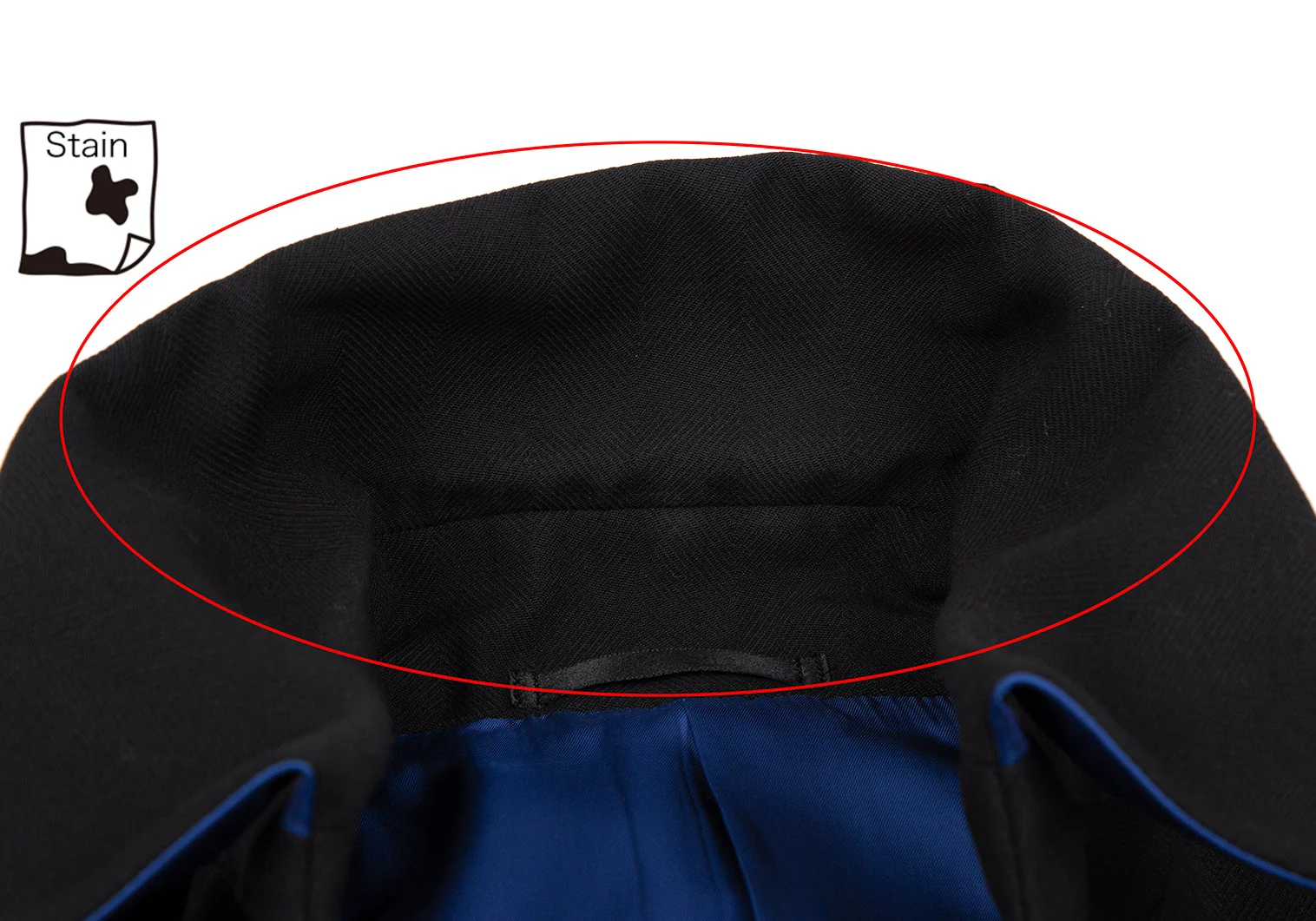 肩パッドあり。首元に薄汚れ、袖先ボタンにスレがあります(写真参照)その他目立ったシミ、汚れ、ほつれ等なくいい状態です。クリーニング済み