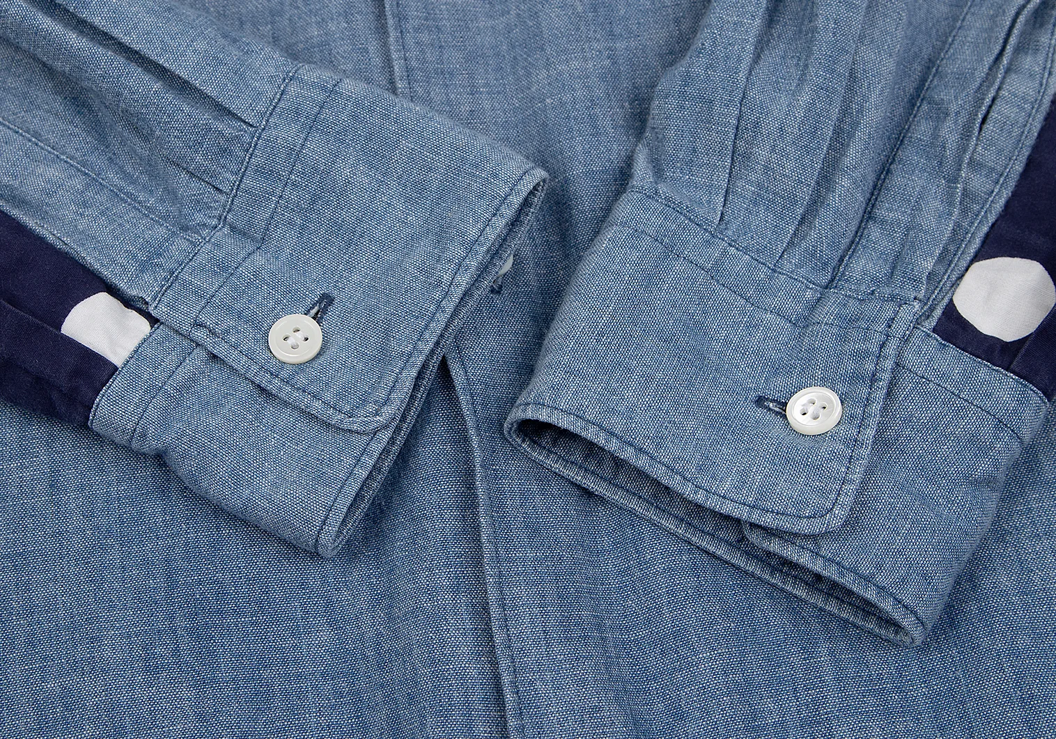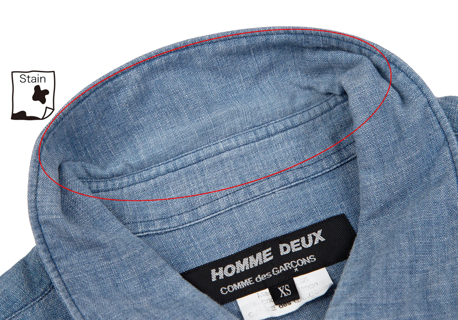 コムデギャルソン オムドゥCOMME des GARCONS HOMME DEUX 袖ドットラインシャンブレーシャツ 水色XS