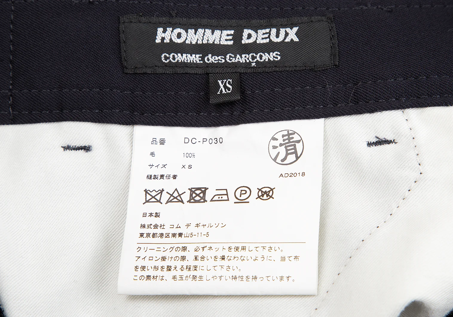 コムデギャルソン オムドゥCOMME des GARCONS HOMME DEUX ウールギャバサイドシンチパンツ 紺XS