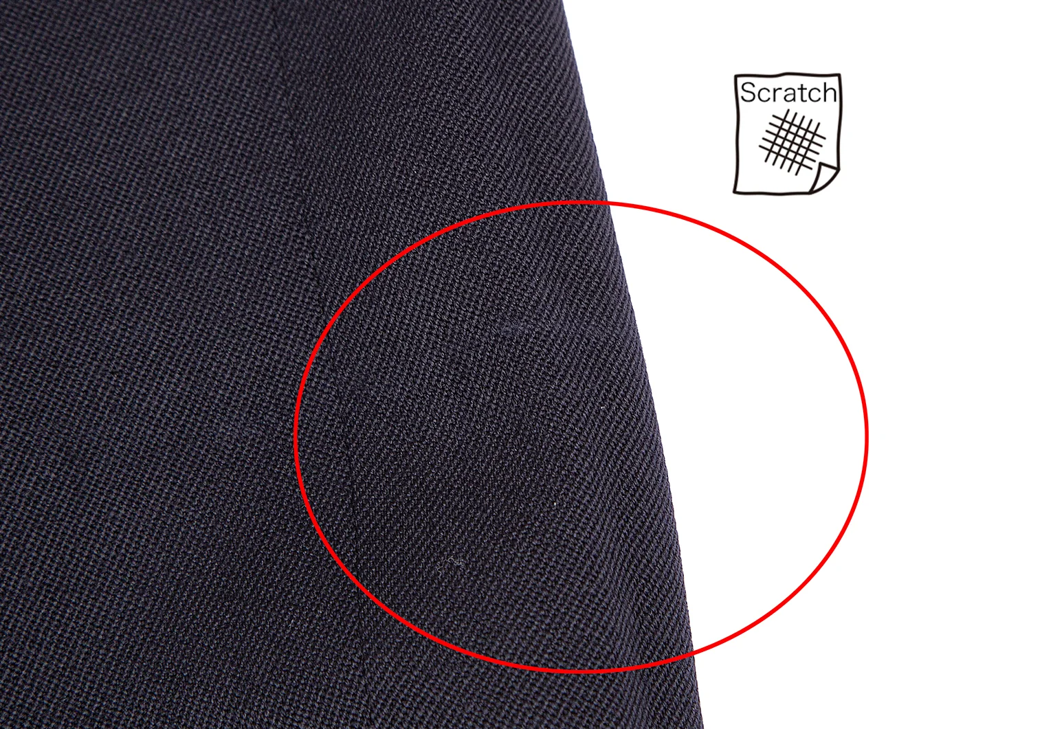 左足に多少アタリ、裾にスレがあります(写真参照)その他目立ったシミ、汚れ、ほつれ等なくいい状態です。クリーニング済み
