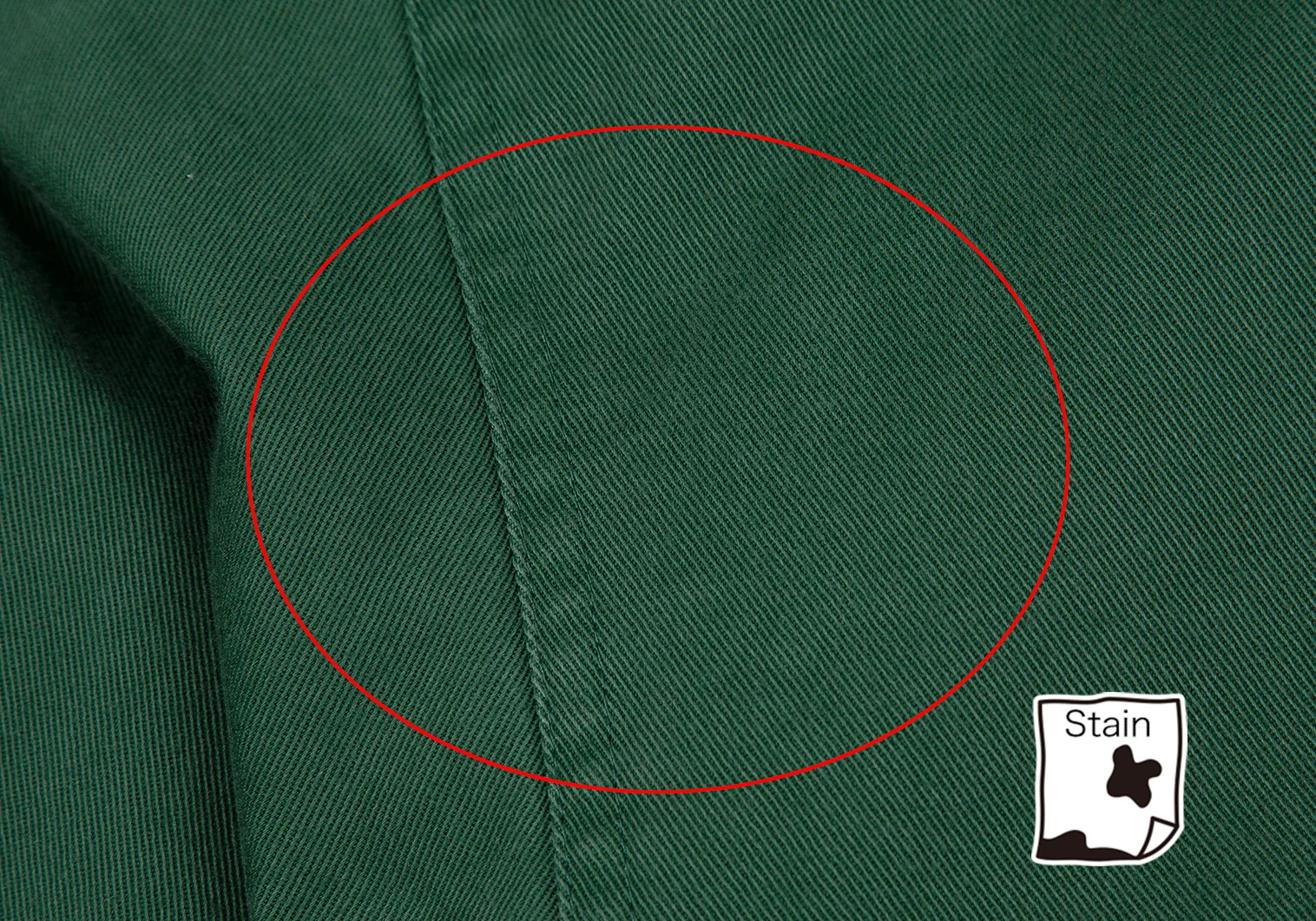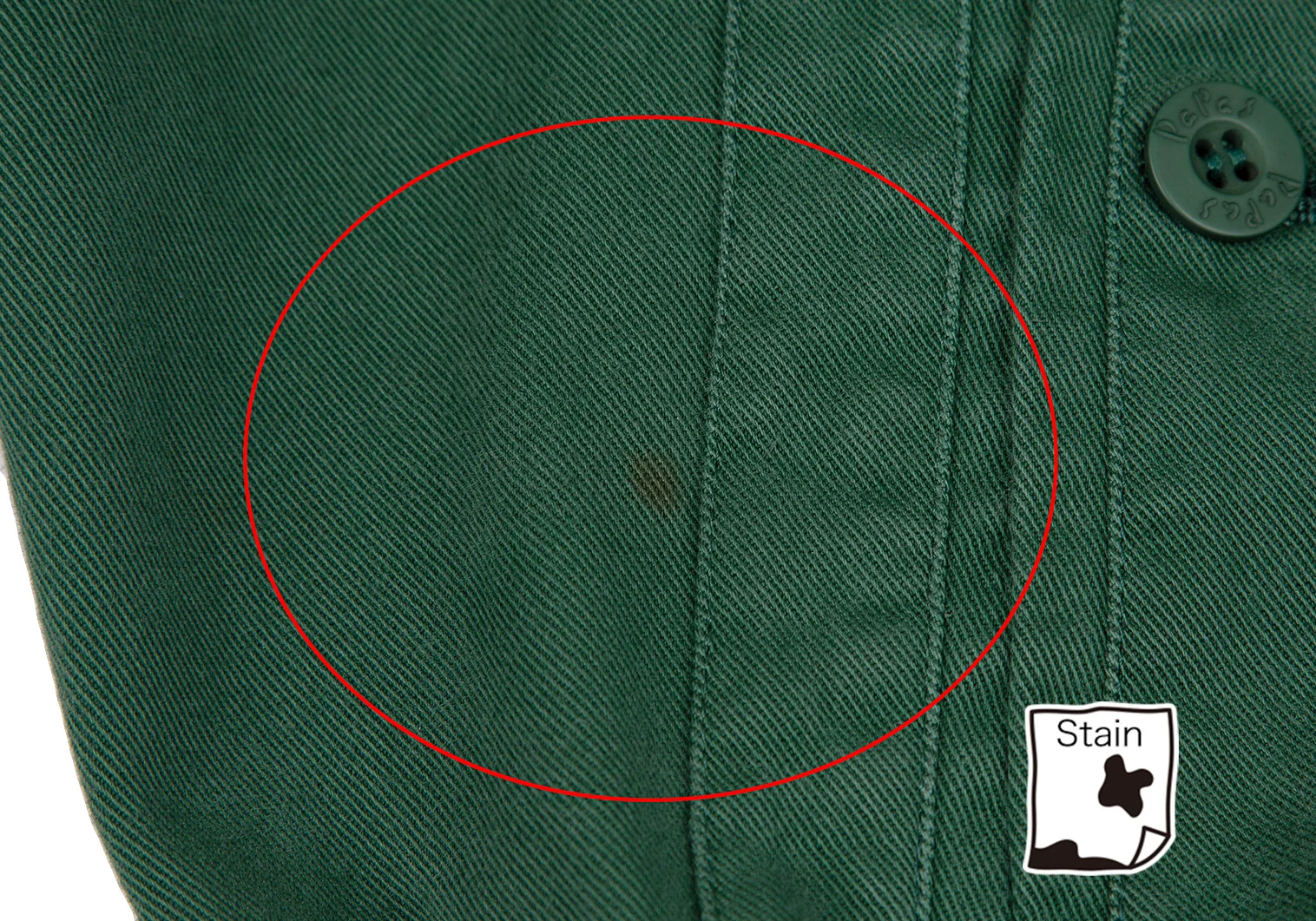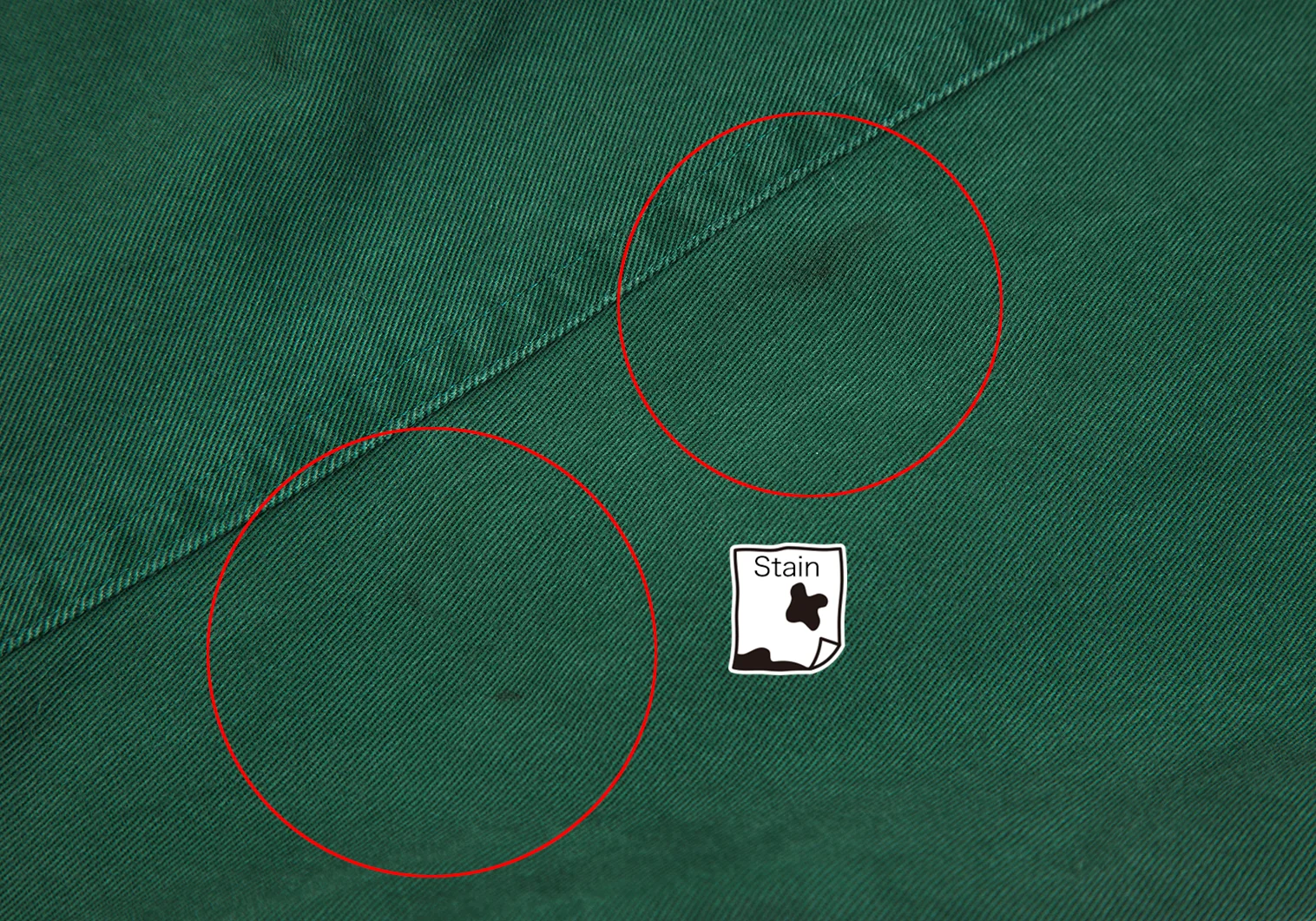 首裏・袖先など全体に色褪せがあります。前右脇・袖裏・前裾・袖にシミがあります(写真参照)。その他目立ったシミ、汚れ、ほつれ等なくいい状態です。クリーニング済み
