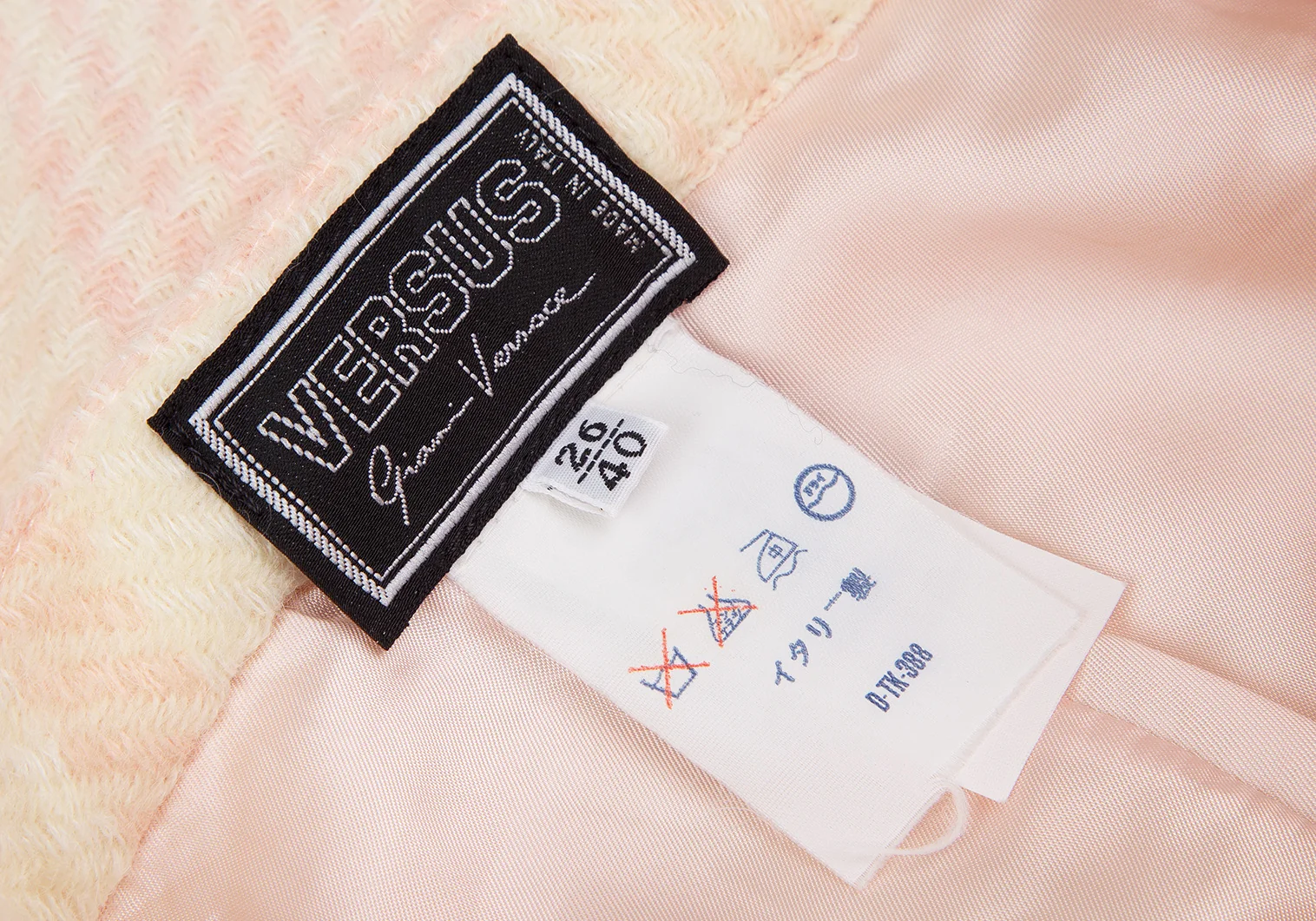 ヴェルサスVERSUS ボタンデザイン起毛チェックセットアップスーツ ピンク白26/40