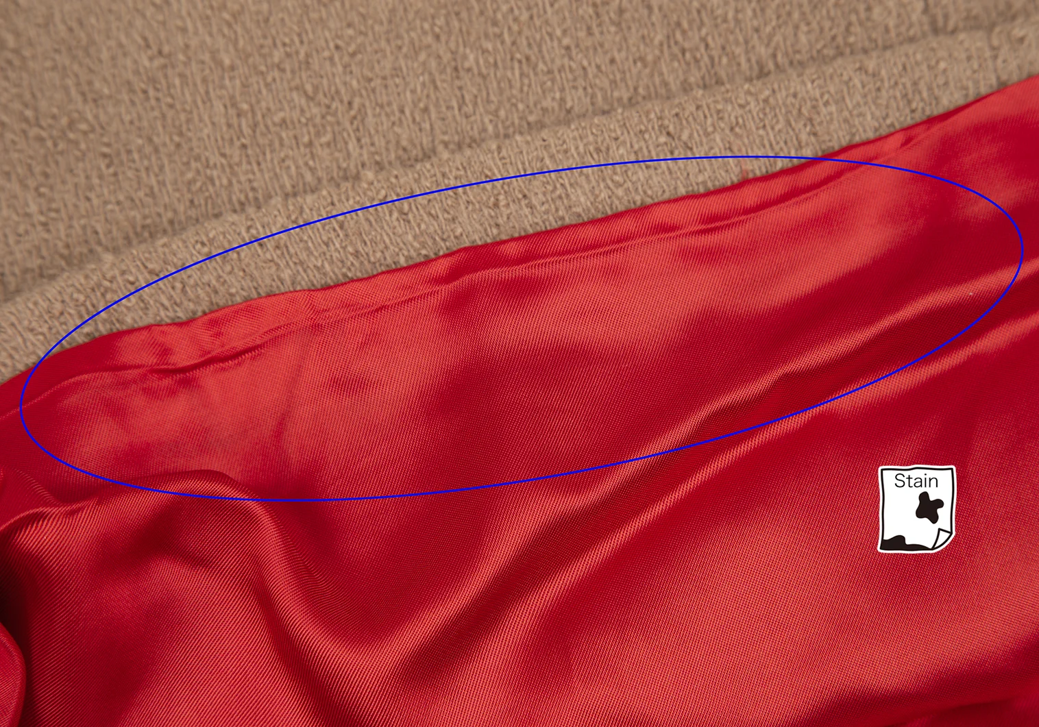裏地裾周りに汚れがあります(写真参照)。その他目立ったシミ、汚れ、ほつれ等なくいい状態です。クリーニング済み